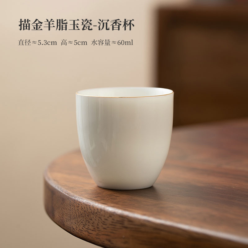 Dehua Suet 옥 화이트 도자기 찻잔 순수 화이트 골드 시음 컵 향기로운 컵 마스터 컵 개인 컵 스몰 사이즈 가정