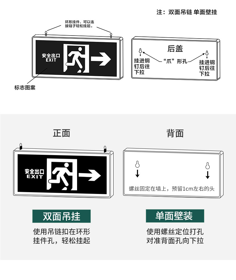 • 자체 발광-양면 안전 출구