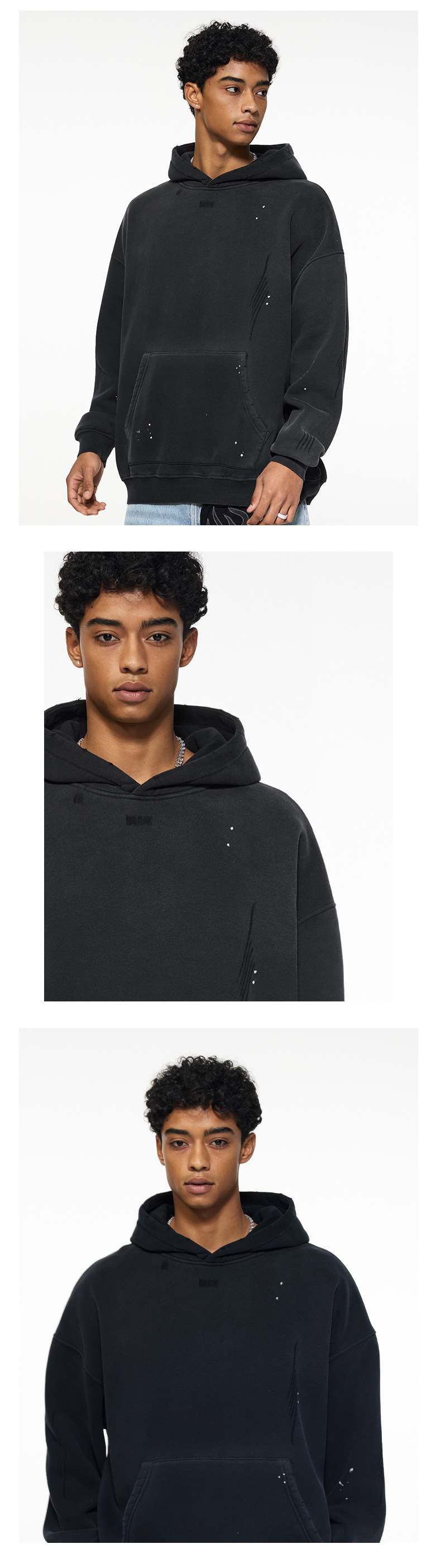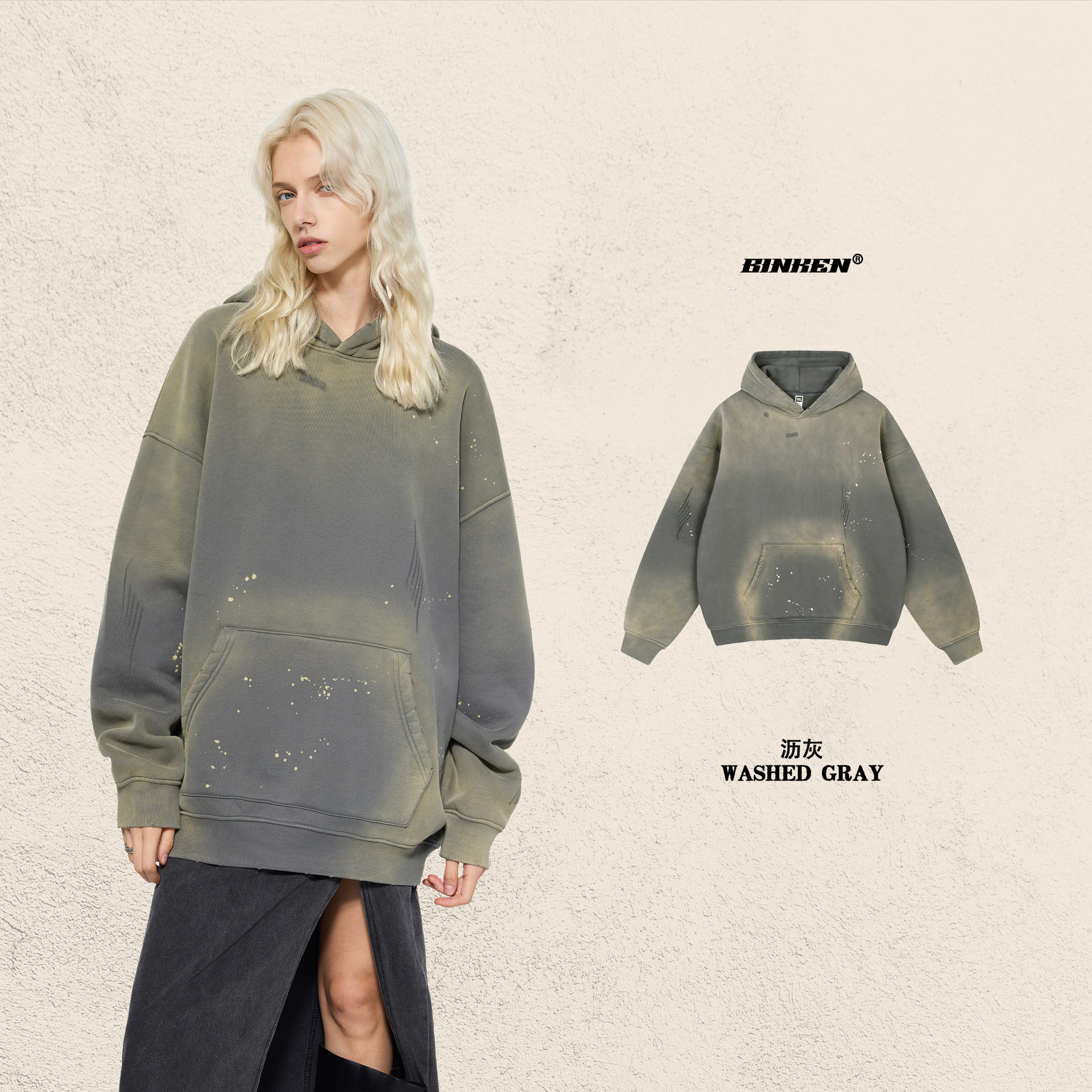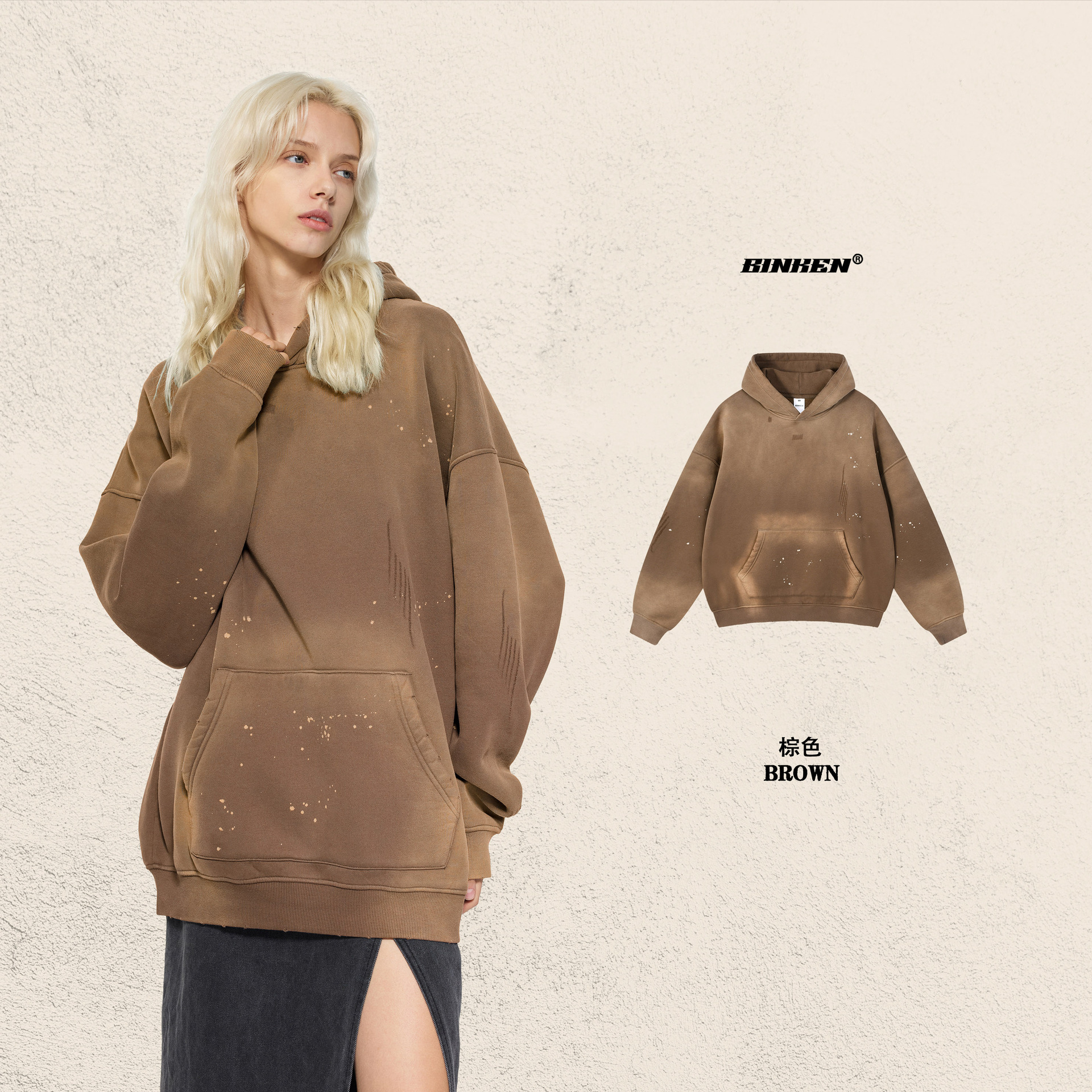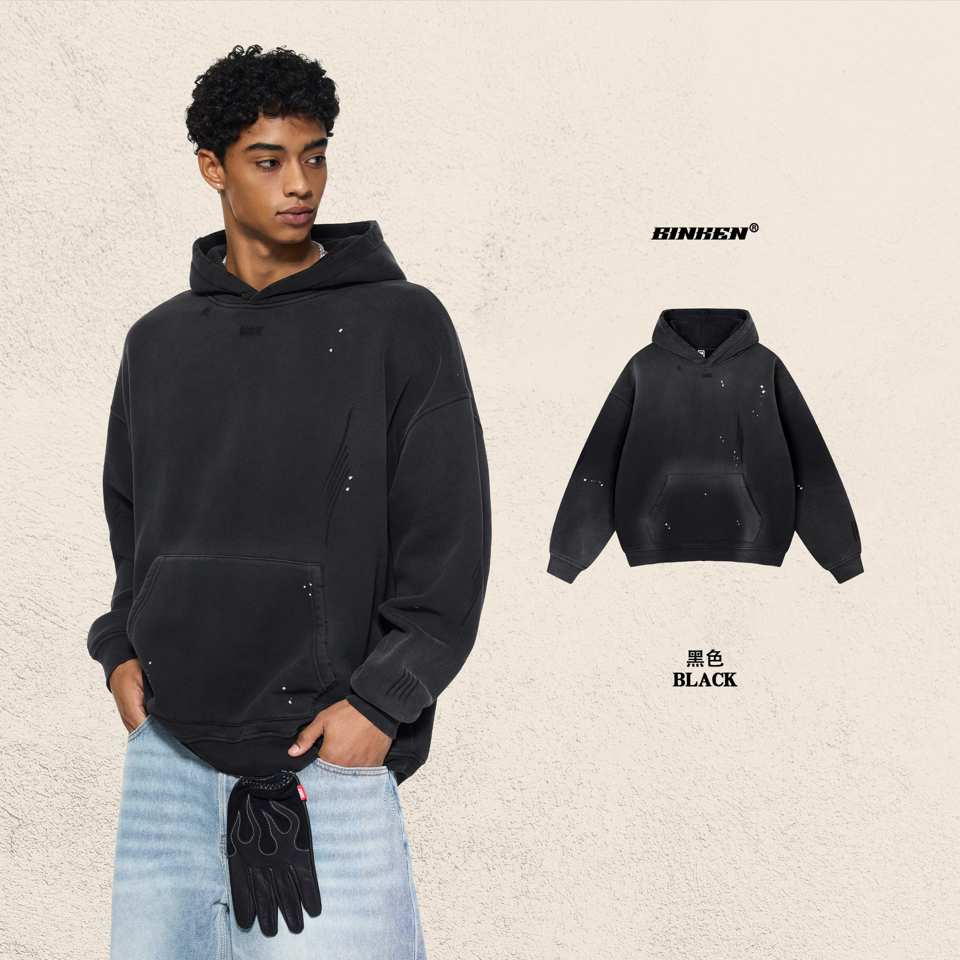 BK 남성복 가을 겨울 360g 플리스 후드티 남성 스프레이 잉크 아메리칸 스타일 후드티 트렌디 브랜드 워싱 후드스토어 가기