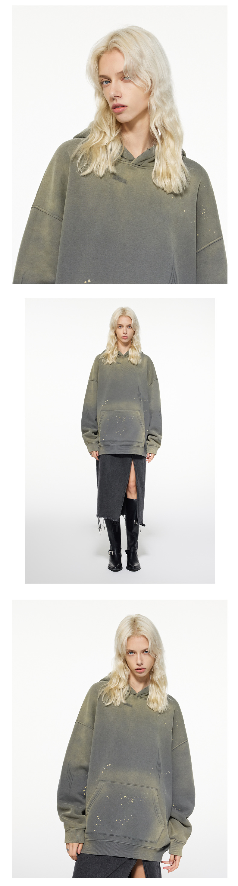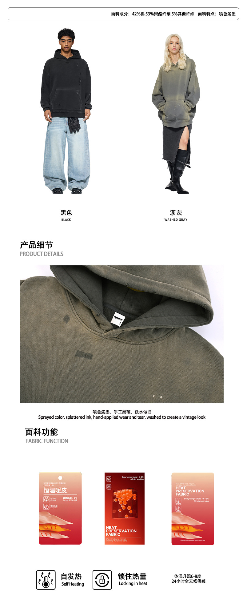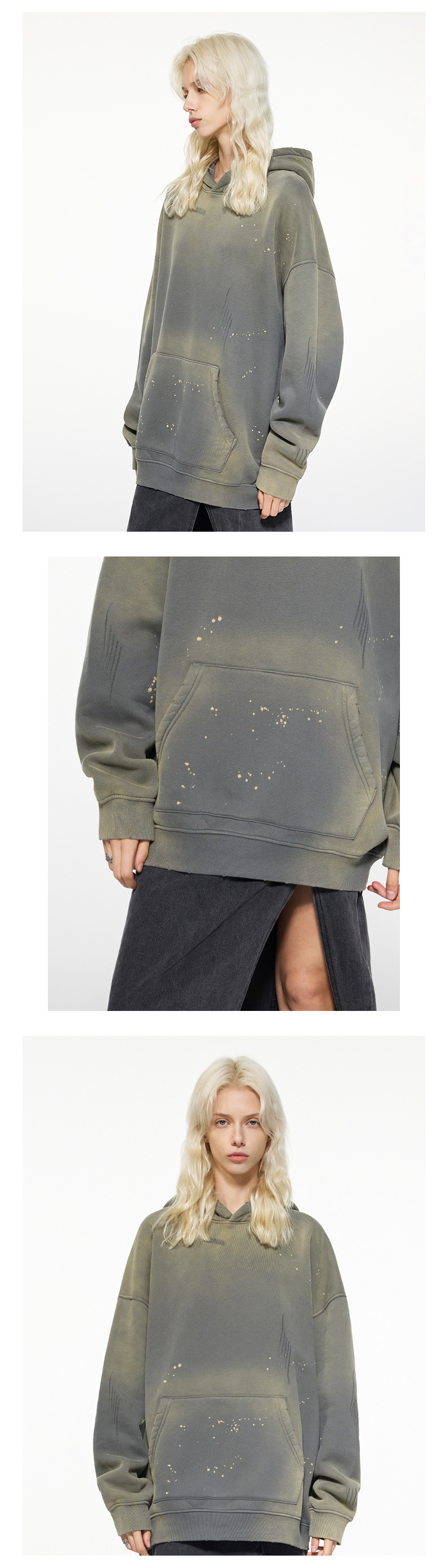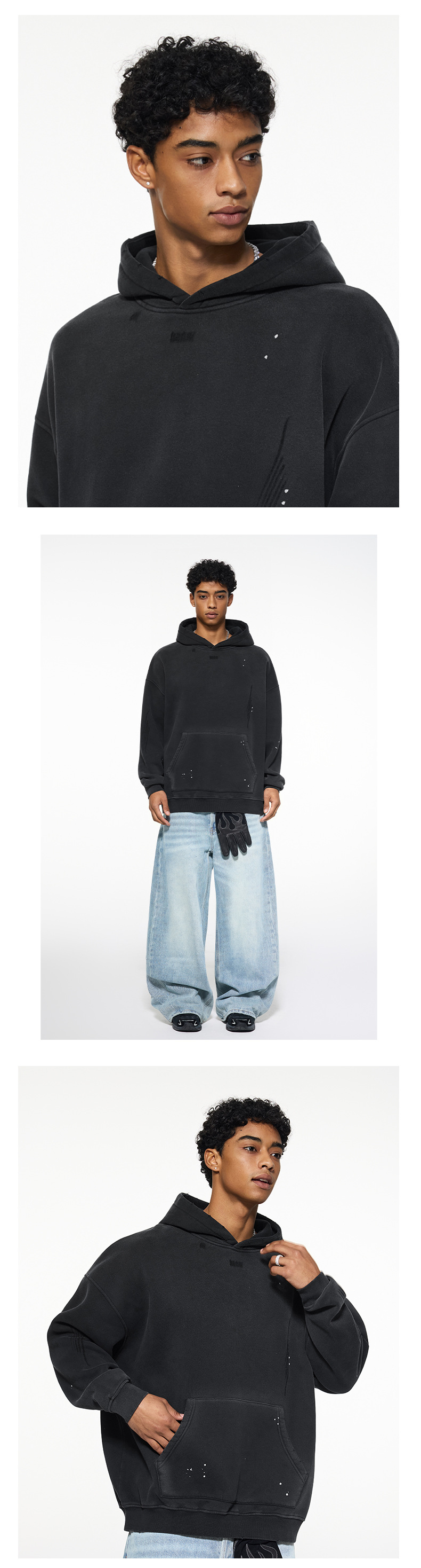 BK 남성복 가을 겨울 360g 플리스 후드티 남성 스프레이 잉크 아메리칸 스타일 후드티 트렌디 브랜드 워싱 후드스토어 가기