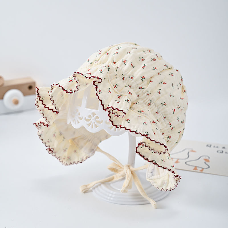 아기 모자 봄과 가을 얇은 한국어 세련된 면 공주 모자 가을 아기 소녀 신생아 유아 궁전 모자