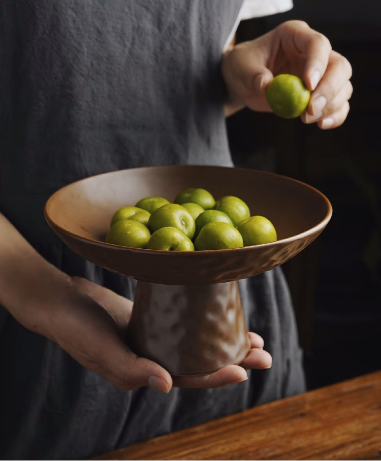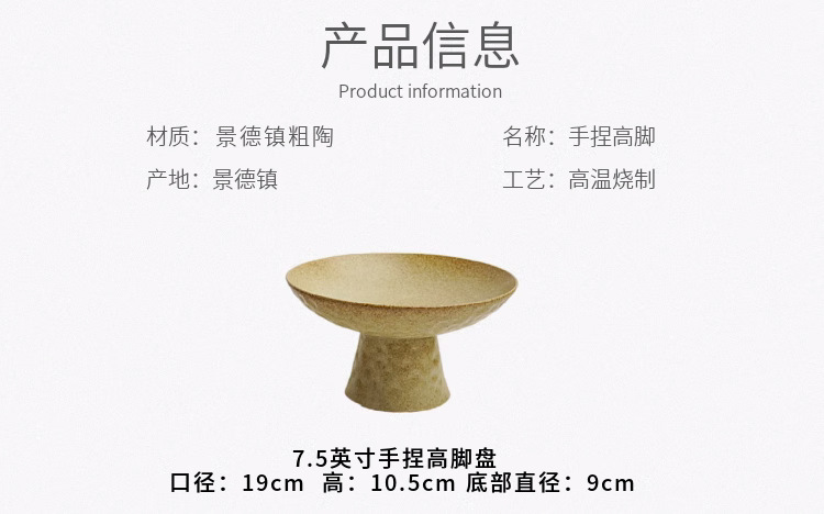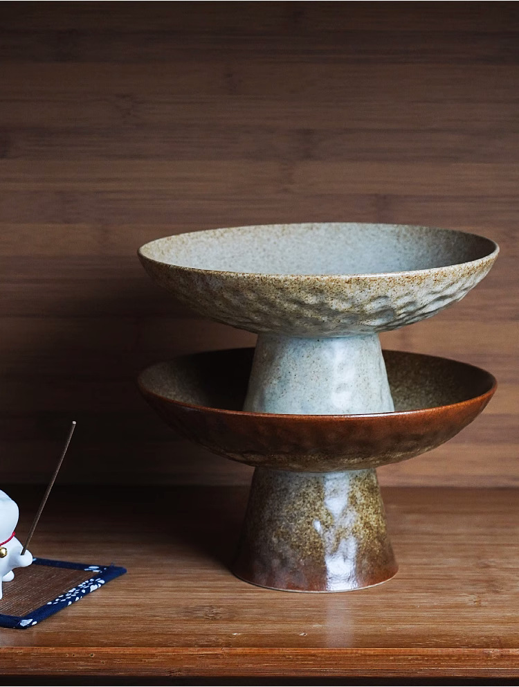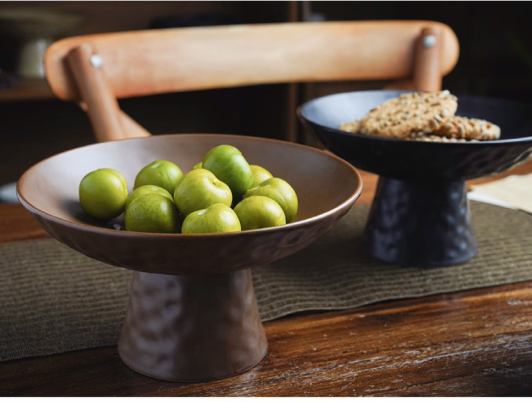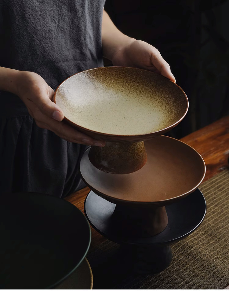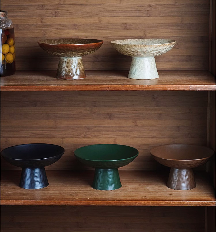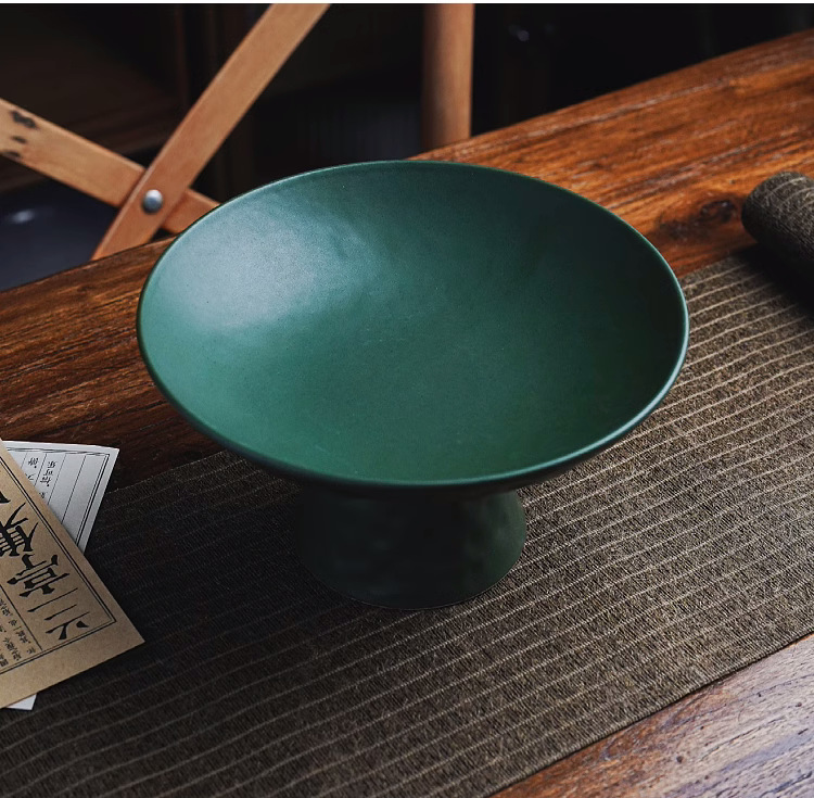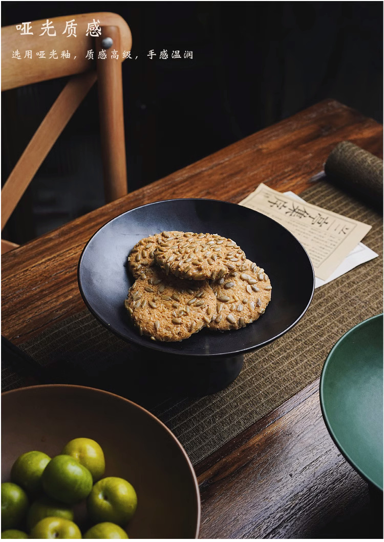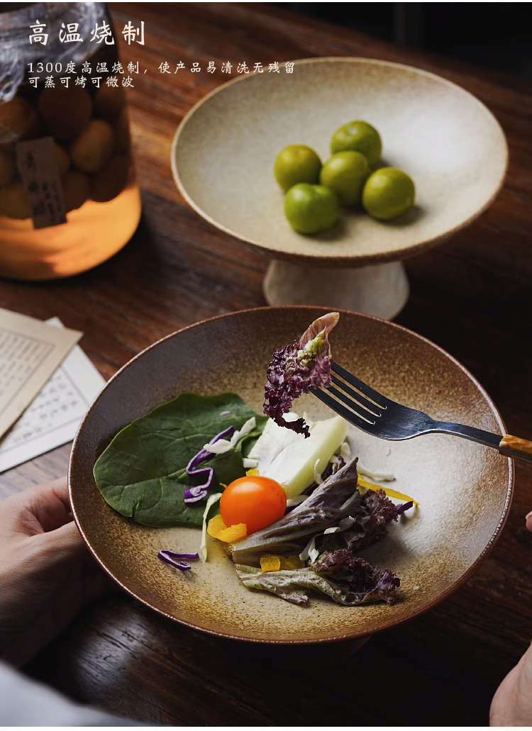 빈티지 일본식 세라믹 식기 손 반죽 창조적 인 단색 키 큰 접시 일본식 호텔 깊은 접시 홈스테이 과자 접시