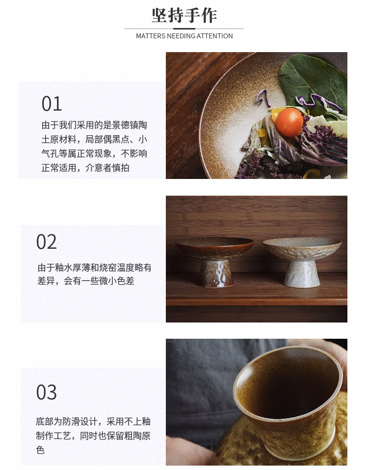 빈티지 일본식 세라믹 식기 손 반죽 창조적 인 단색 키 큰 접시 일본식 호텔 깊은 접시 홈스테이 과자 접시스토어 가기