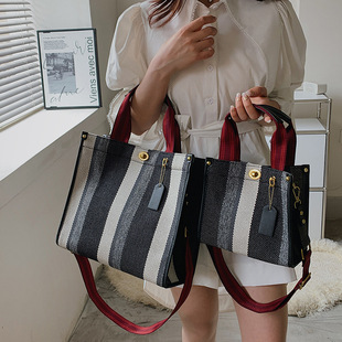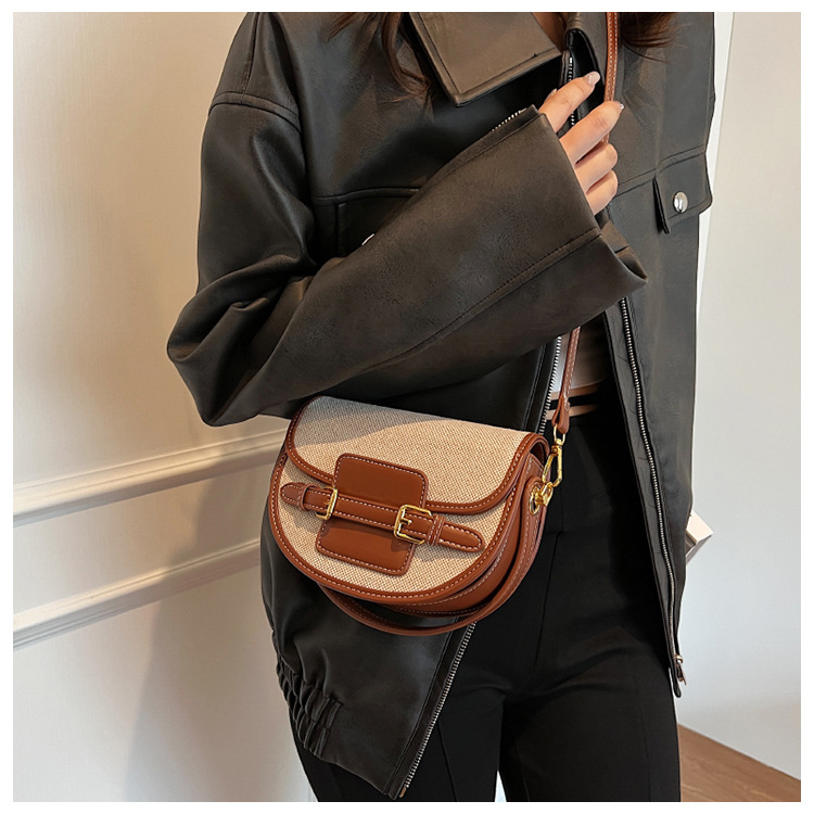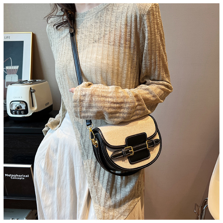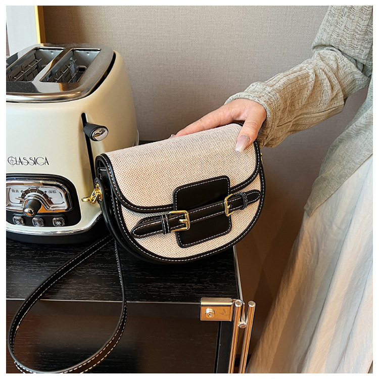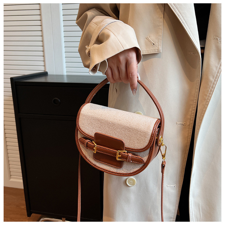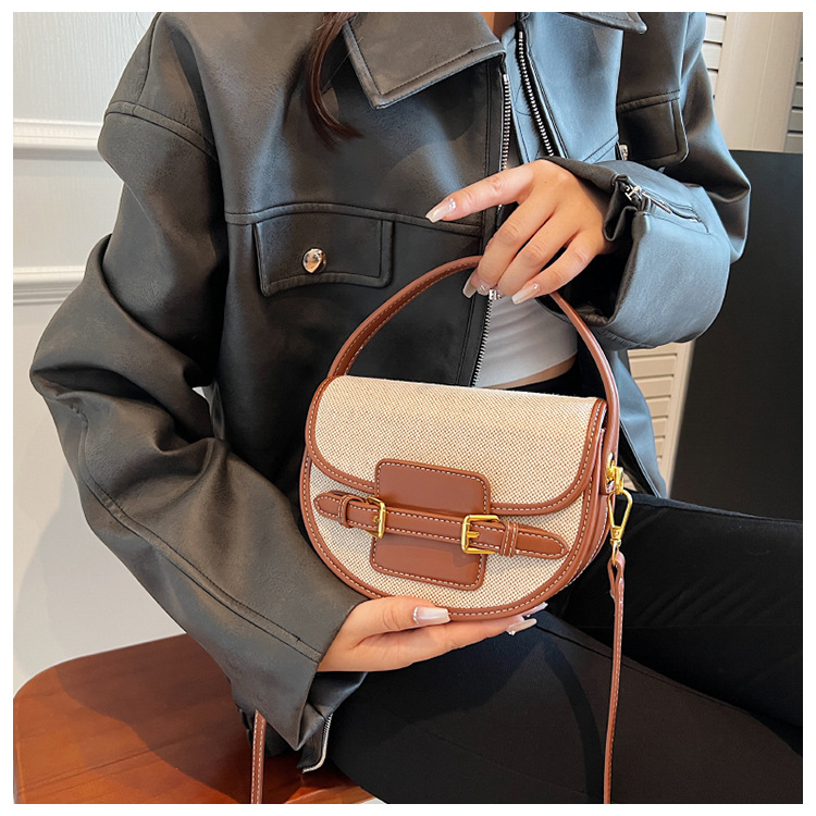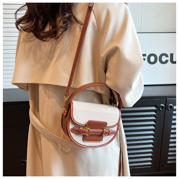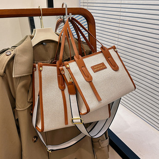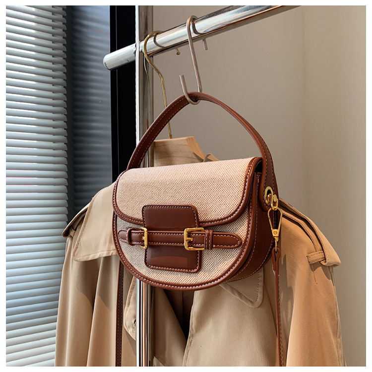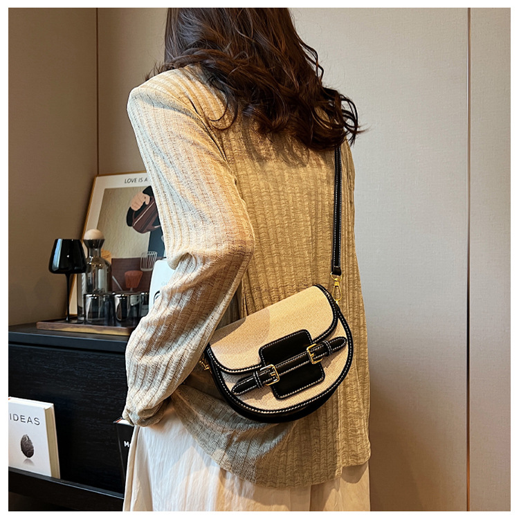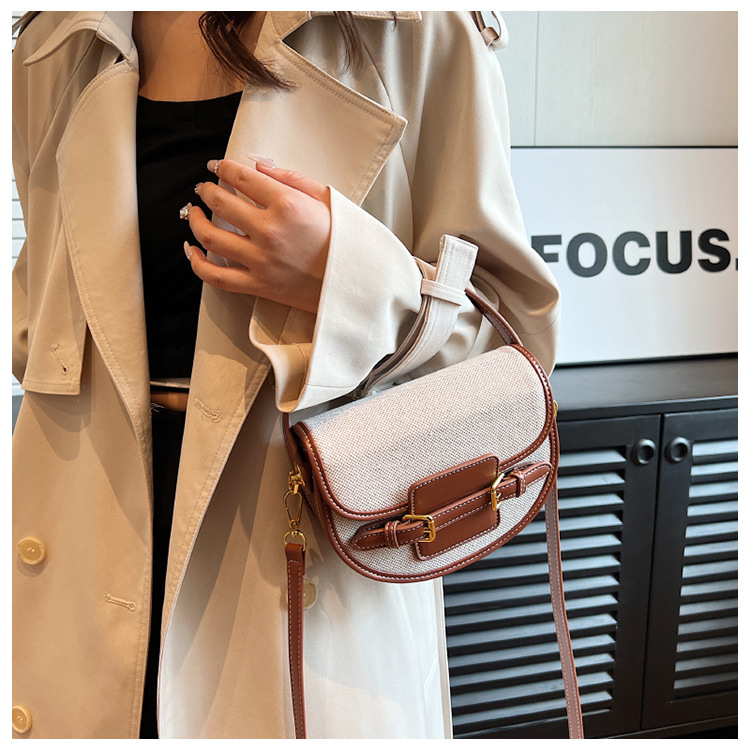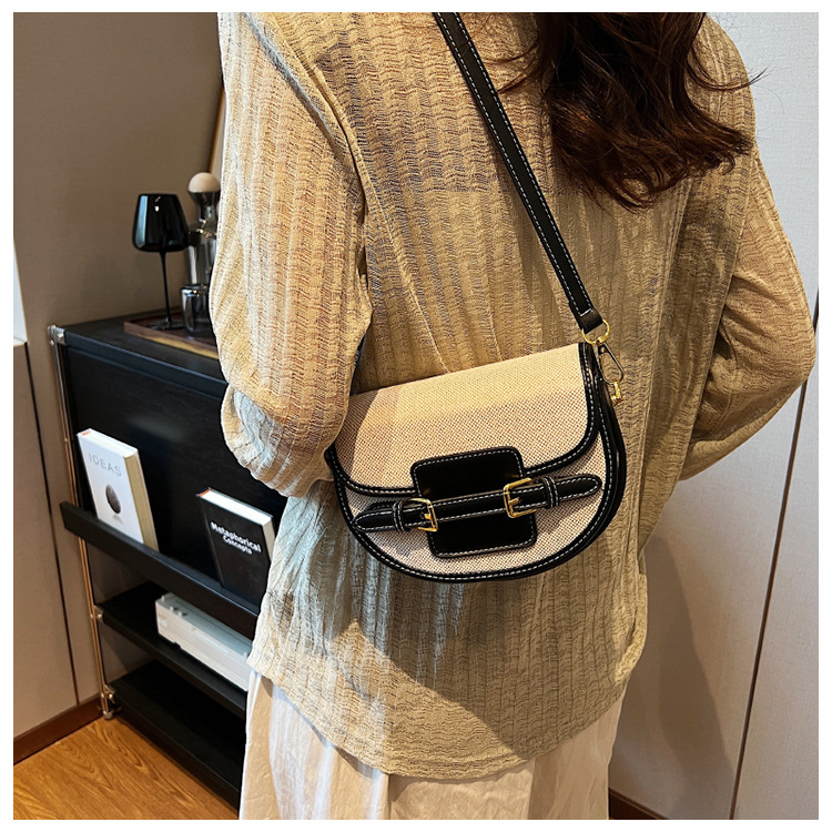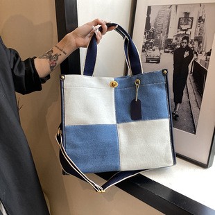 여성용 가방 2026 크로스보더 트렌디 캔버스 배색 핸드백 안장백 니치 하이엔드 느낌 싱글 숄더 크로스백 다용도스토어 가기