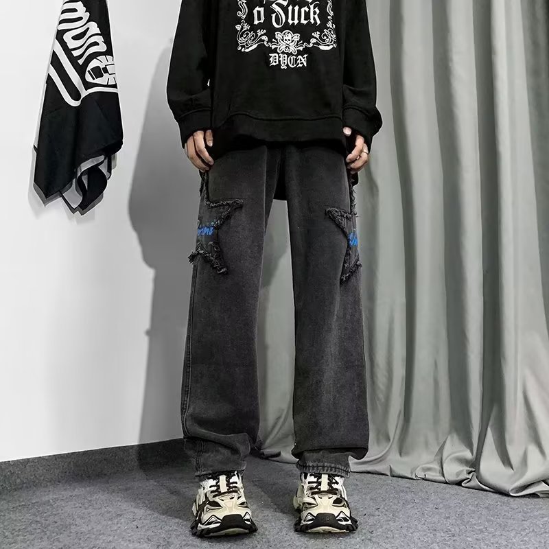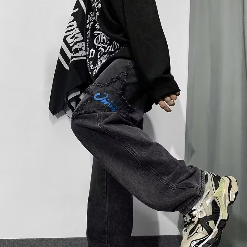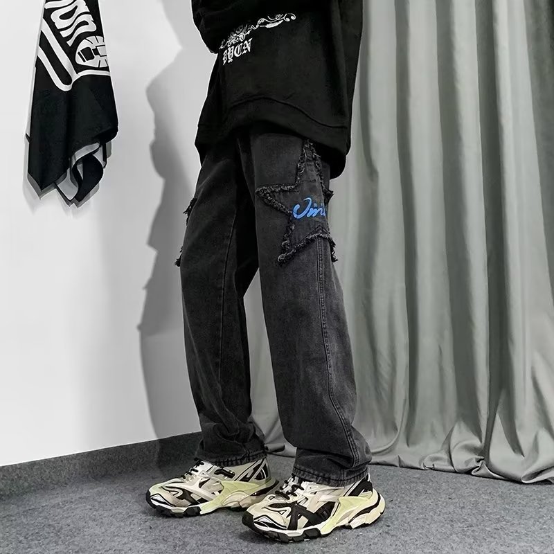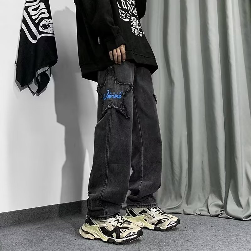 봄과 가을 미국 복고풍 청바지 남성용 트렌디 브랜드 하이 스트리트 스트레이트 스타 스트리트 스타일 모든 매치 캐주얼 롱 팬츠스토어 가기