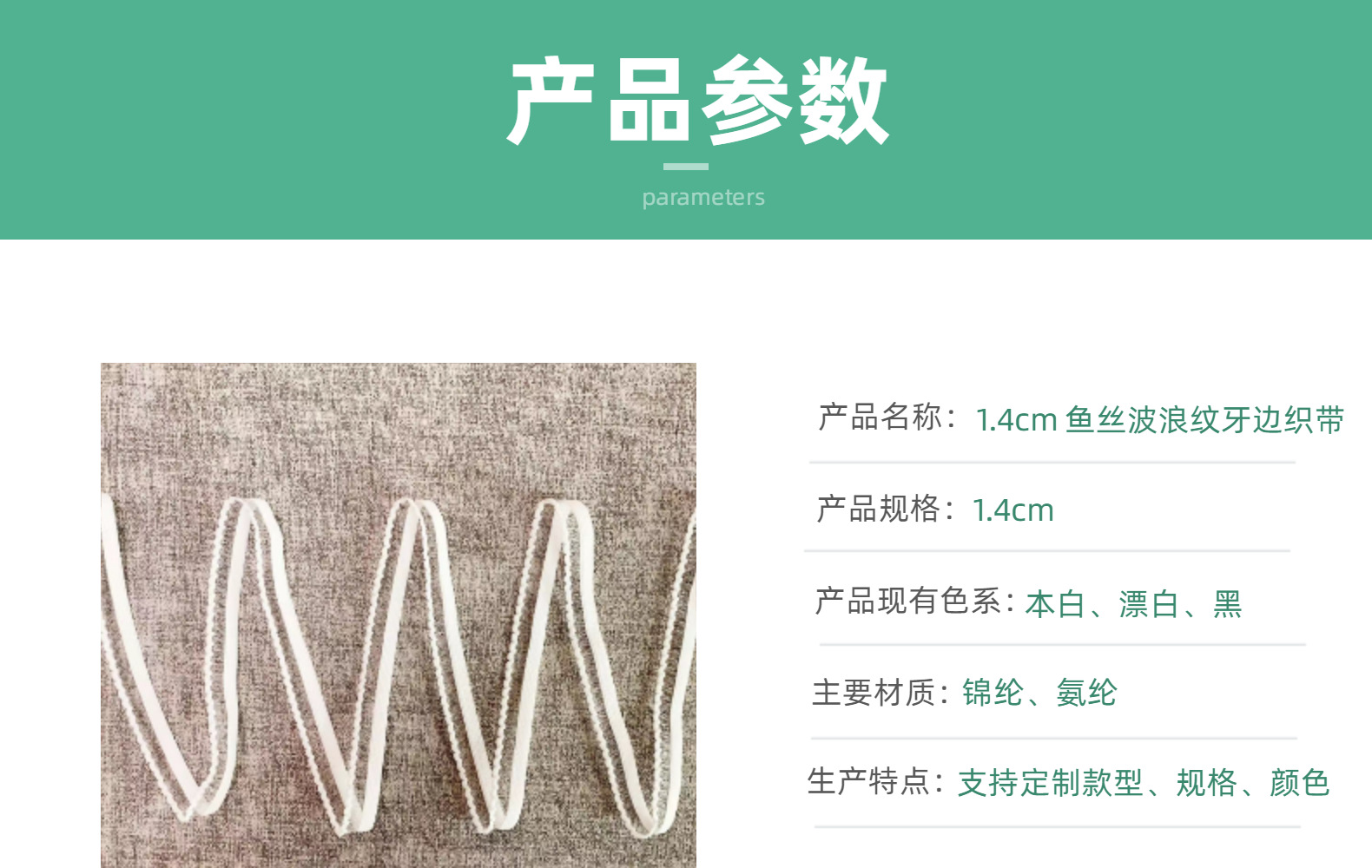 1.4cm 물고기 실크 물결 초승달 탄성 웨빙 탄성 벨트 치아 가장자리 커프 네크 라인 장난감 보석 레이스
