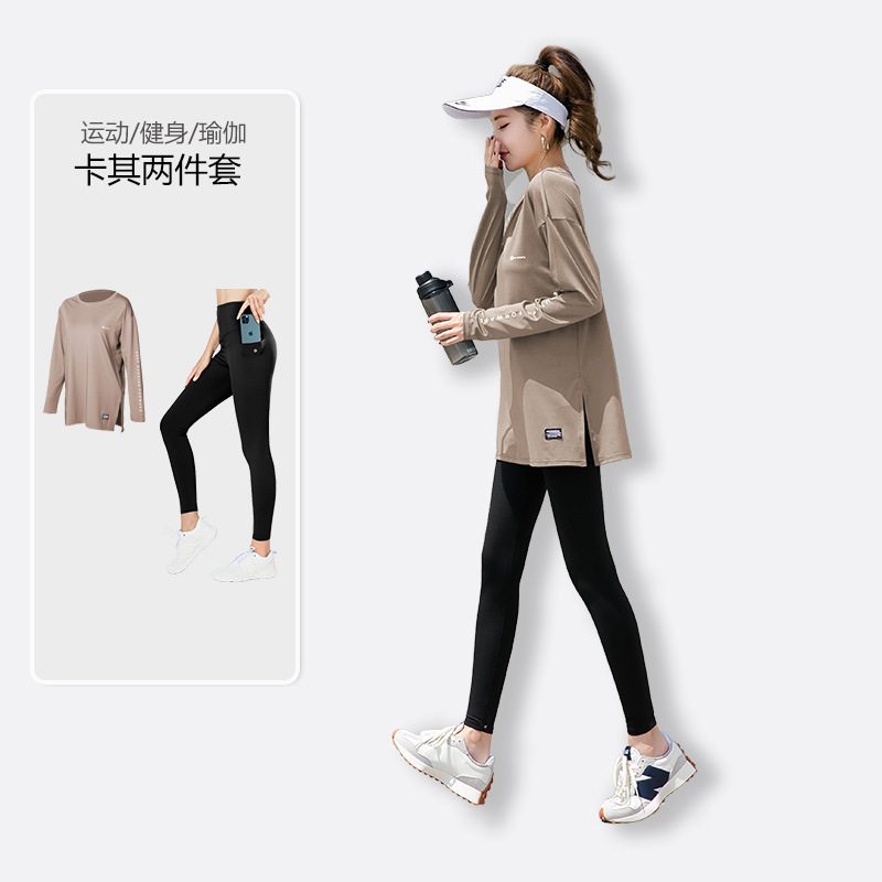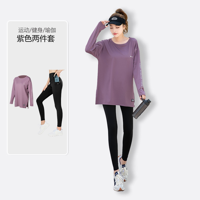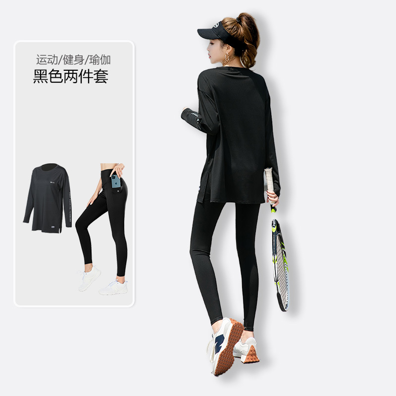 요가 피트니스 의류 세트 긴팔 스포츠 런닝 짐웨어 플러스 사이즈 뚱뚱한 여성용 100kg 배를 가려주고 날씬해 보이는 효과스토어 가기