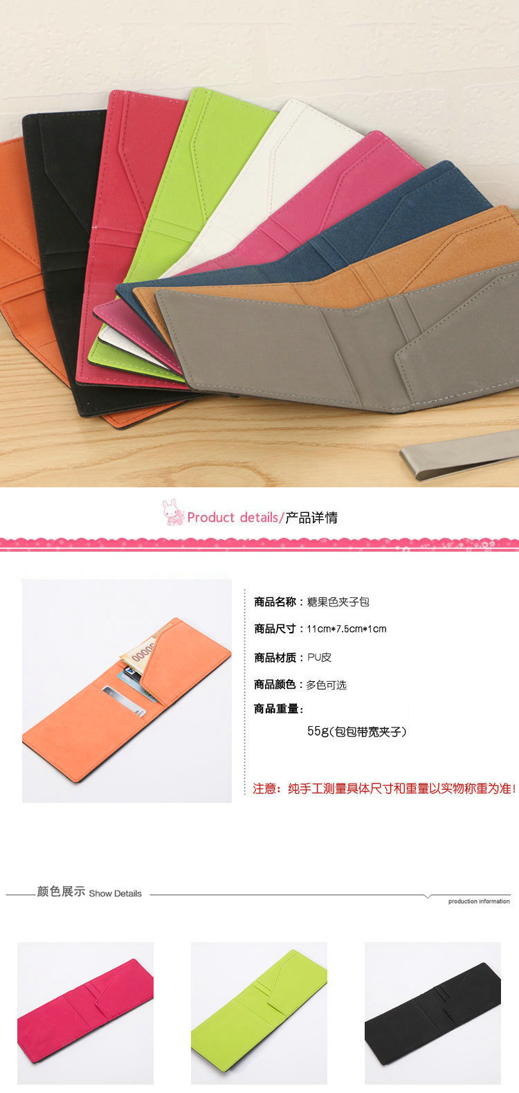 해외 무역 새로운 PU 지갑의 국경 간 한국어 버전 창조적 인 성격 다채로운 클립 짧은 오픈 큰 돈 클립 지갑 배치