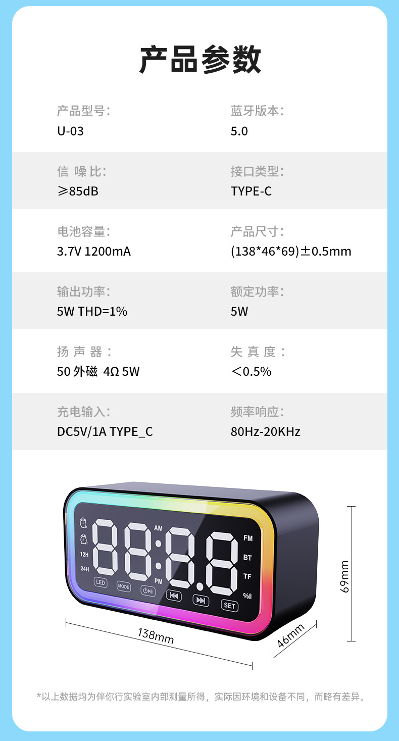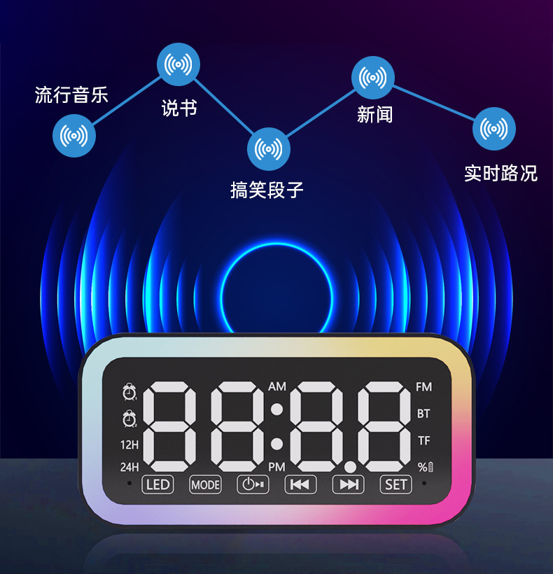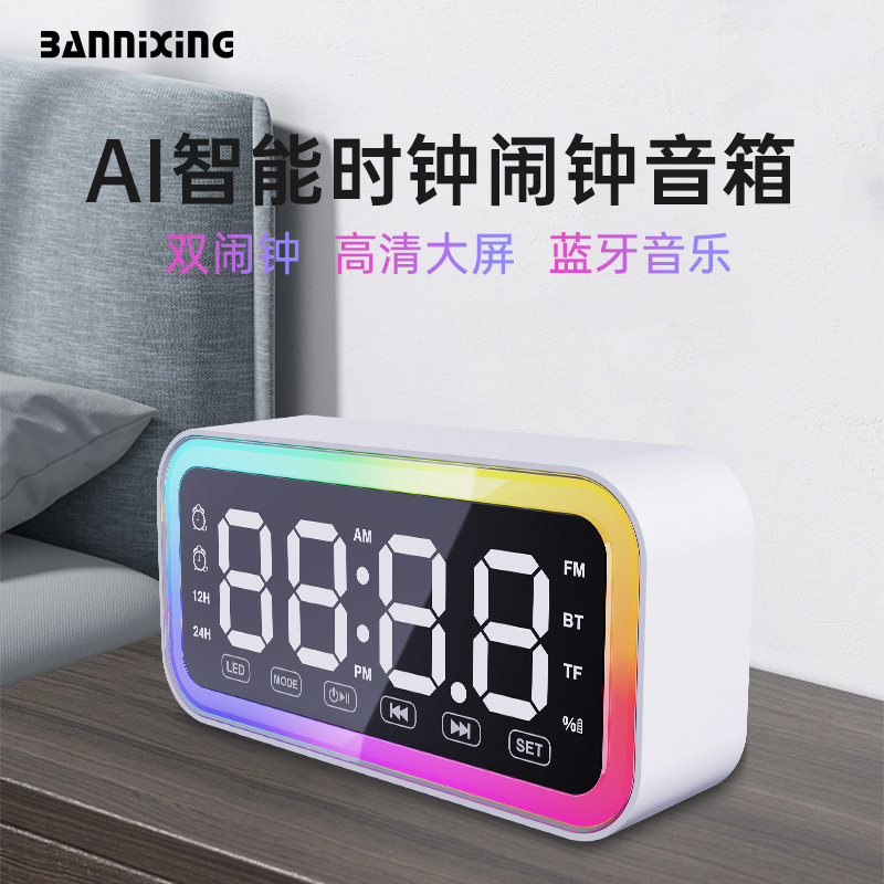 아마존 베스트셀러 블루투스 스피커 무선 스피커 데스크탑 시계 컴퓨터 소형 오디오 스마트 음성 야간 조명