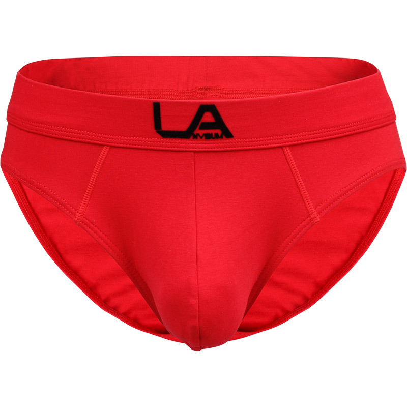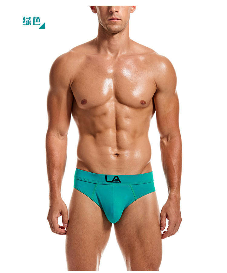 LANVIBUM 새로운 남성 속옷 브리프 면 중간 허리 드롭 접착제 플러스 사이즈 단색 스포츠 브리프