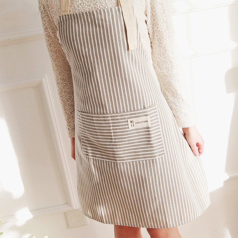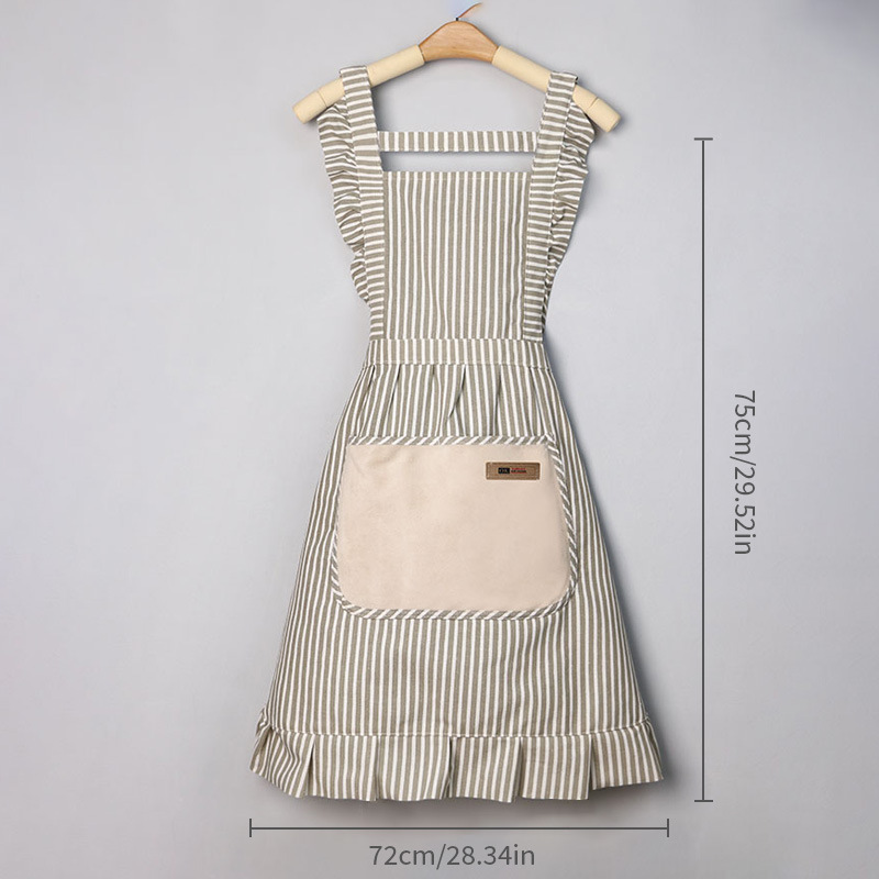 • 회색 줄무늬 면 린넨 공주 앞치마