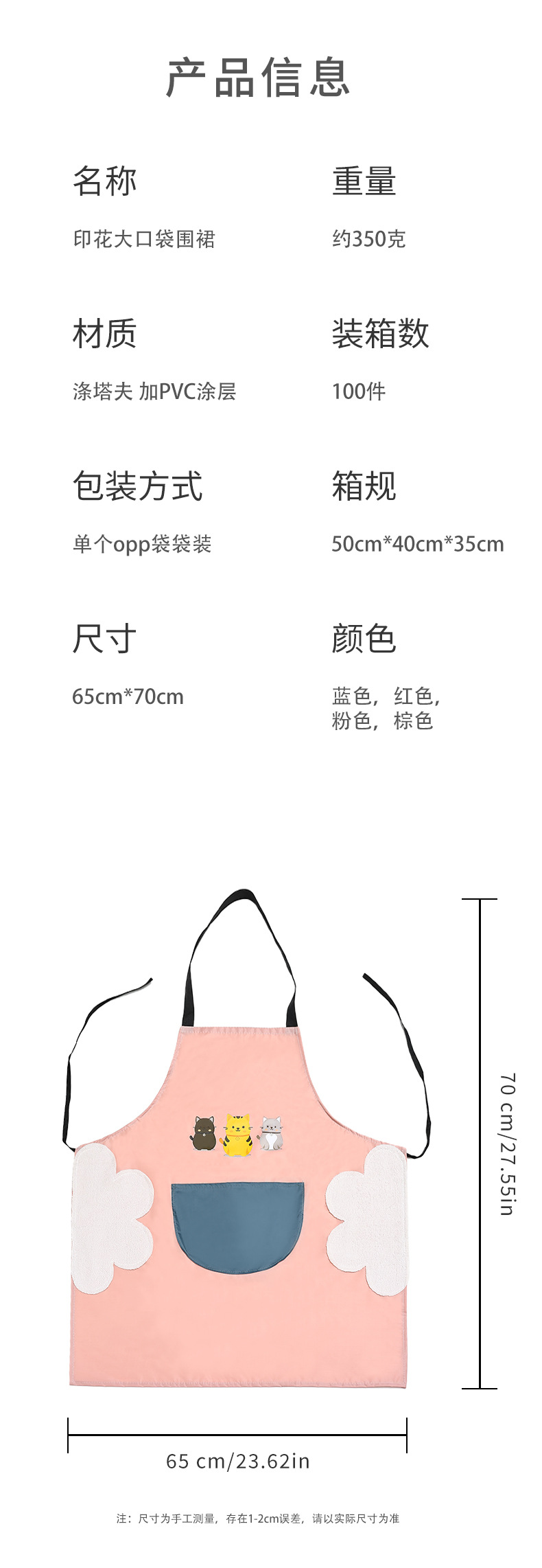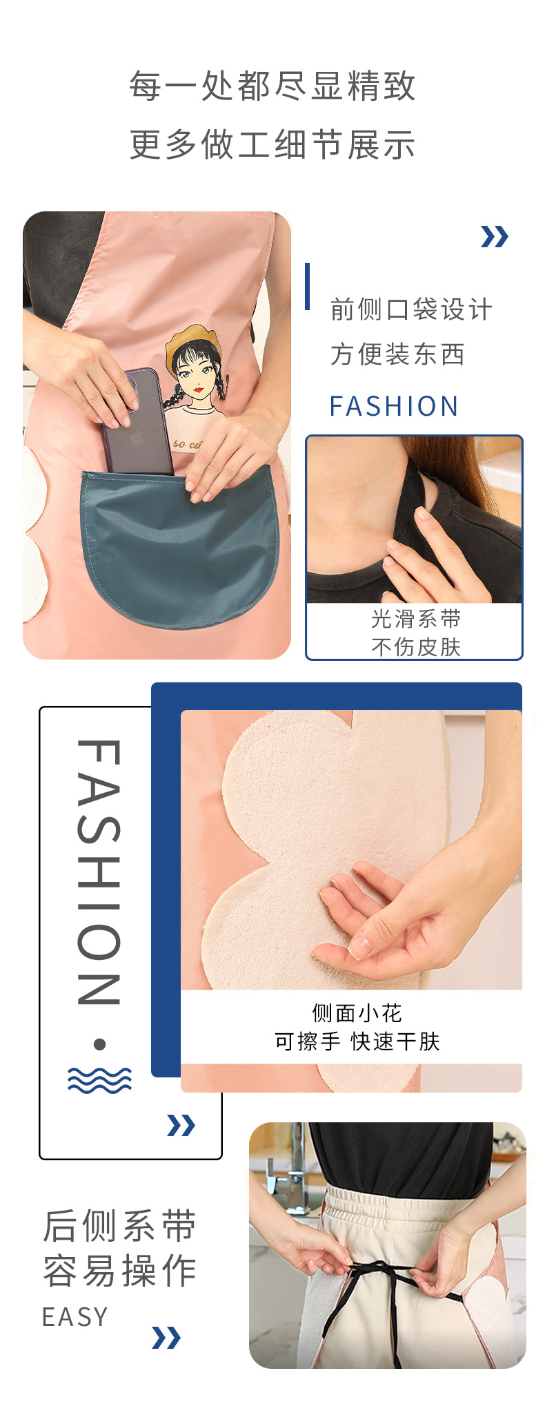 방수 및 손으로 닦을 수 있는 앞치마, 기름 방지, 여자 밀크티 가게, 주방 바, 가정 요리, 맞춤형 도매 가구
