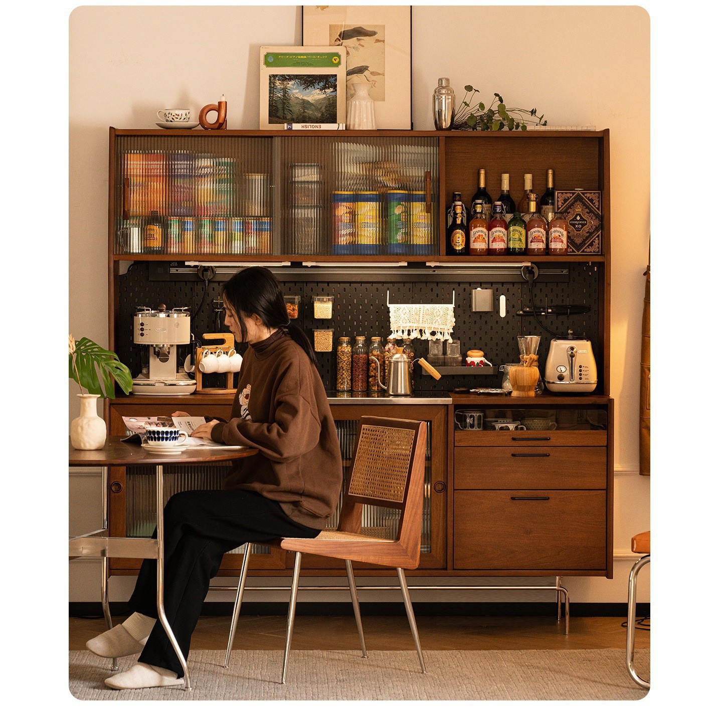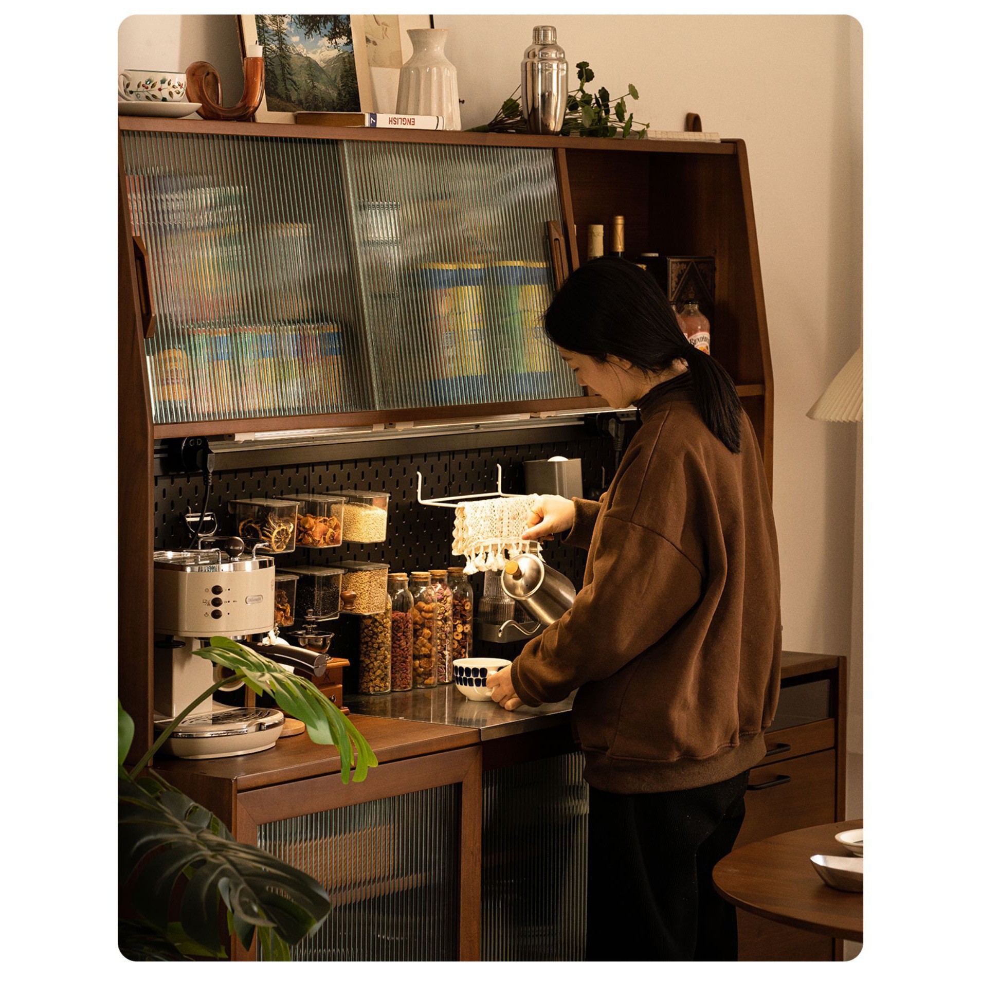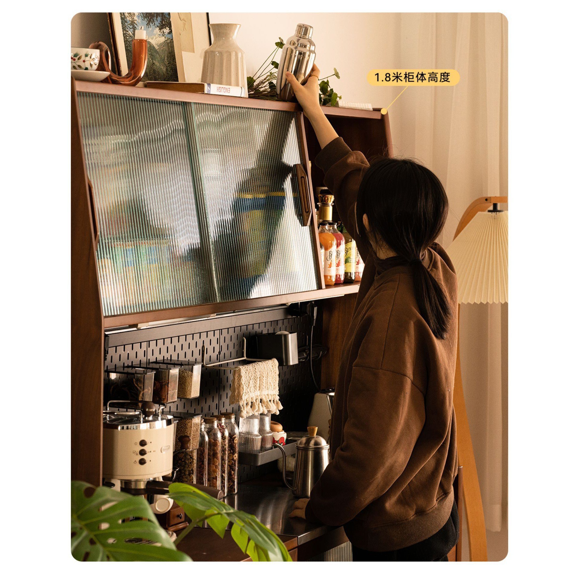 중세 차 캐비닛 통합 벽 높은 캐비닛 단단한 나무 복고풍 찬장 주방 캐비닛 북유럽 홈 와인 캐비닛스토어 가기