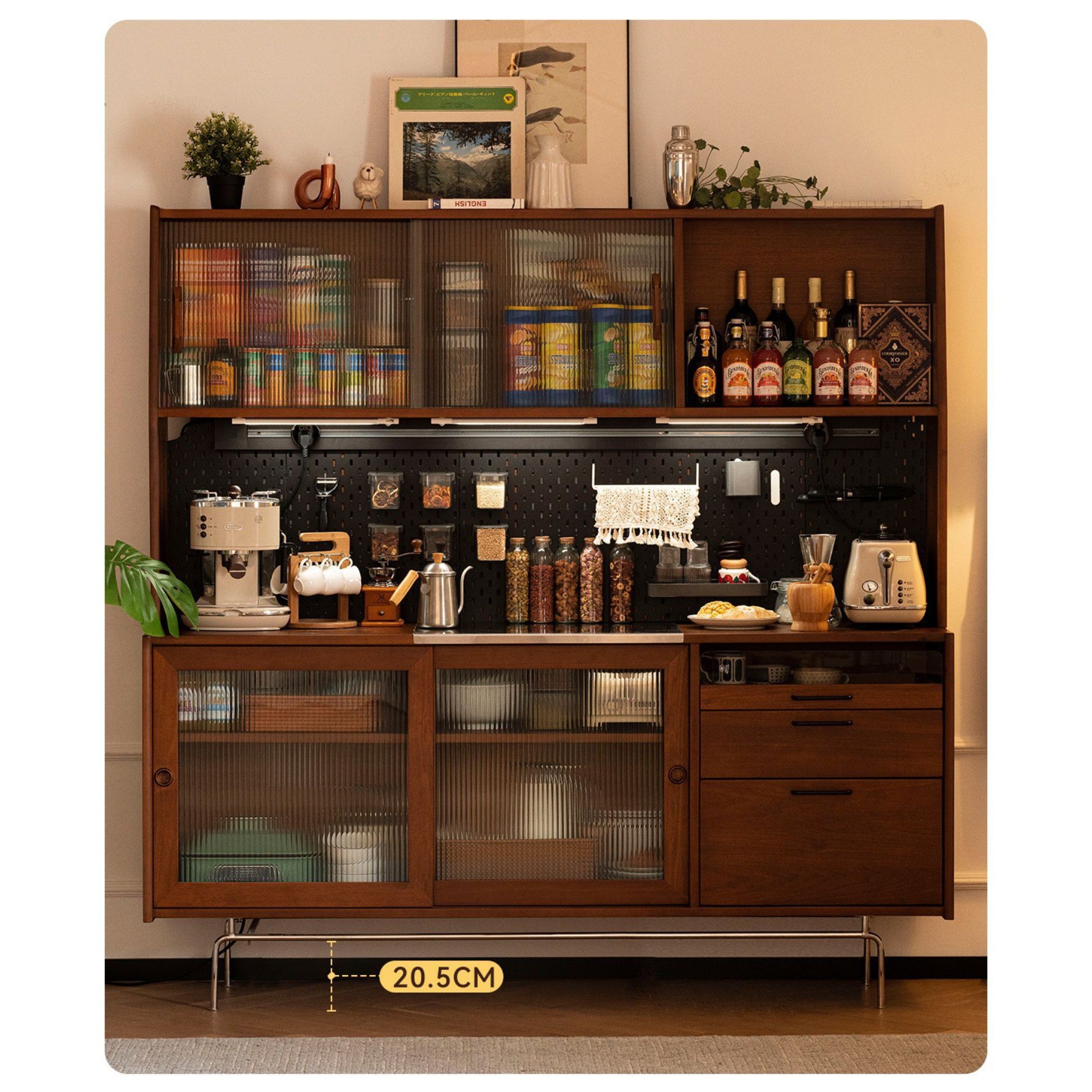 중세 차 캐비닛 통합 벽 높은 캐비닛 단단한 나무 복고풍 찬장 주방 캐비닛 북유럽 홈 와인 캐비닛