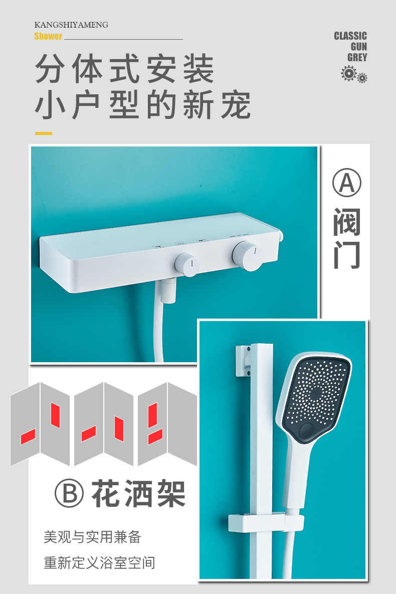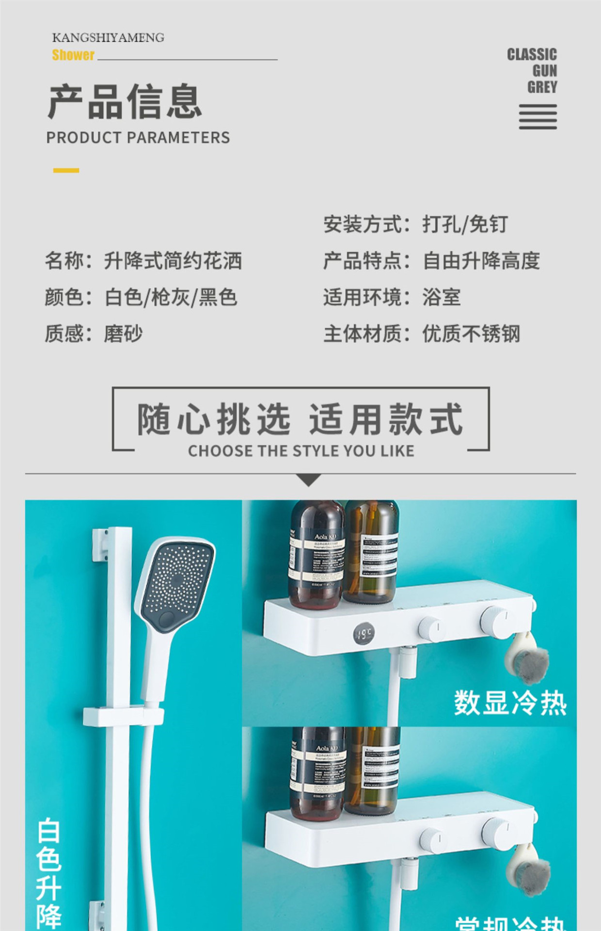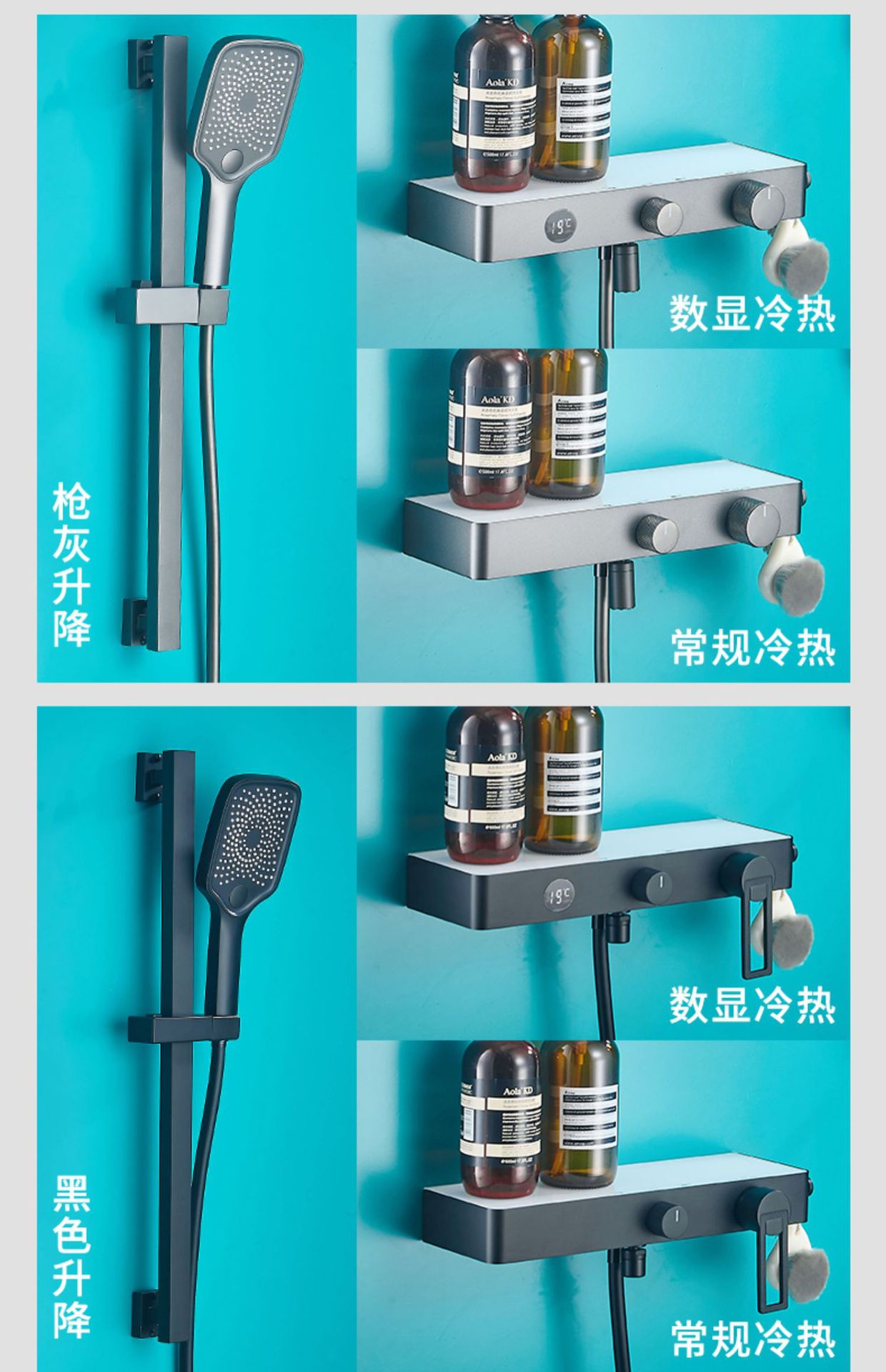 샤워 샤워 세트 가정용 욕실 목욕 수도꼭지 목욕 간단한 분할 디지털 디스플레이 흰색과 검은 색 회색 비가 샤워 헤드스토어 가기