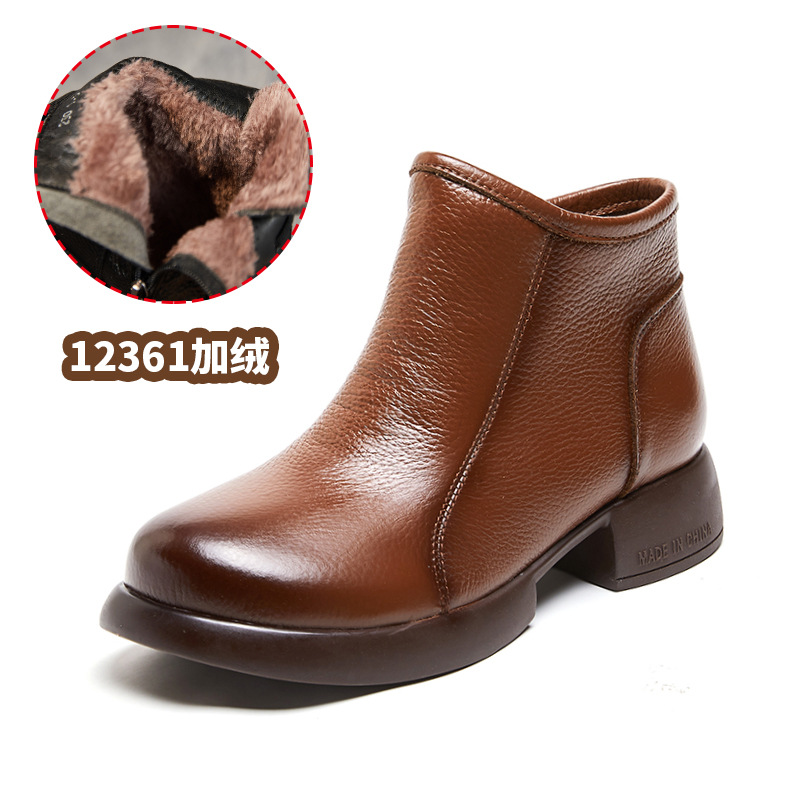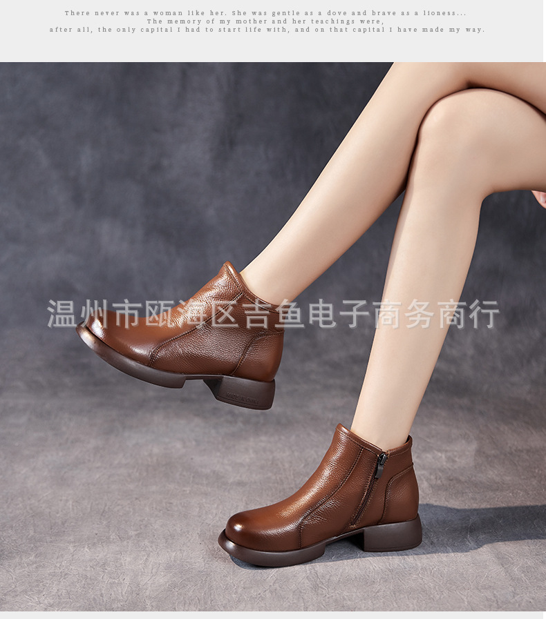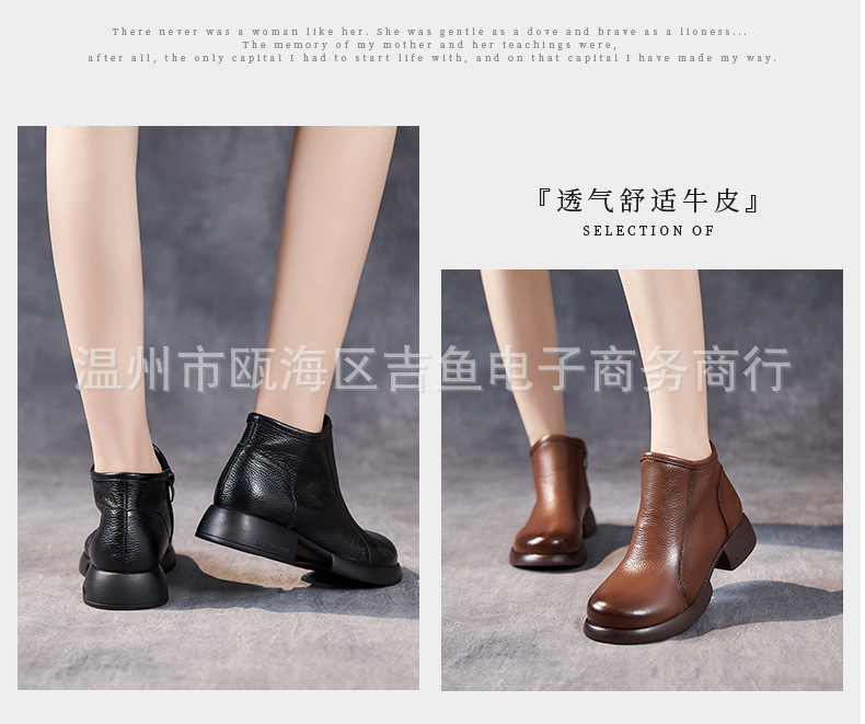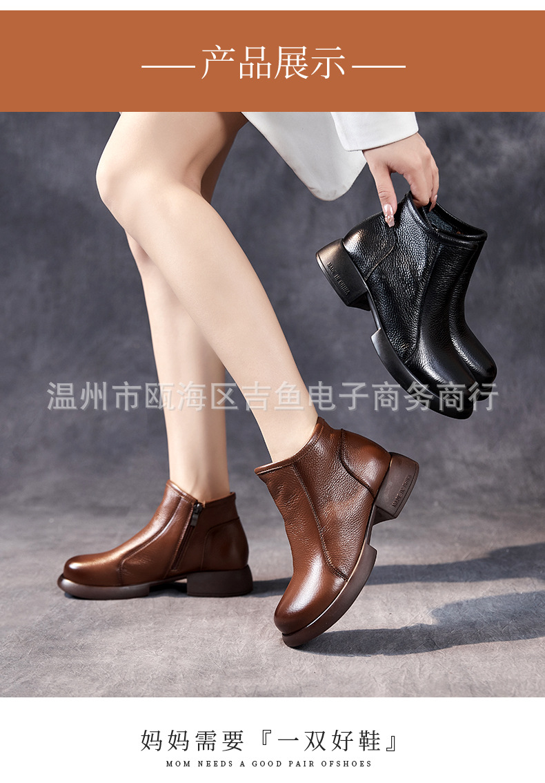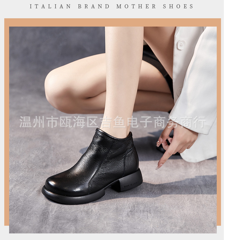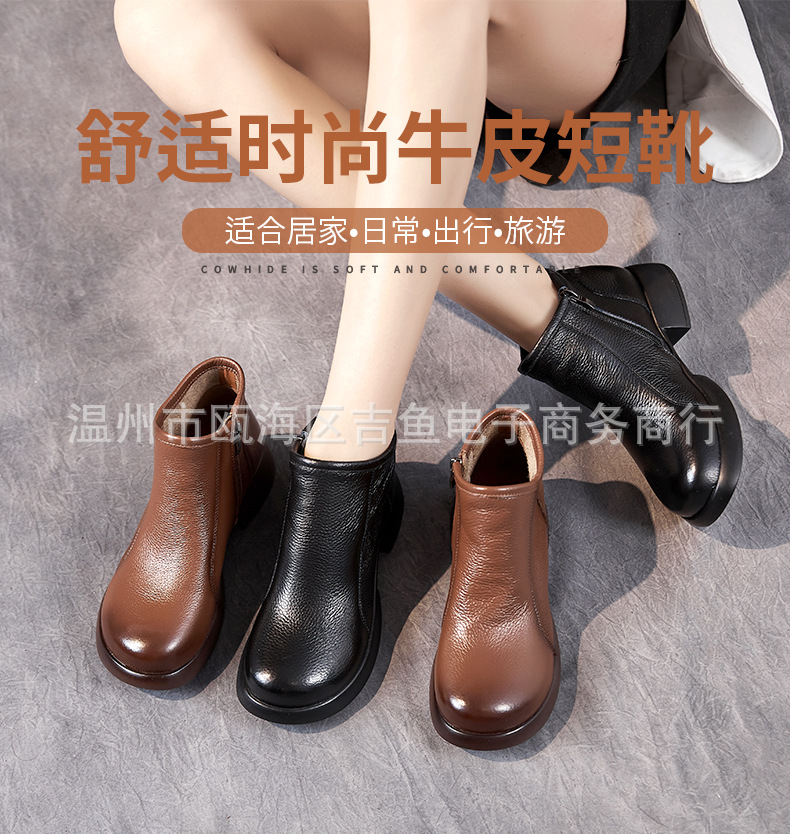 첫 번째 레이어 소가죽 짧은 부츠 가을 새 마틴 부츠 두꺼운 뒤꿈치 미끄럼 방지 정품 가죽 복고풍 다목적 여성 부츠 엄마를위한 편안한 신발스토어 가기