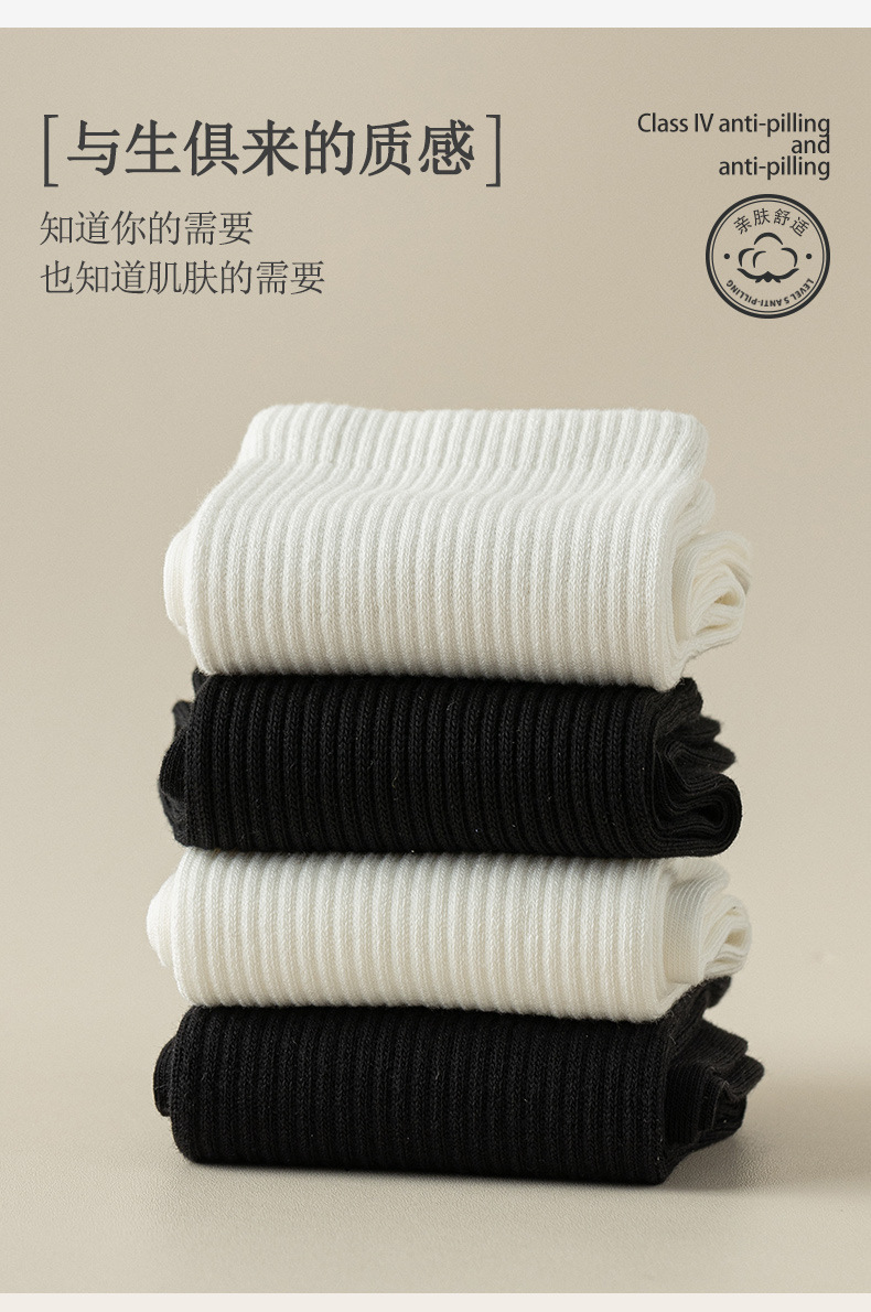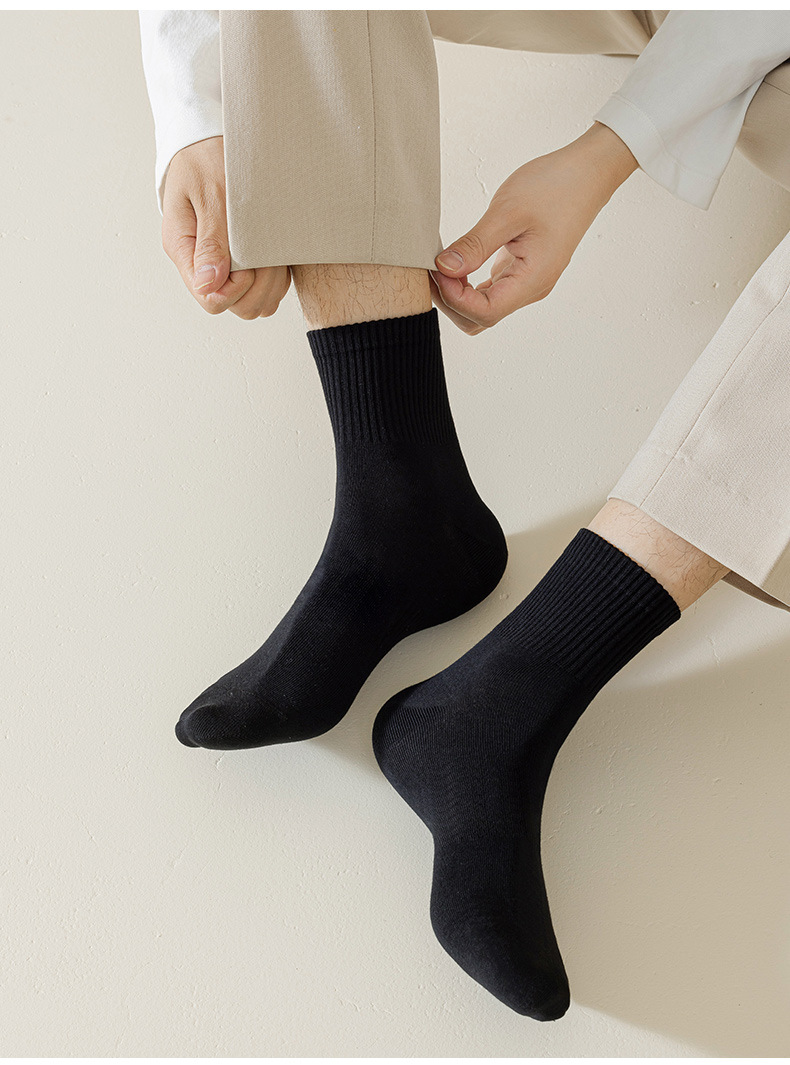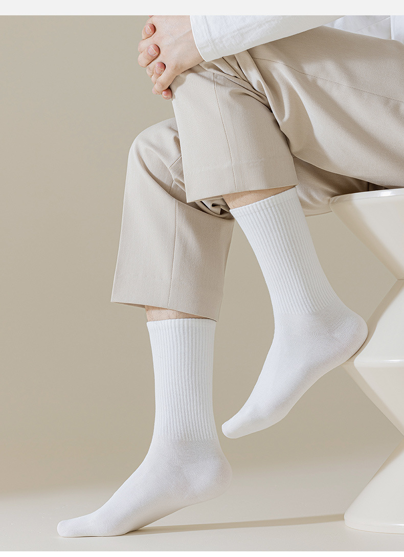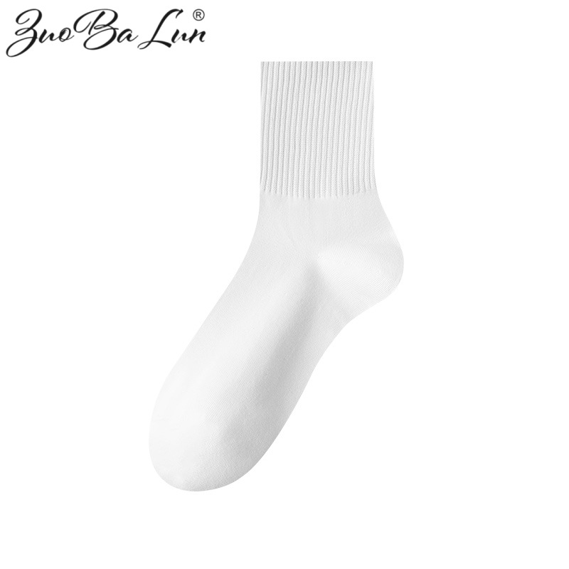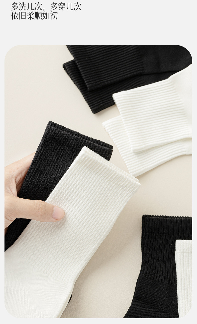 남성과 여성을위한 흑백 양말 가을과 겨울 한국식 미드 튜브 양말 여름 학생 단색 스포츠 면 양말 남성용 땀 흡수 스타킹