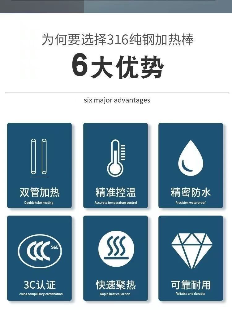 • CN-398 더블 튜브 울트라 쇼트 올 스틸 히팅 로드 500W