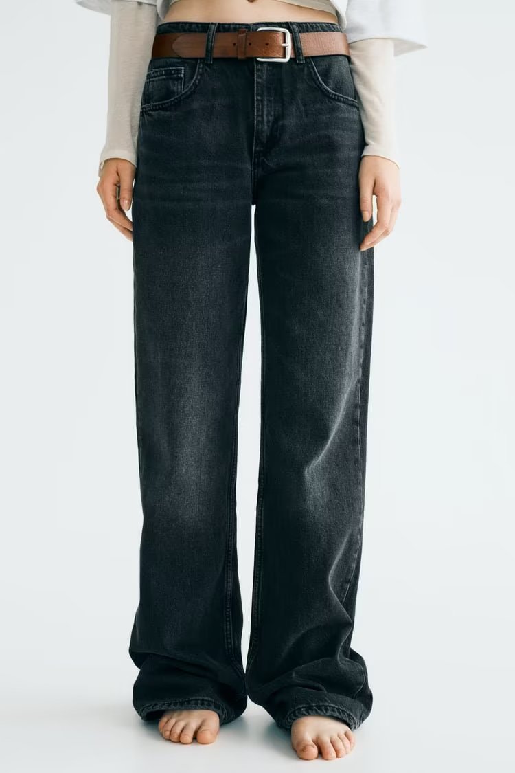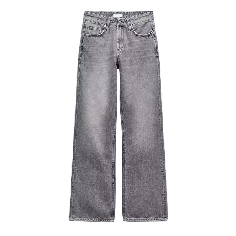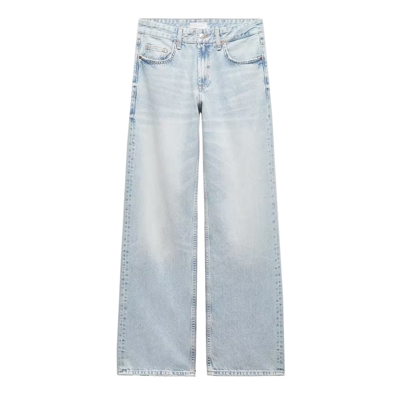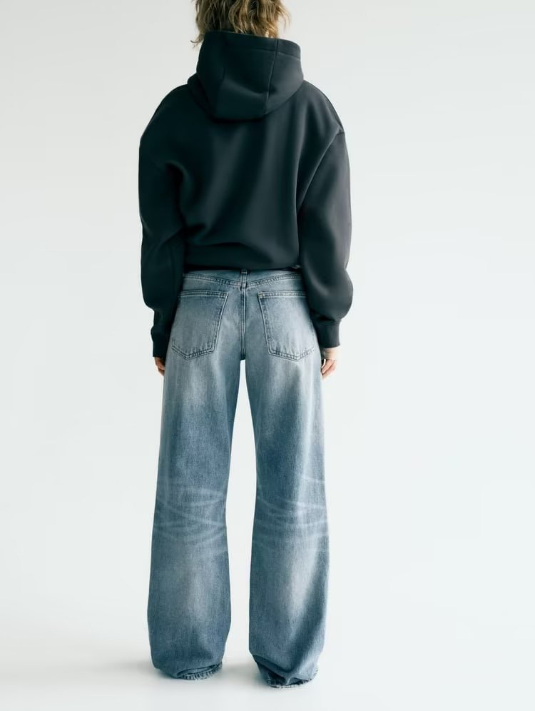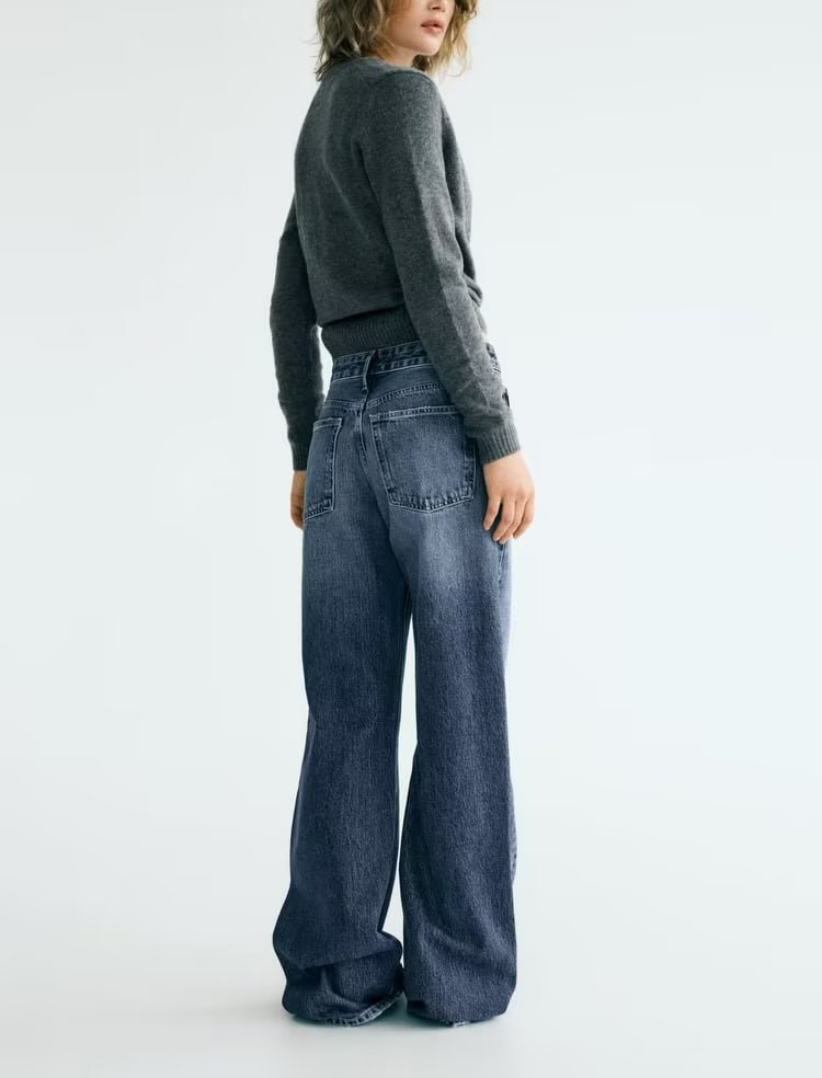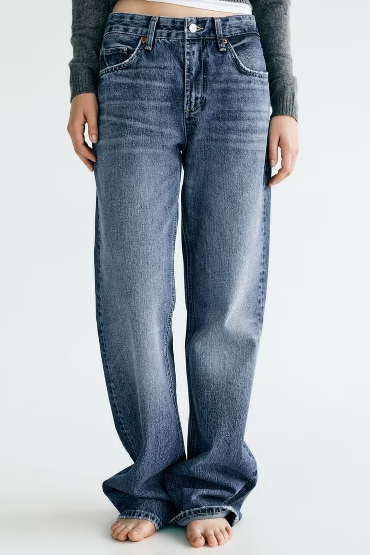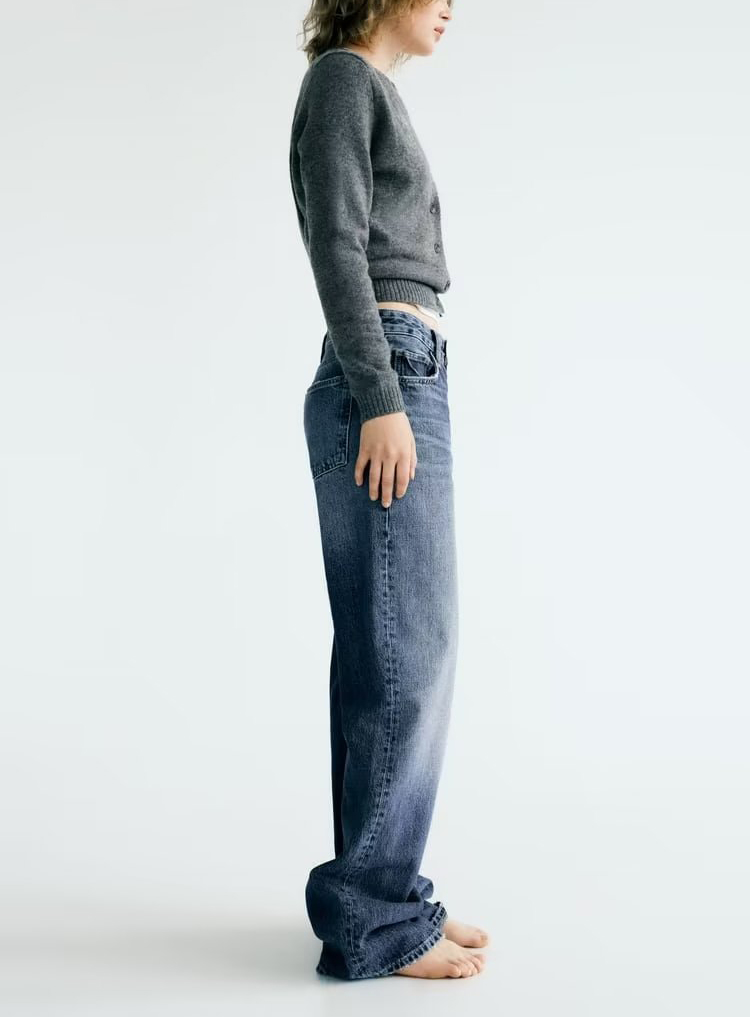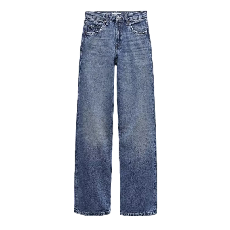 ZA 가을 새 여성 의류 통근 캐주얼 바지 면 느슨한 와이드 레그 미드 웨이스트 진 6045129스토어 가기
