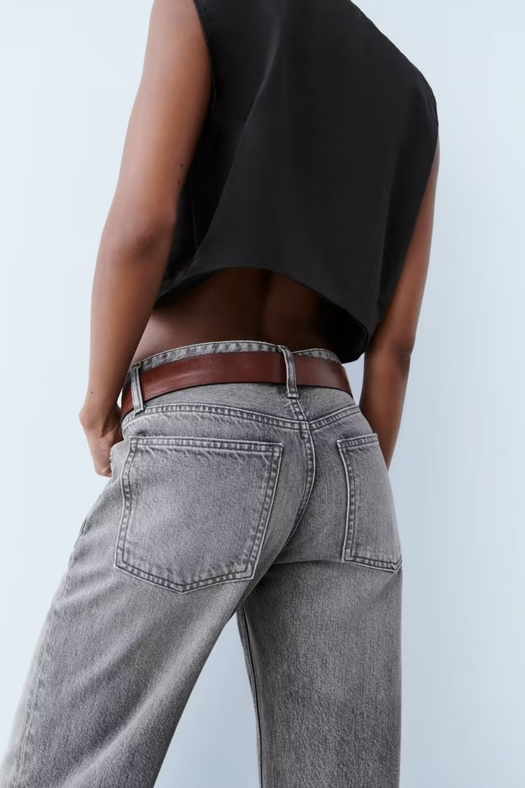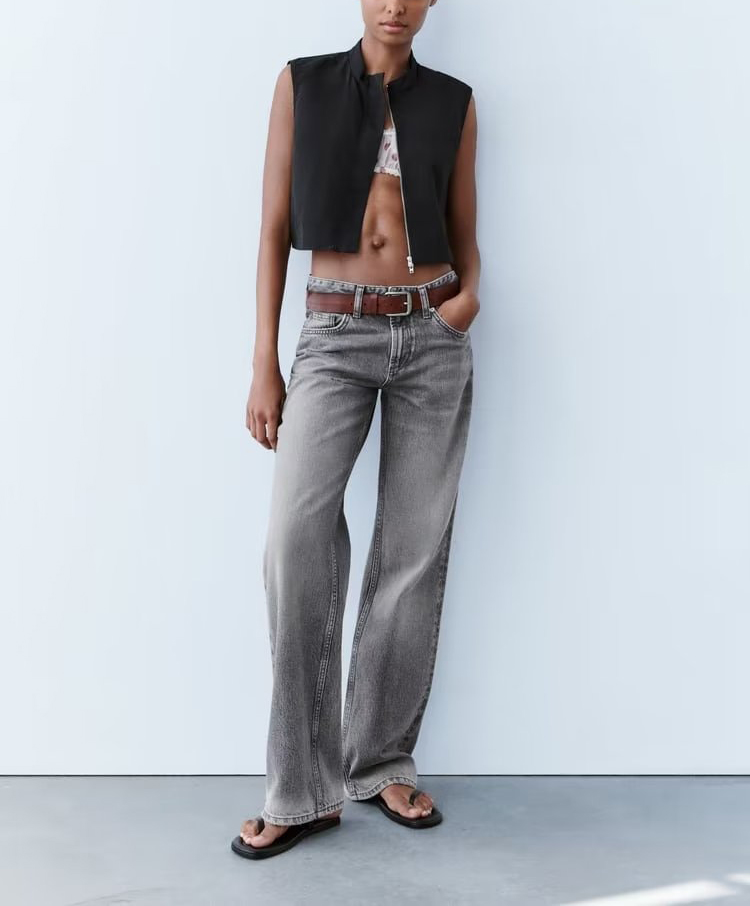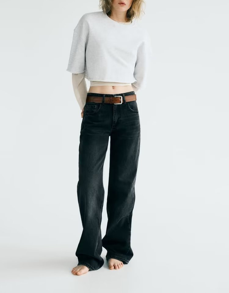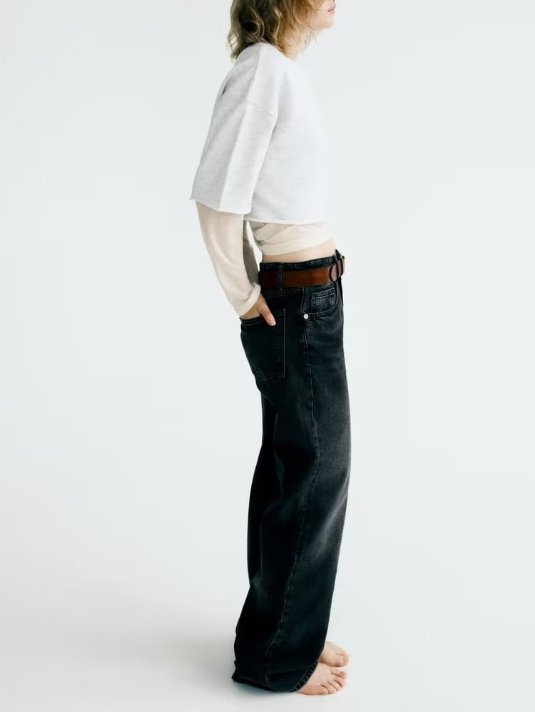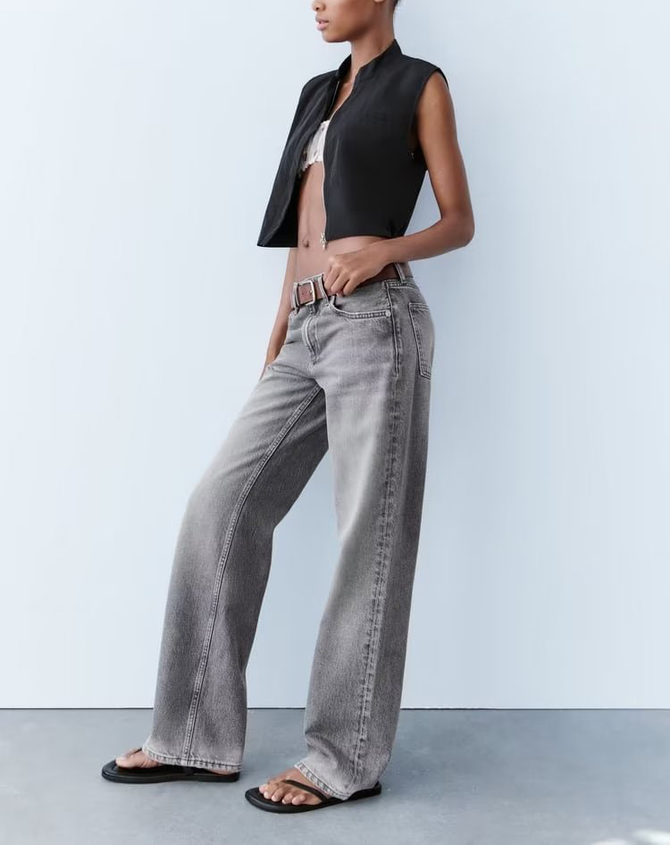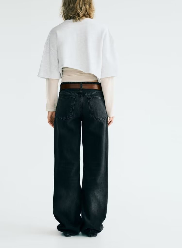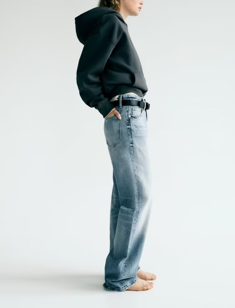 ZA 가을 새 여성 의류 통근 캐주얼 바지 면 느슨한 와이드 레그 미드 웨이스트 진 6045129스토어 가기