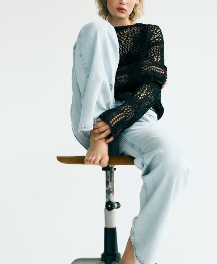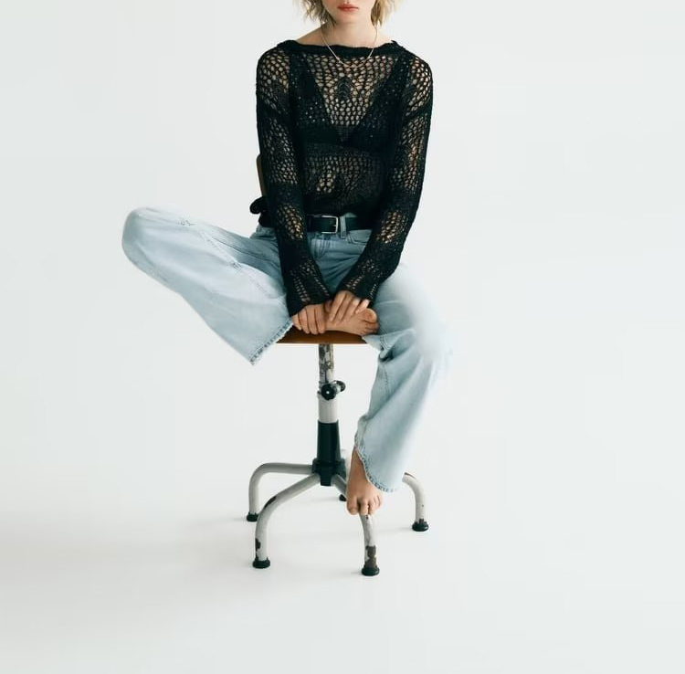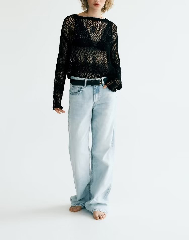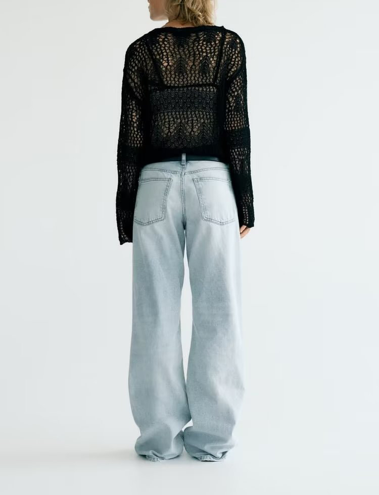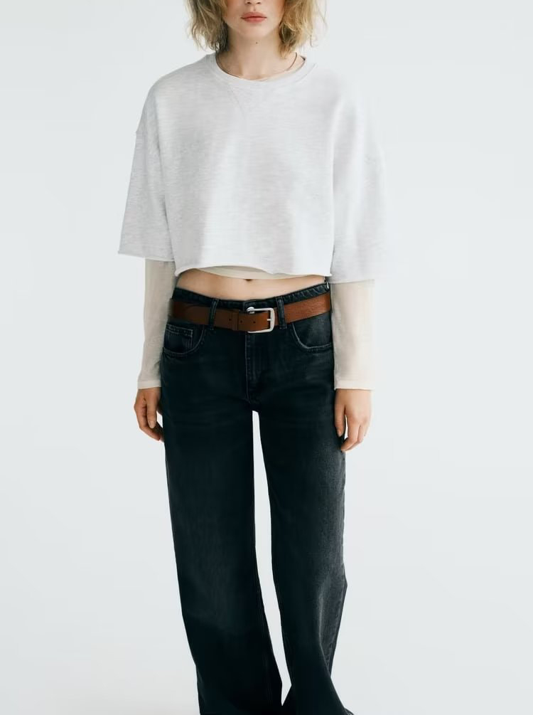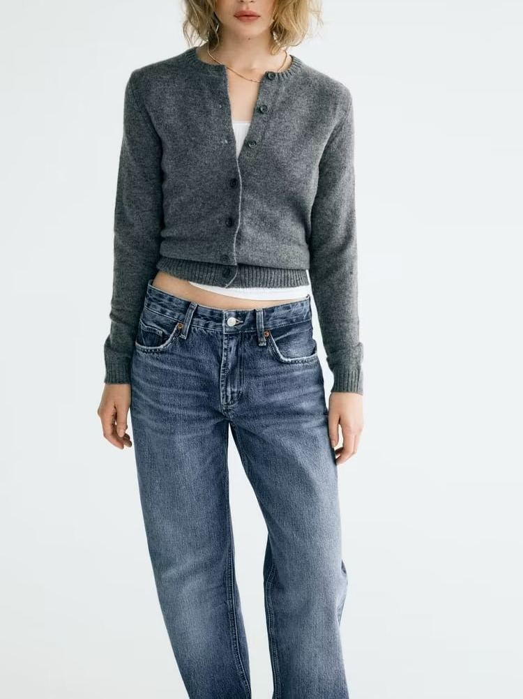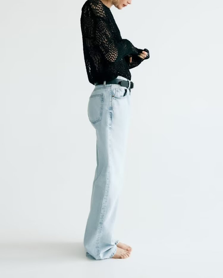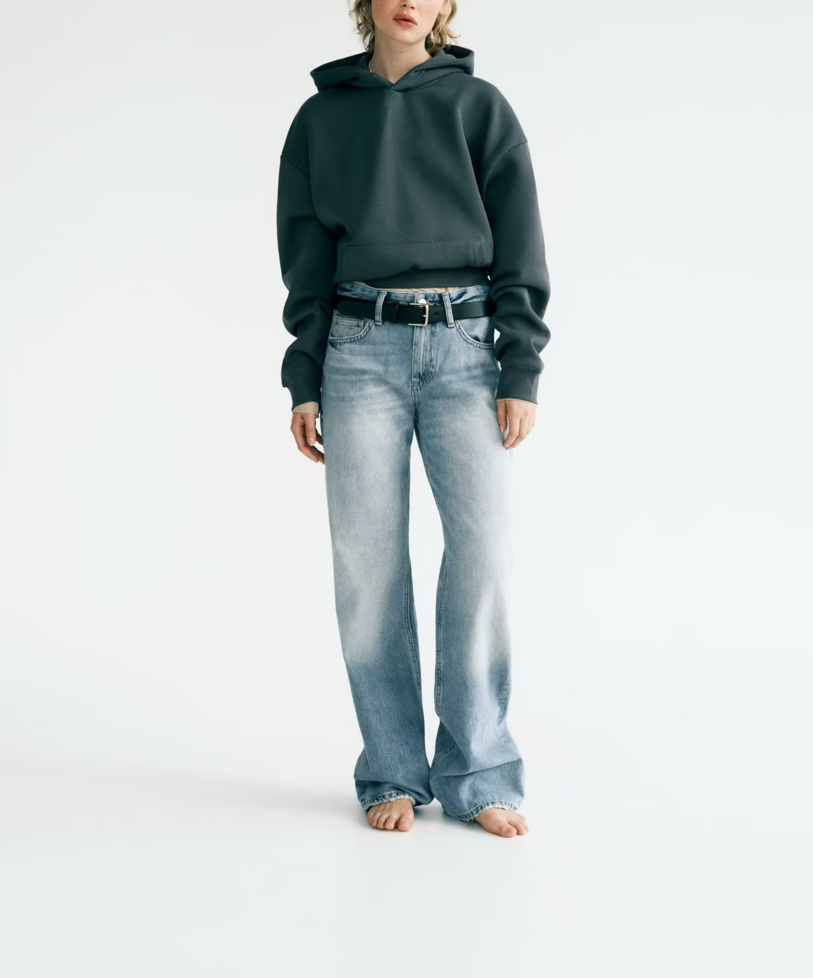 ZA 가을 새 여성 의류 통근 캐주얼 바지 면 느슨한 와이드 레그 미드 웨이스트 진 6045129스토어 가기