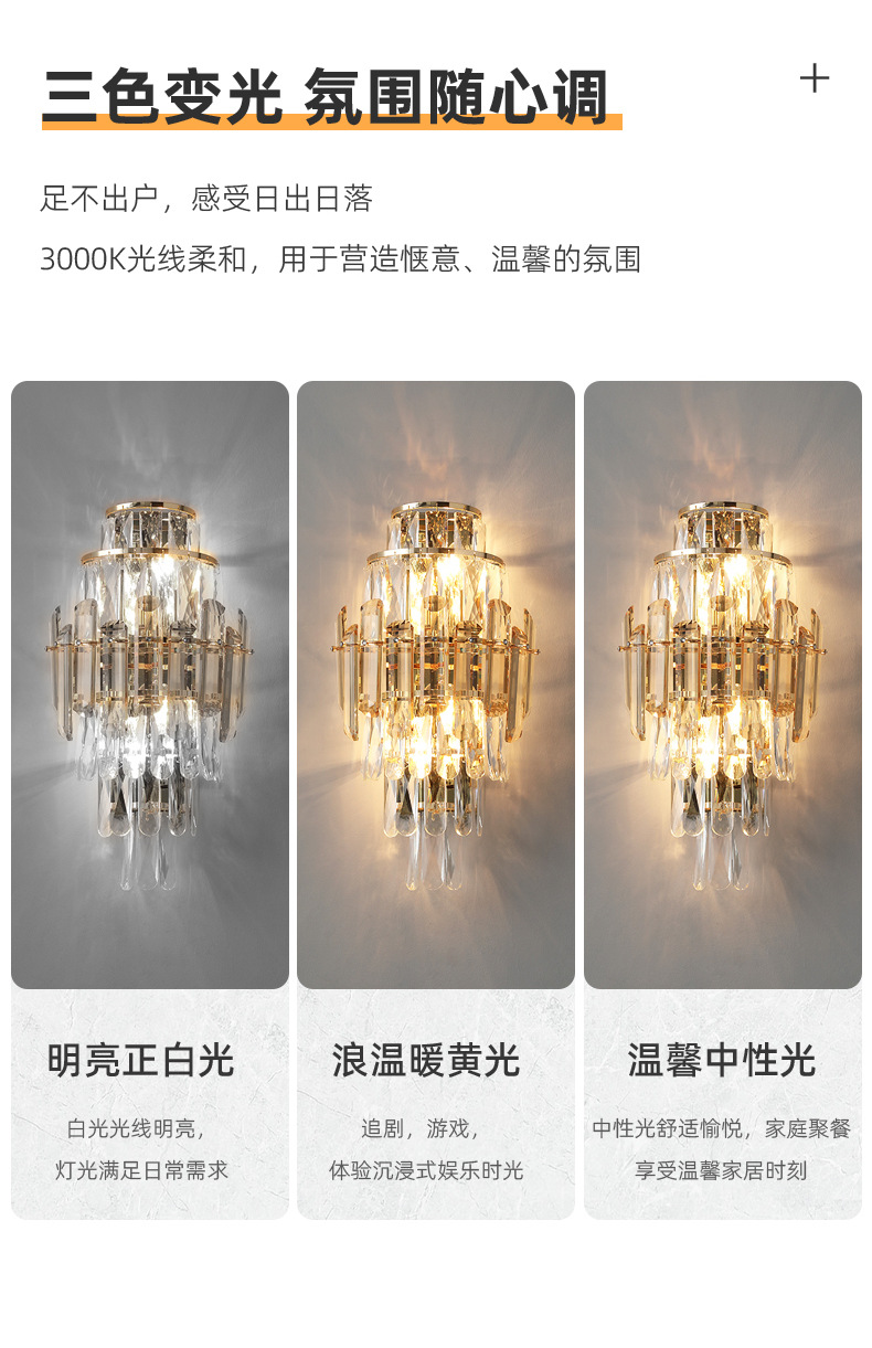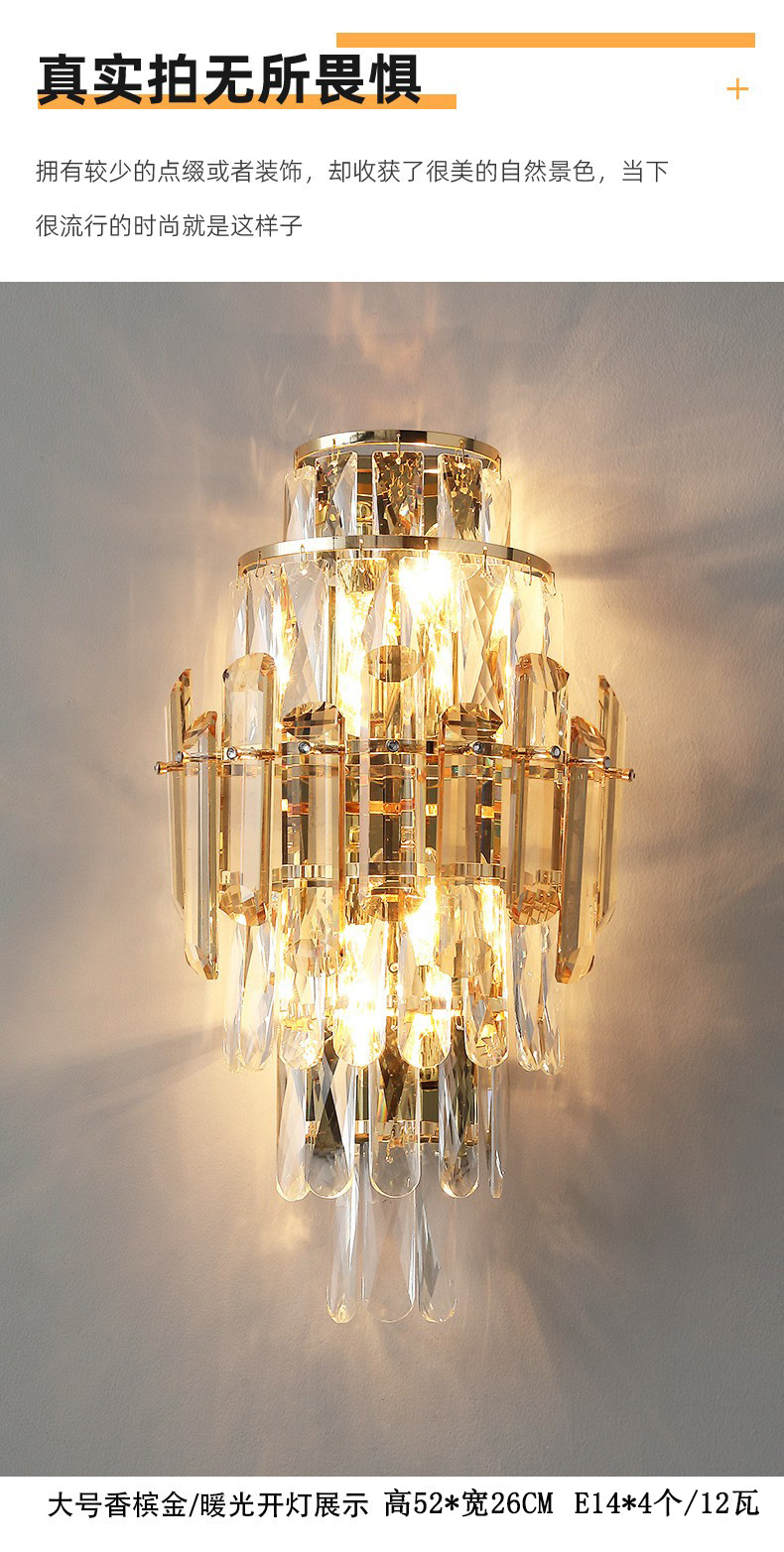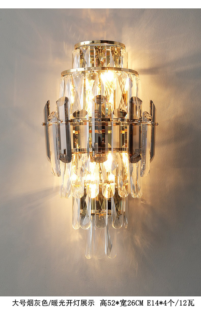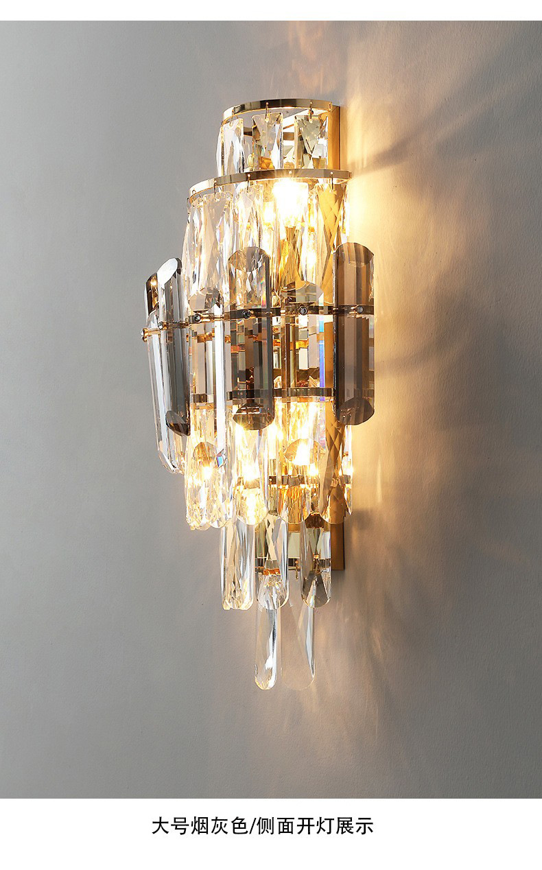 국경 간 거실 크리스탈 벽 램프 침대 옆 빛 고급 침실 빌라 고급 분위기 TV 배경 벽 램프 장식 중산스토어 가기