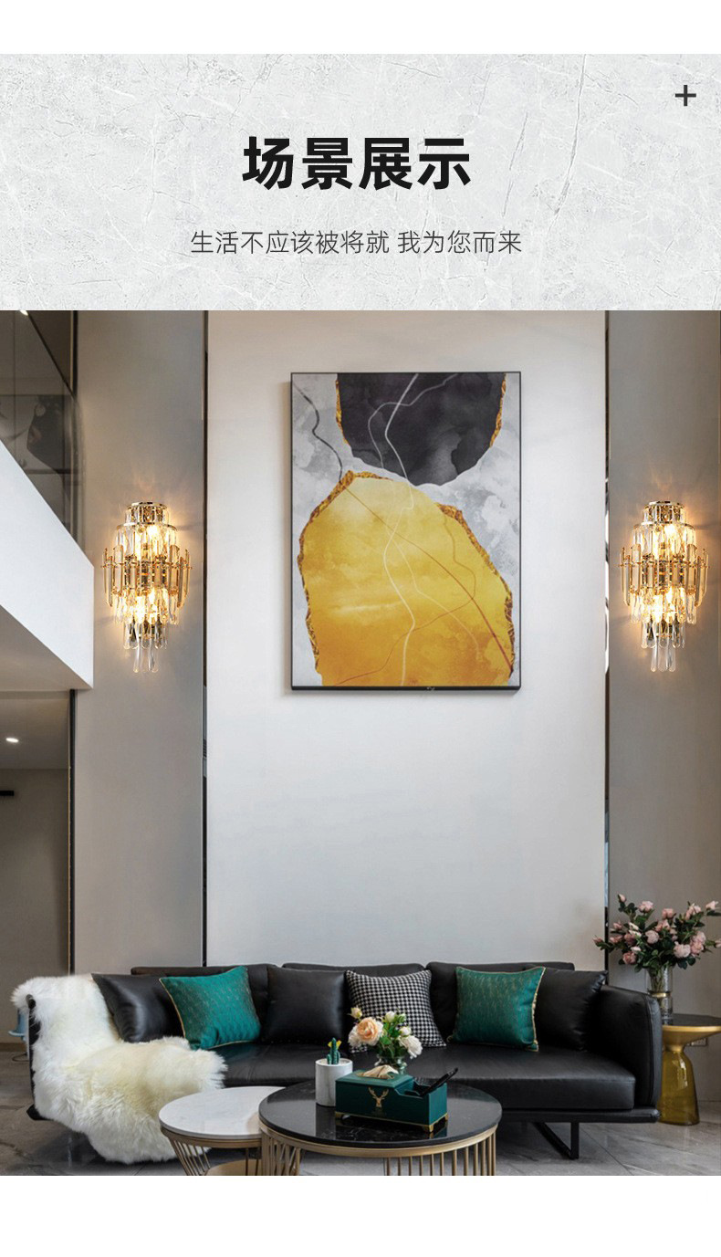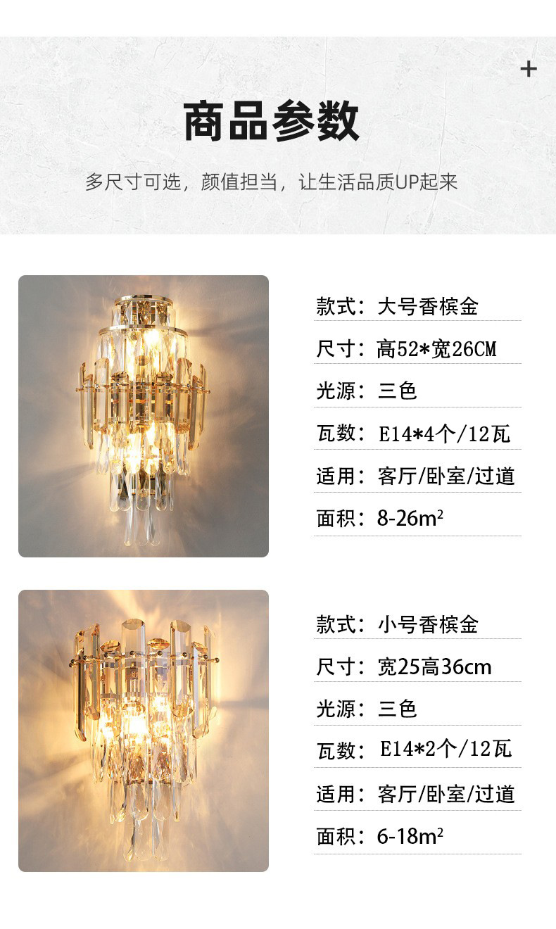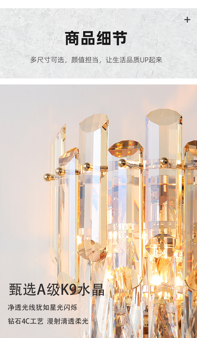 국경 간 거실 크리스탈 벽 램프 침대 옆 빛 고급 침실 빌라 고급 분위기 TV 배경 벽 램프 장식 중산스토어 가기