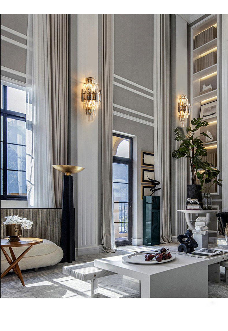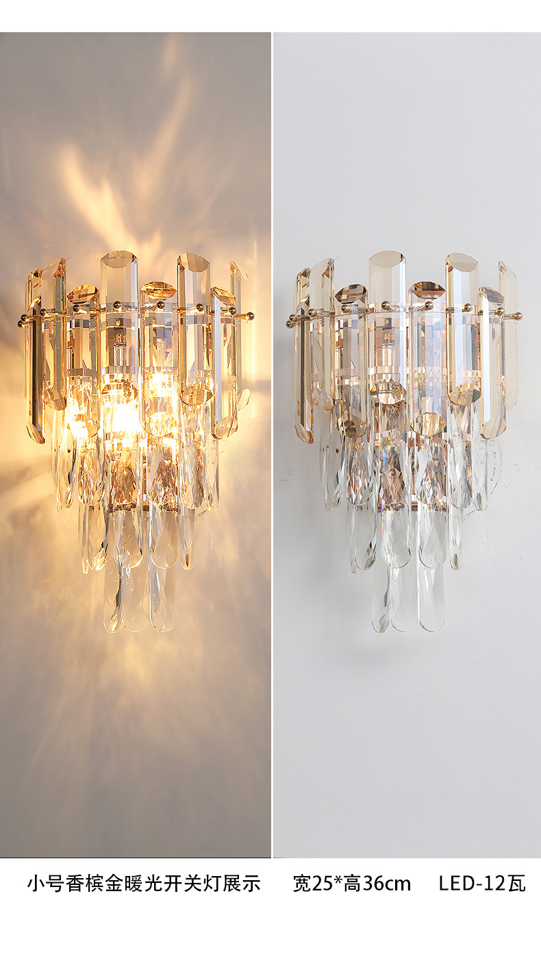 국경 간 거실 크리스탈 벽 램프 침대 옆 빛 고급 침실 빌라 고급 분위기 TV 배경 벽 램프 장식 중산