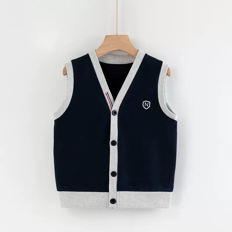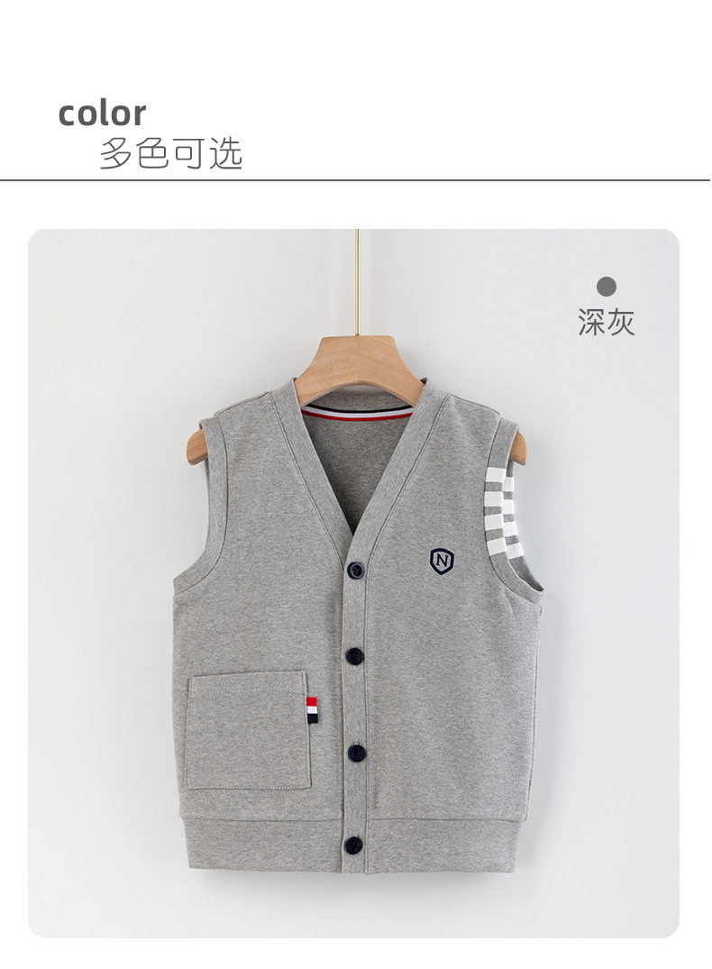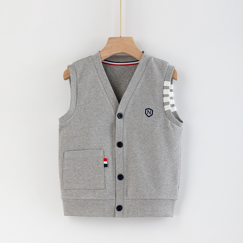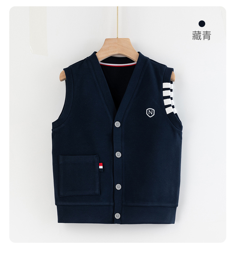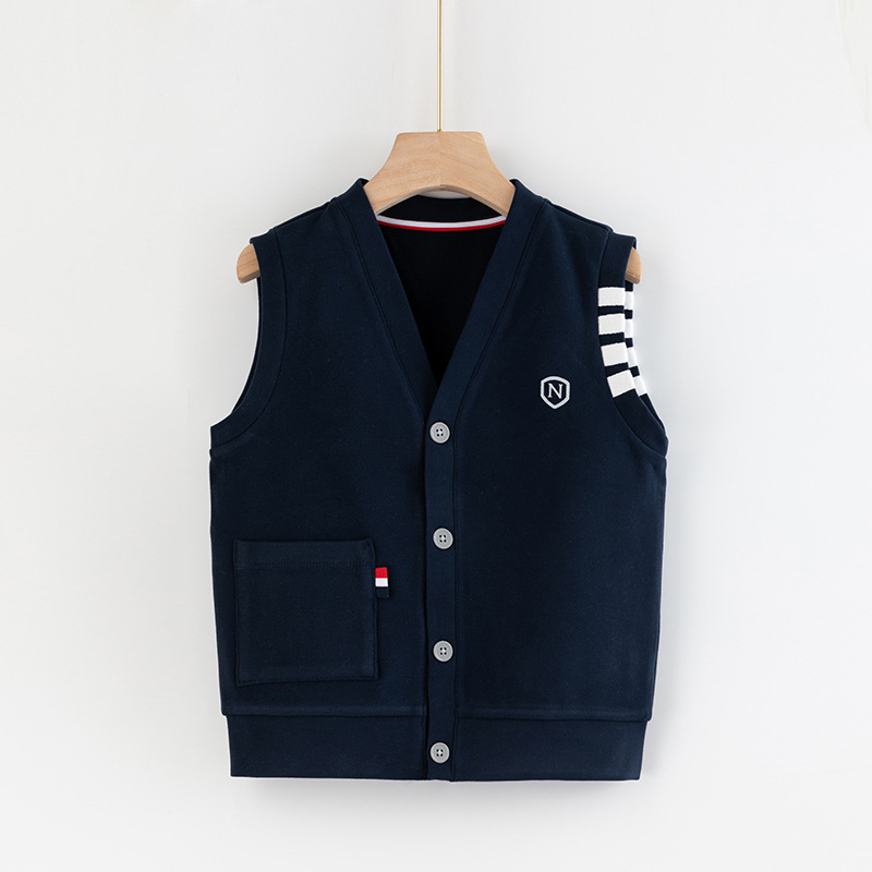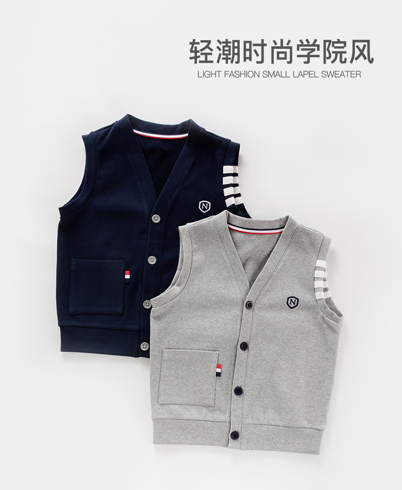 어린이 조끼 소년의 봄과 가을 대학 스타일 조끼 니트 조끼 큰 소년의 얇은 겉옷을 입고 소년 가을 조끼