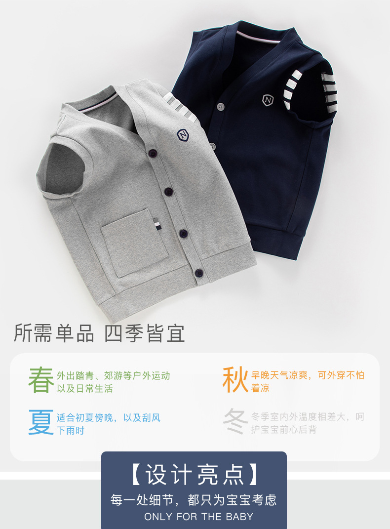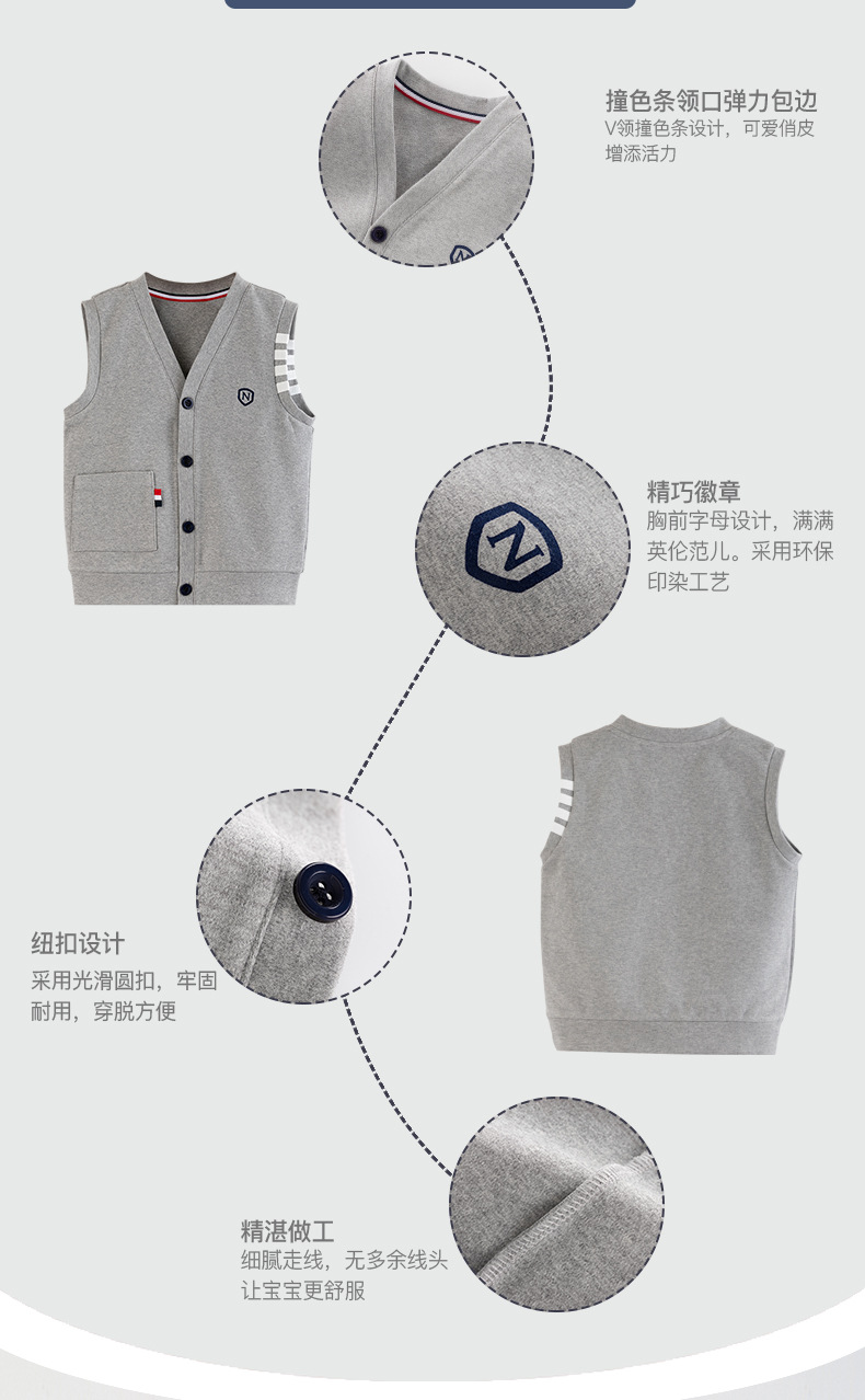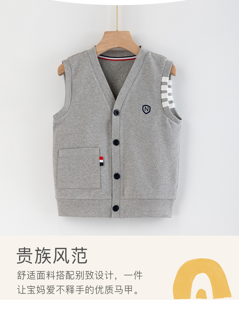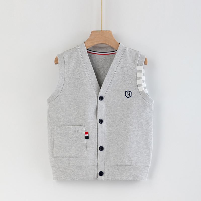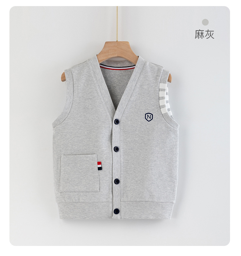 어린이 조끼 소년의 봄과 가을 대학 스타일 조끼 니트 조끼 큰 소년의 얇은 겉옷을 입고 소년 가을 조끼