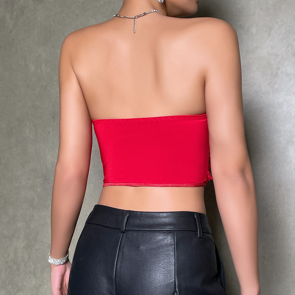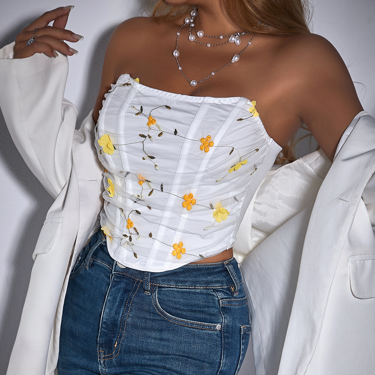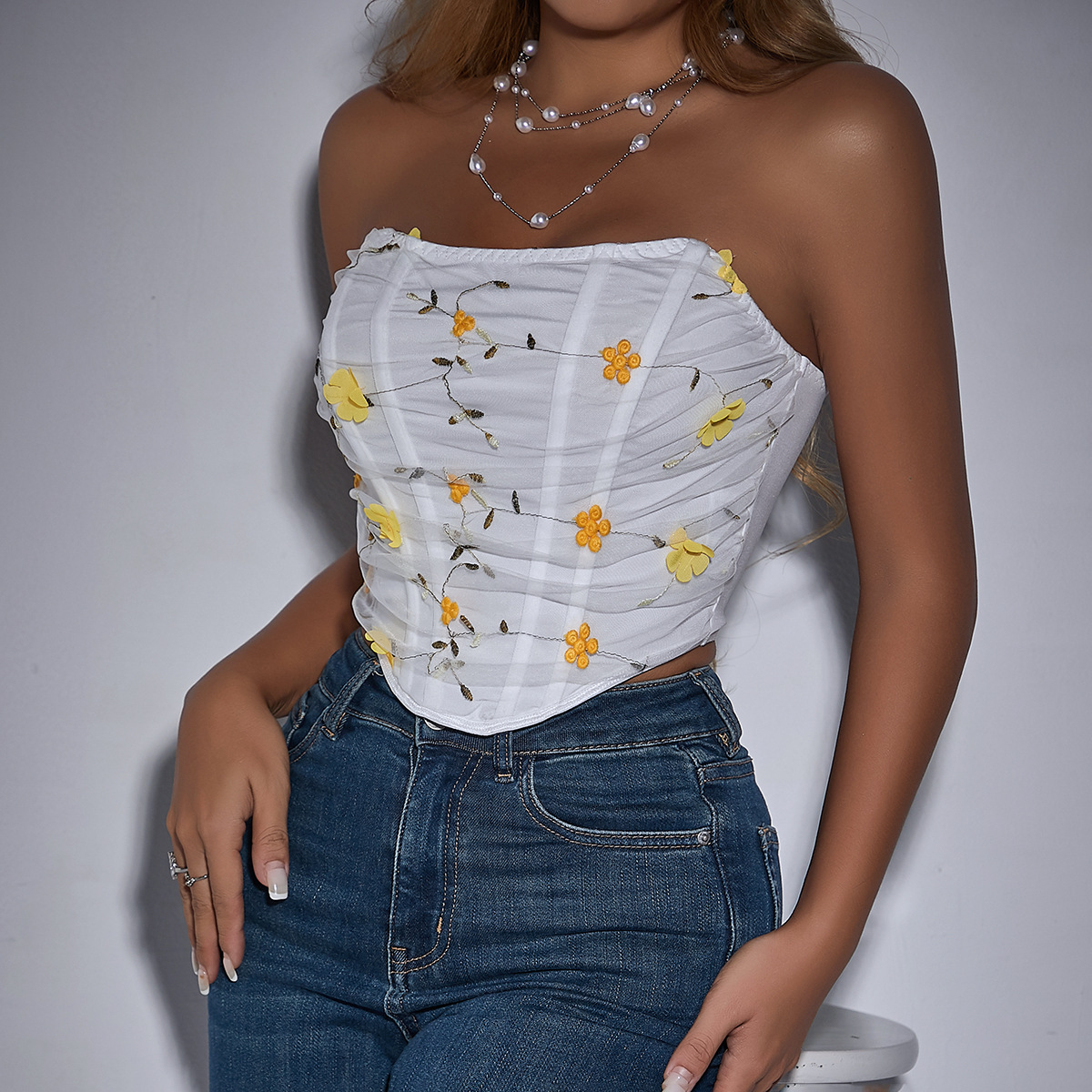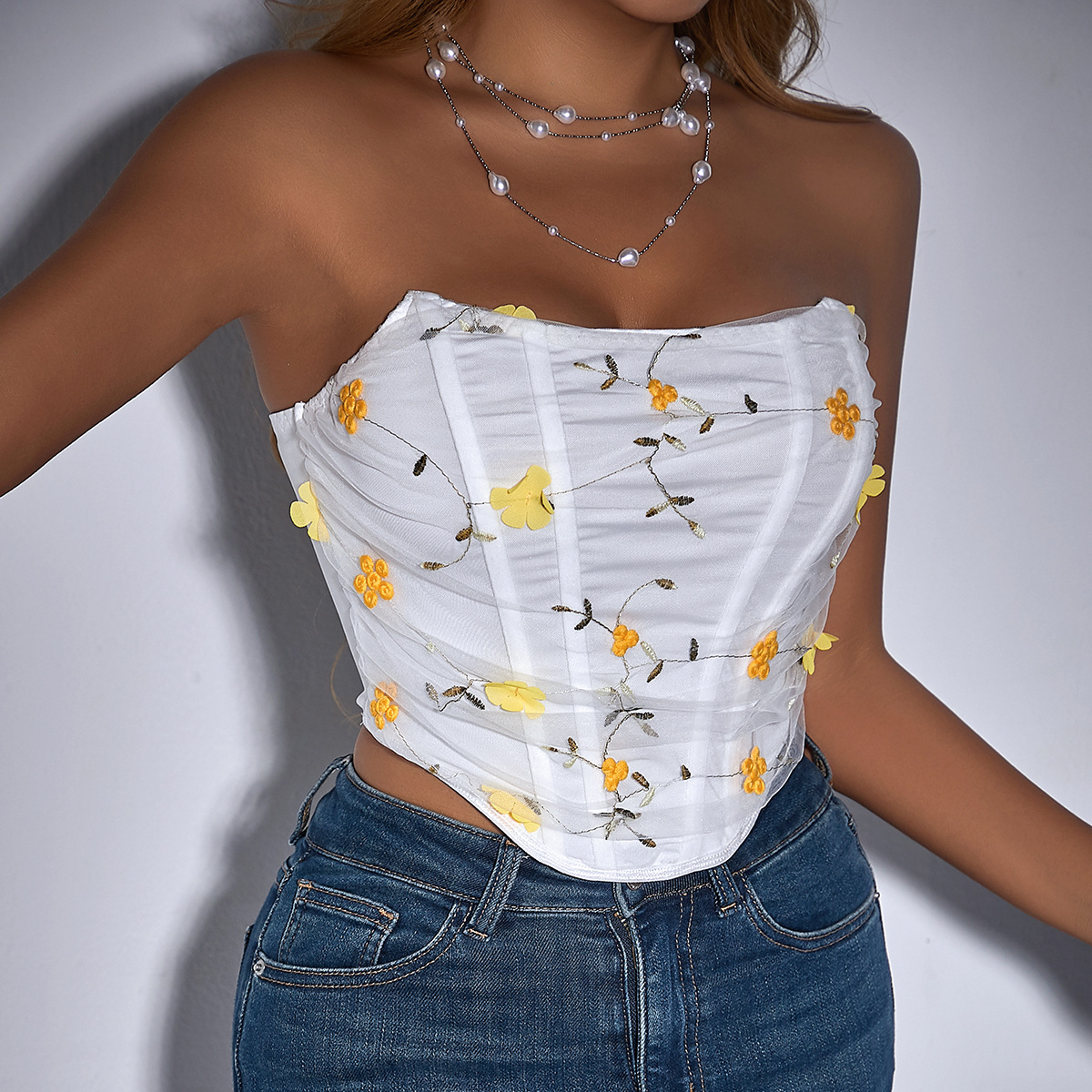 새로운 유럽과 미국의 스트리트 패션 스타일 폭발 꽃 수 놓은 물고기 뼈 메쉬 짧은 겉옷 튜브 탑 60650스토어 가기