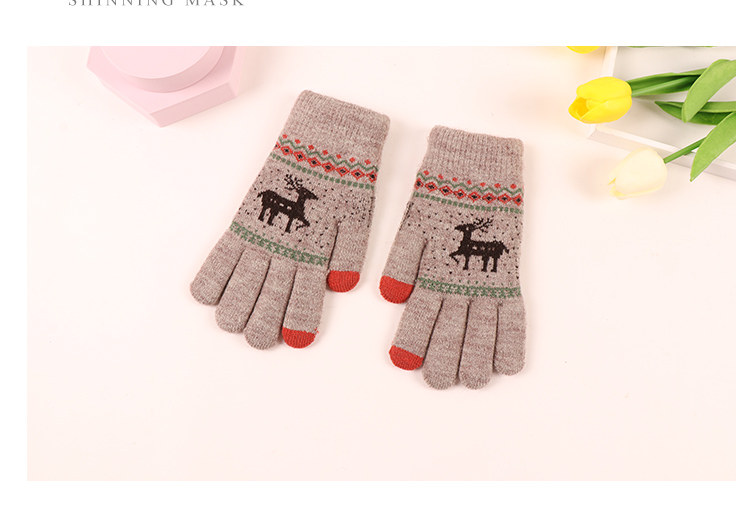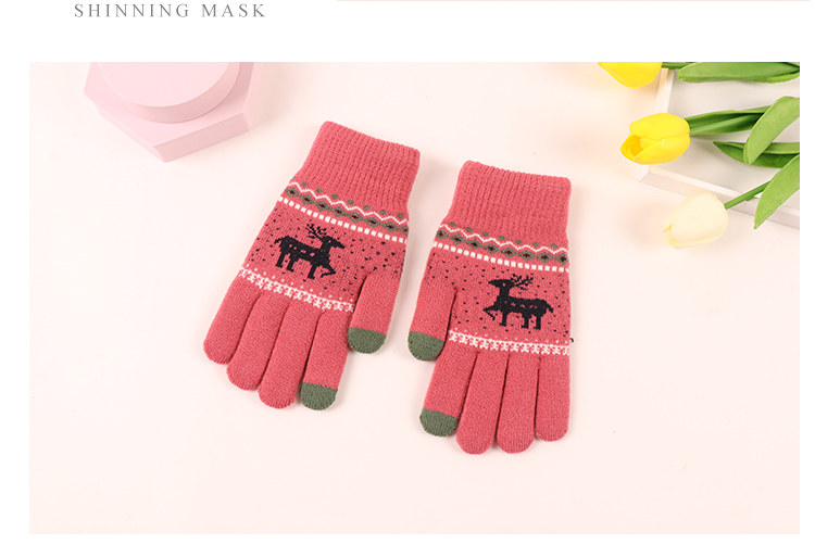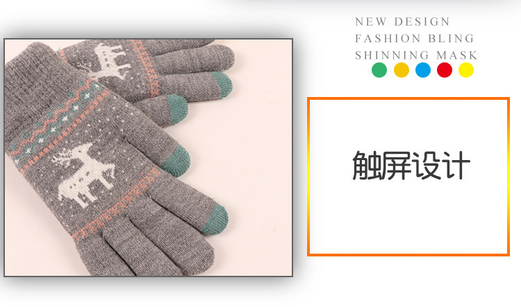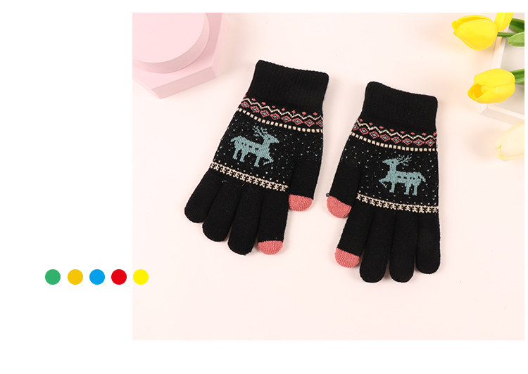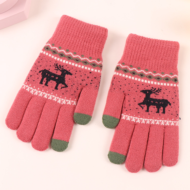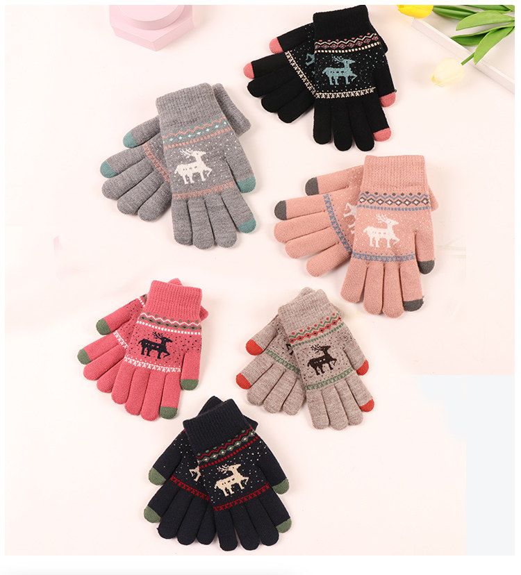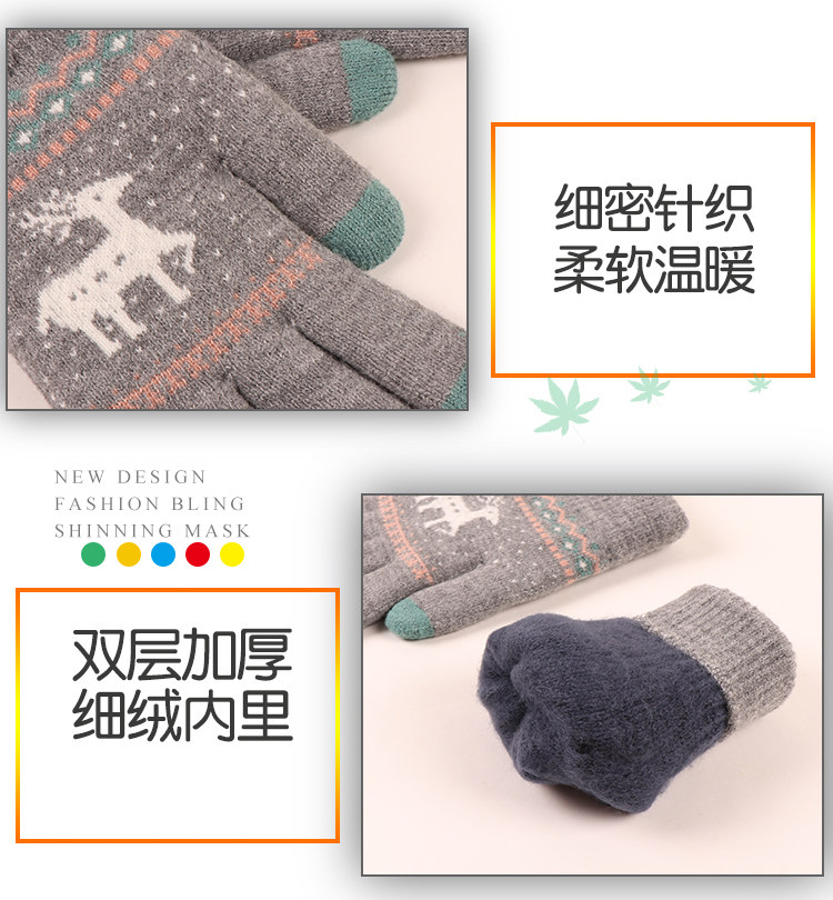더블 레이어 두꺼운 장갑 여자의 겨울 따뜻한 터치 스크린 승마 운전 방한 만화 엘크 울 니트