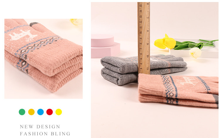 더블 레이어 두꺼운 장갑 여자의 겨울 따뜻한 터치 스크린 승마 운전 방한 만화 엘크 울 니트스토어 가기