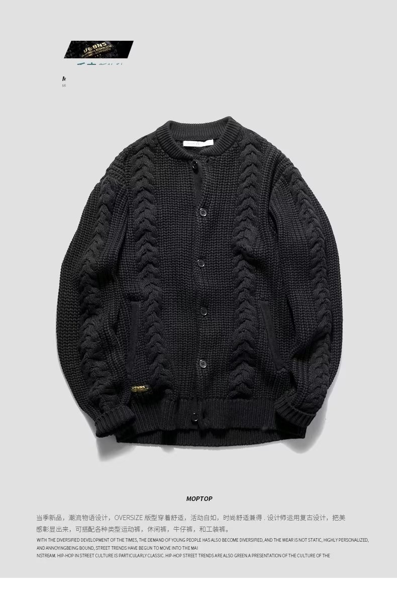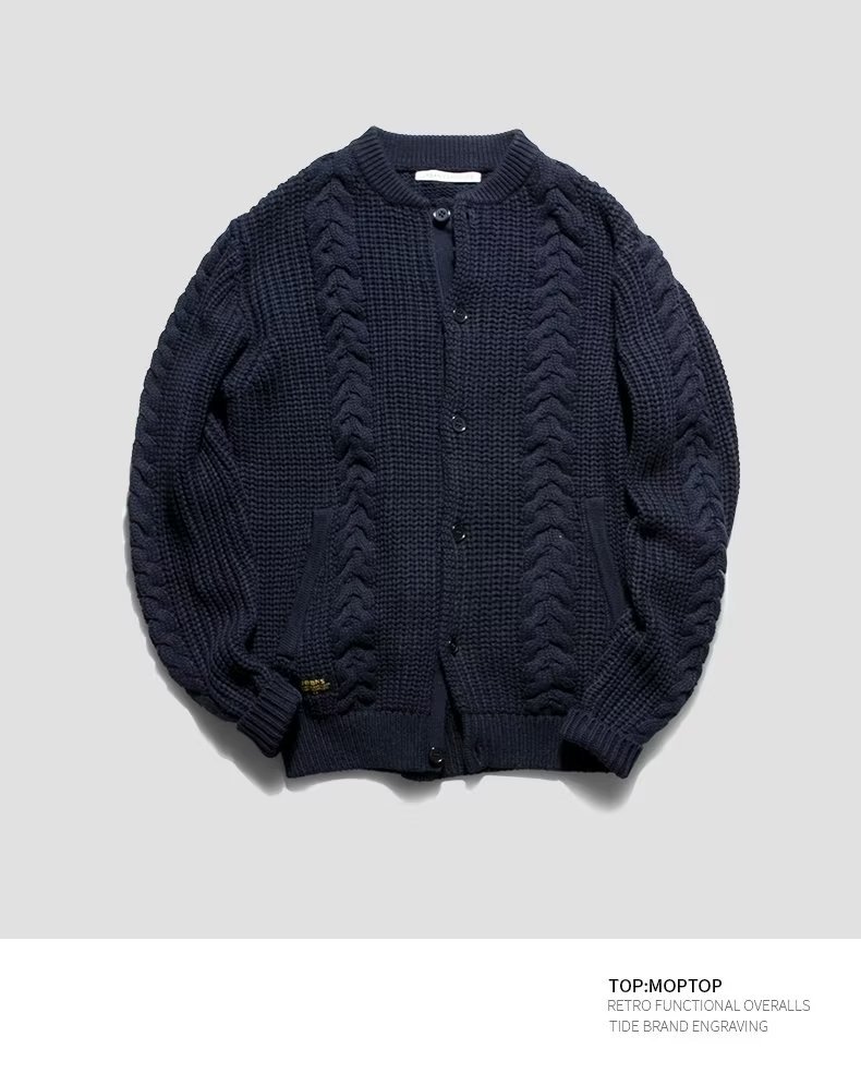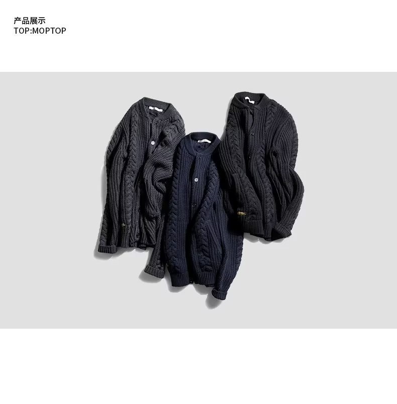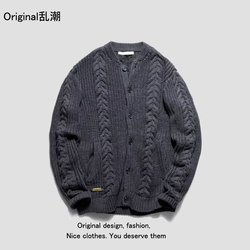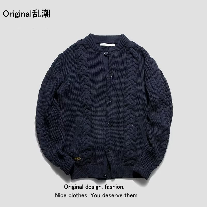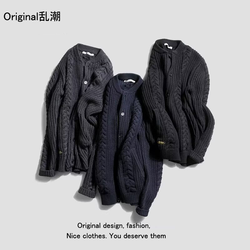 2023 새로운 오리지널 남성복 가을과 겨울 패션 레트로 트위스트 니트 카디건 스웨터 재킷 남성 청바지스토어 가기