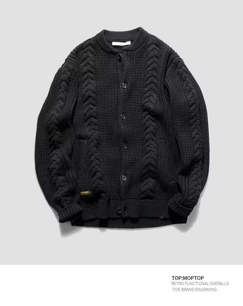 2023 새로운 오리지널 남성복 가을과 겨울 패션 레트로 트위스트 니트 카디건 스웨터 재킷 남성 청바지