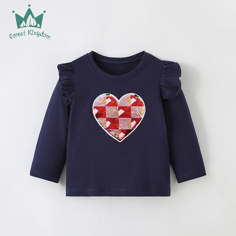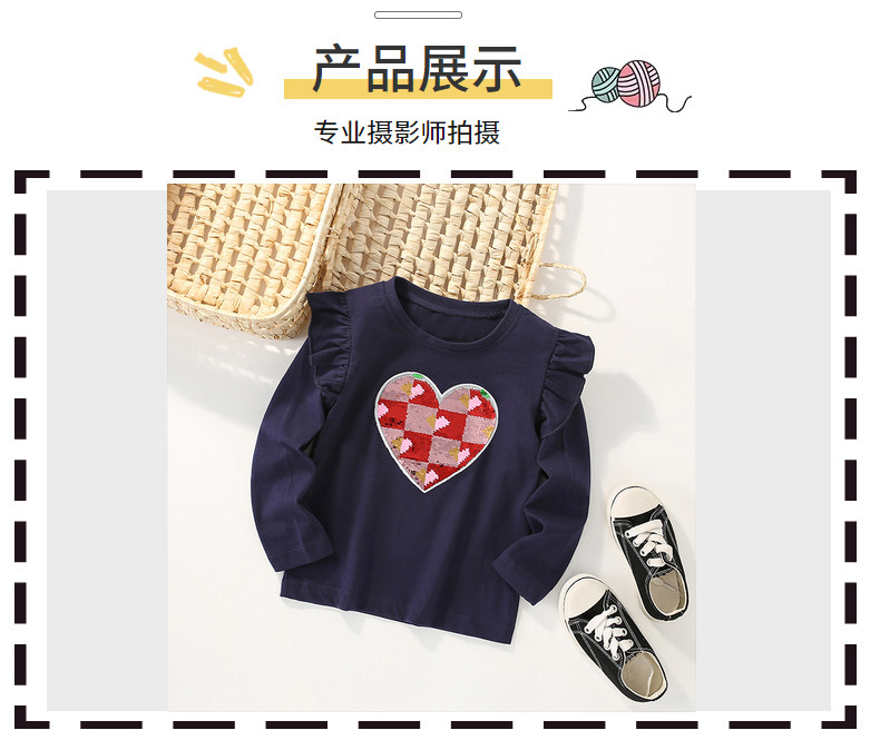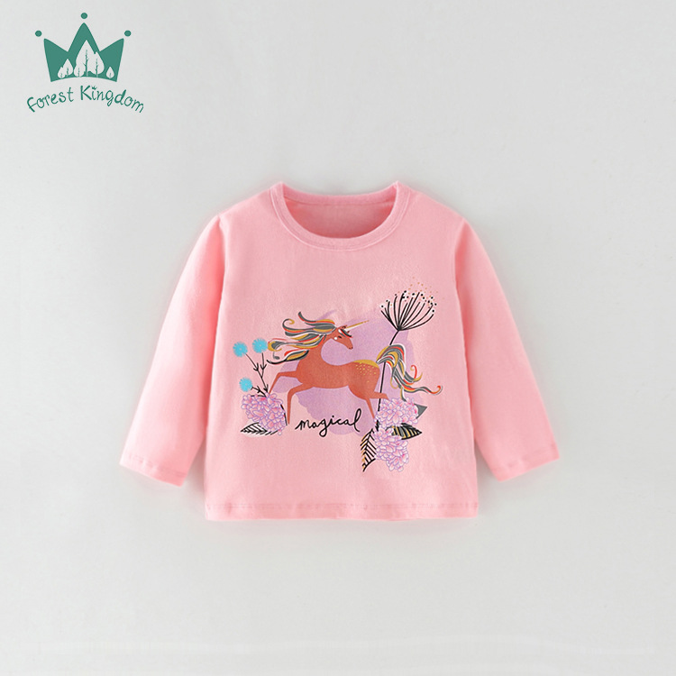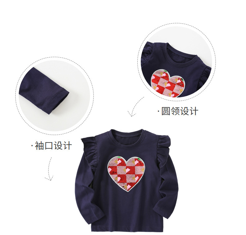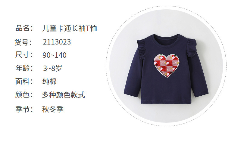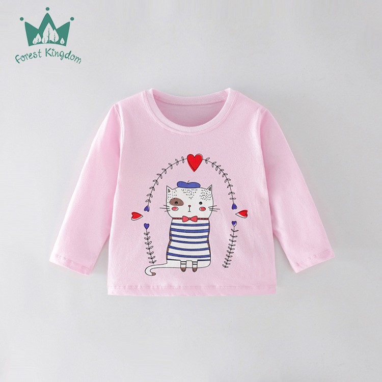 유럽과 미국의 소녀 순수 코튼 긴팔 티셔츠 아기 소녀 가을, 겨울 만화 사랑 인쇄 아동 의류 탑 아동 바닥 셔츠스토어 가기
