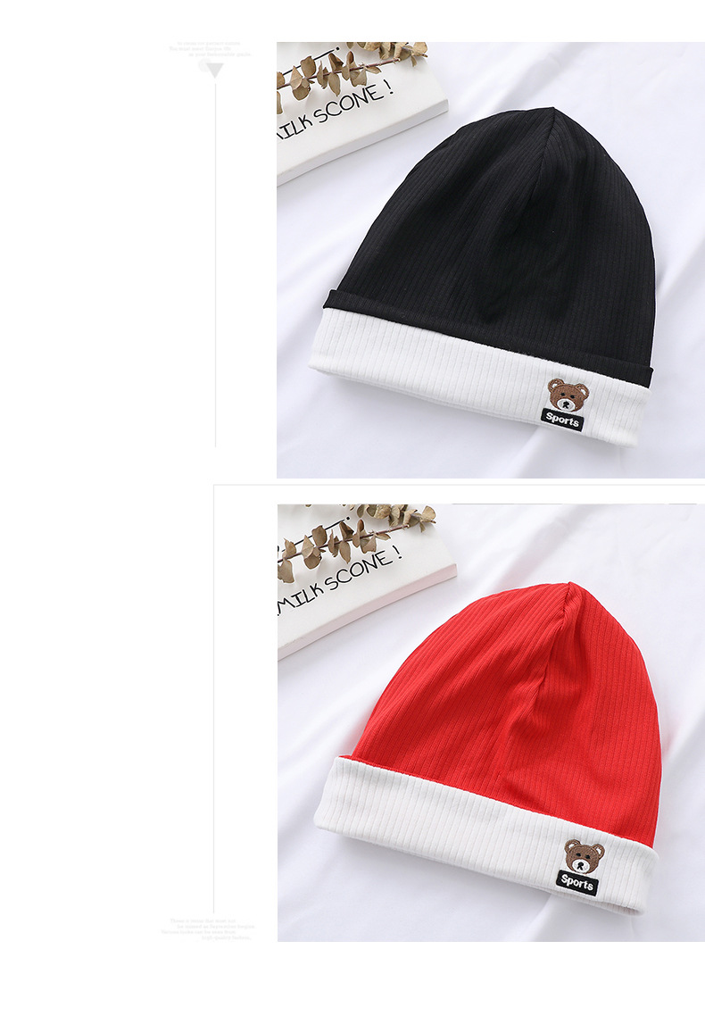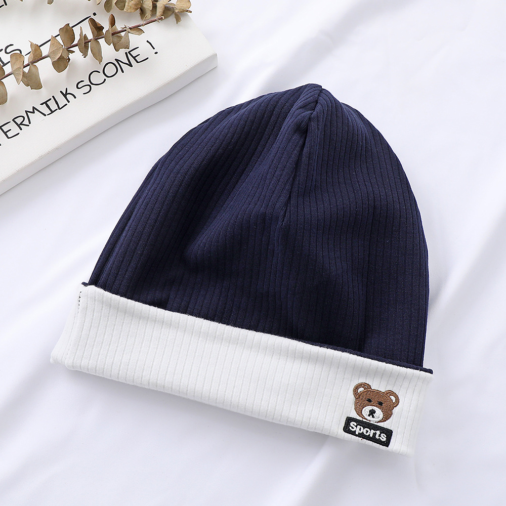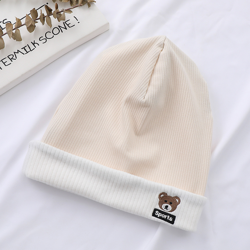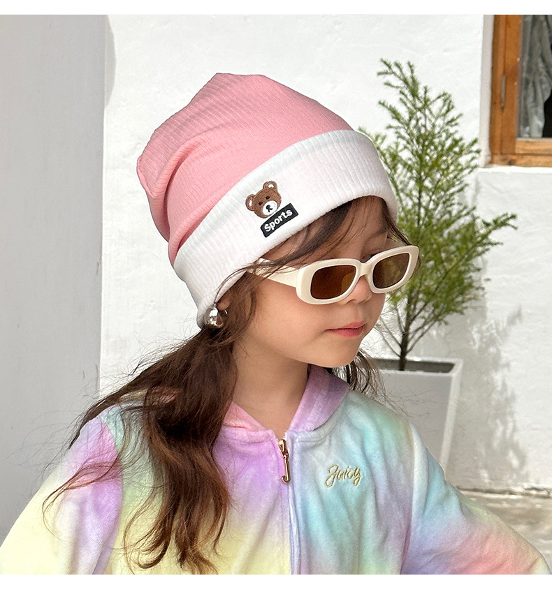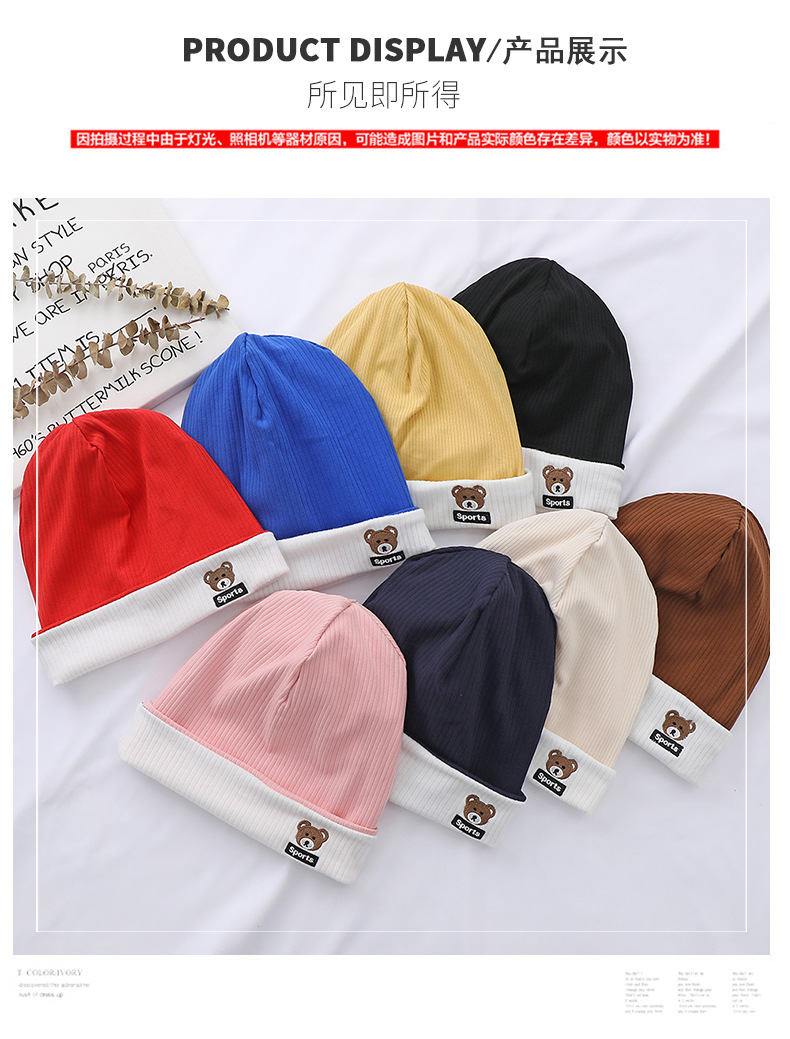 가을과 겨울 대비 색상 플랜지 핏 스트립 자수 곰 한국식 캔디 컬러 니트 모자 따뜻한 풀오버 모자 어린이 모자