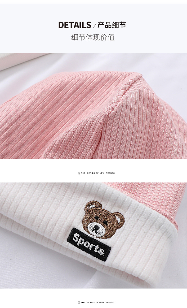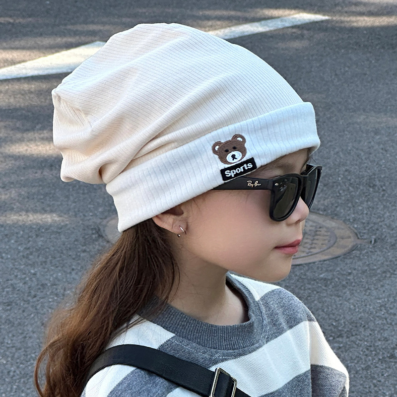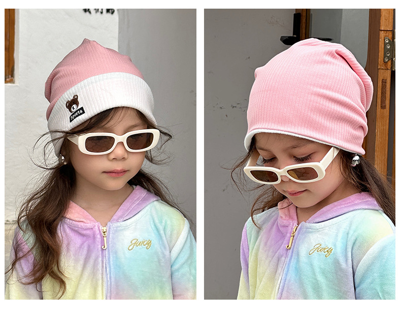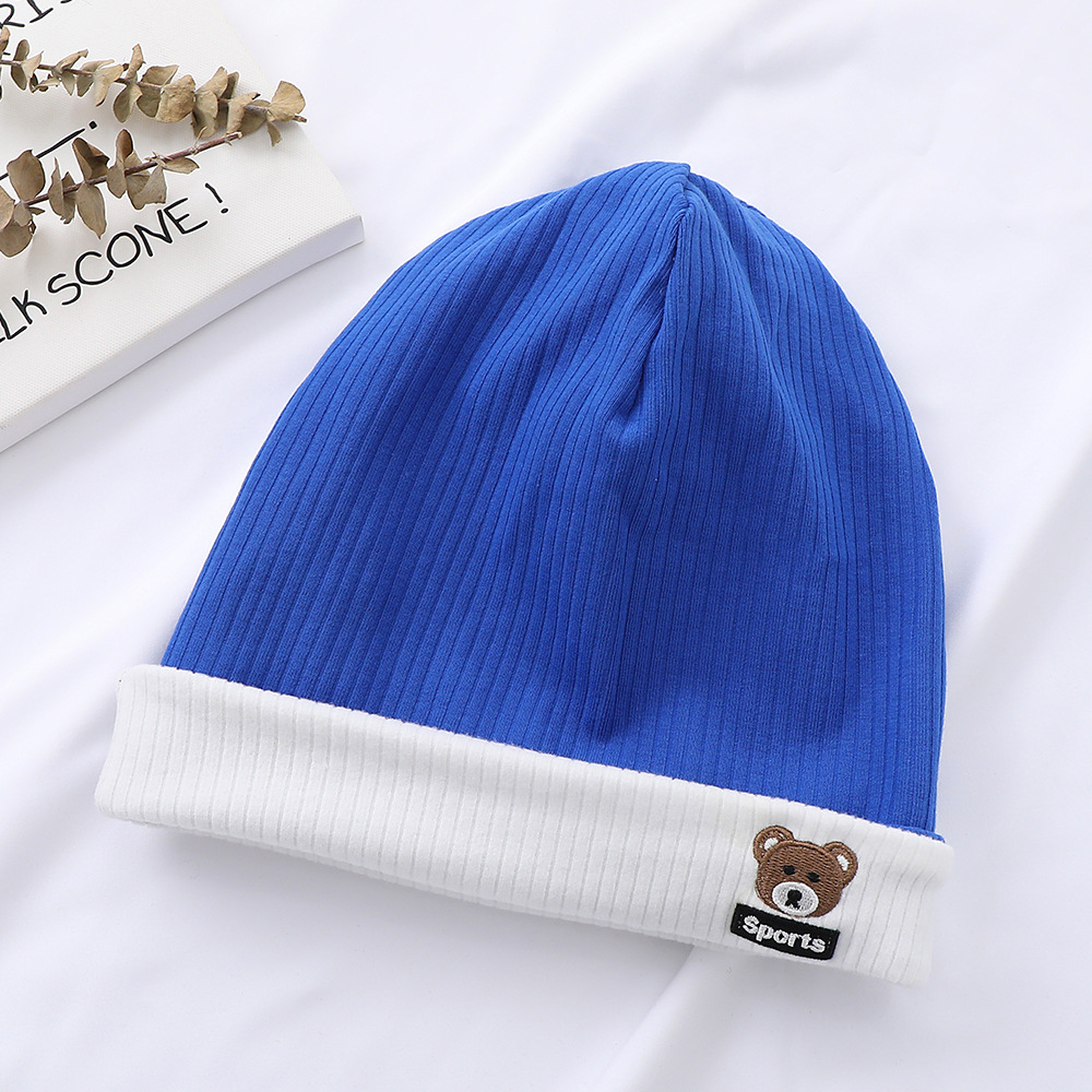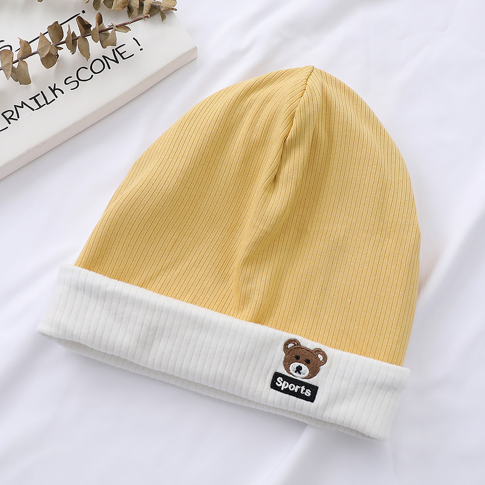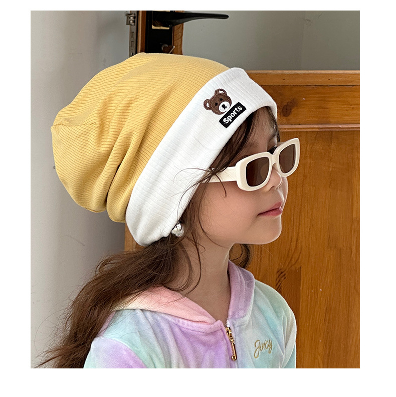 가을과 겨울 대비 색상 플랜지 핏 스트립 자수 곰 한국식 캔디 컬러 니트 모자 따뜻한 풀오버 모자 어린이 모자