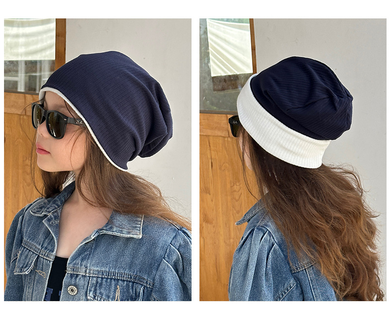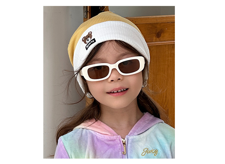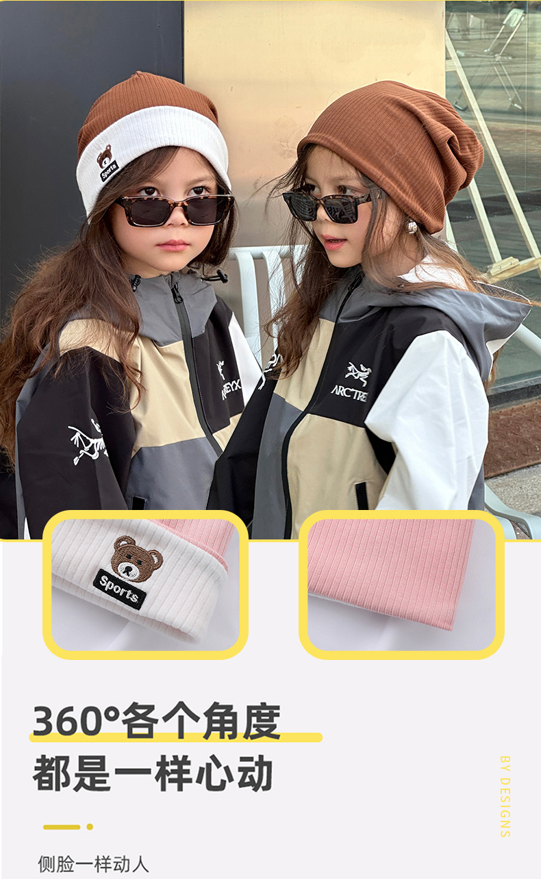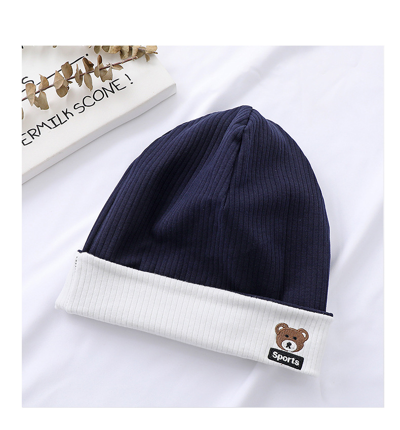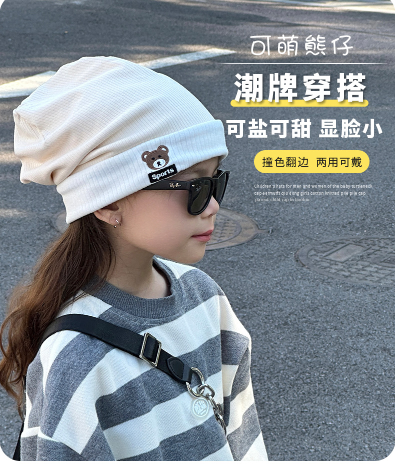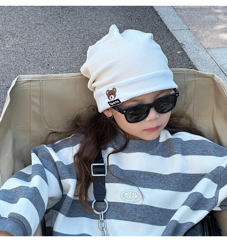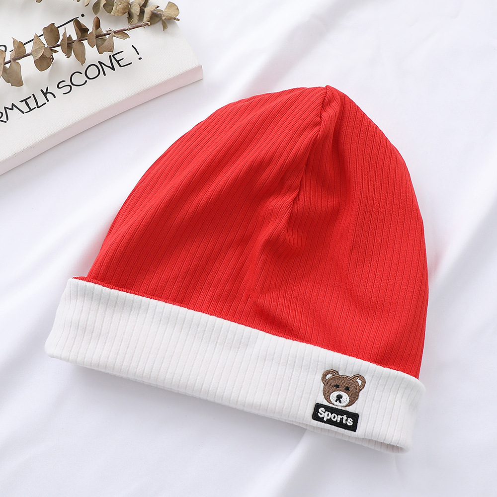 가을과 겨울 대비 색상 플랜지 핏 스트립 자수 곰 한국식 캔디 컬러 니트 모자 따뜻한 풀오버 모자 어린이 모자