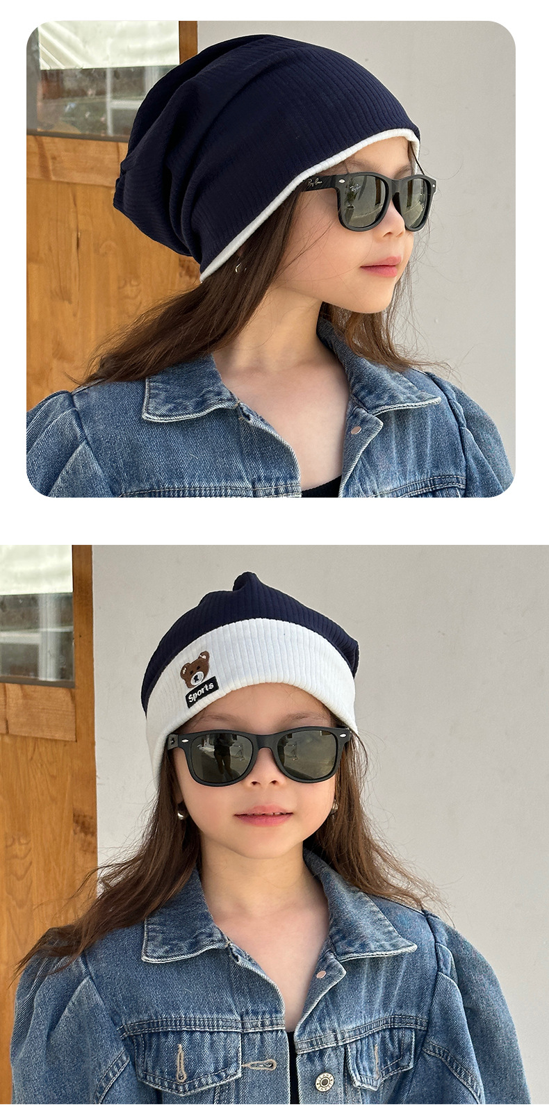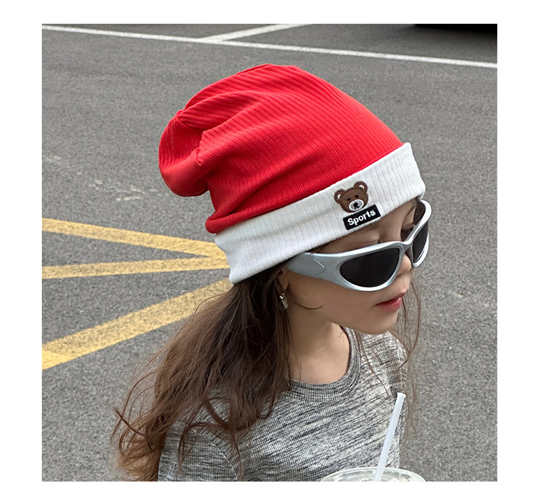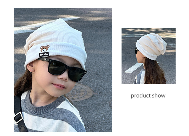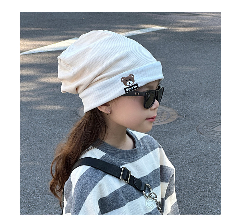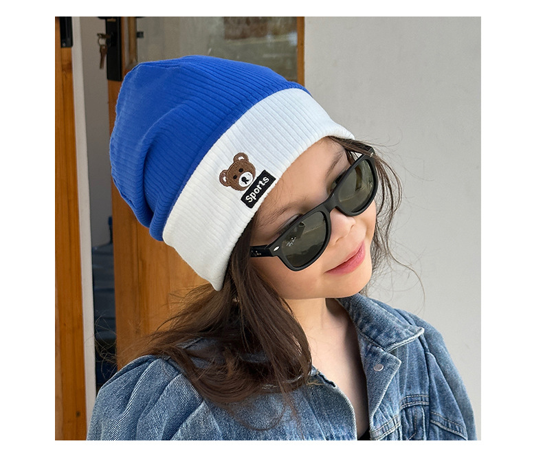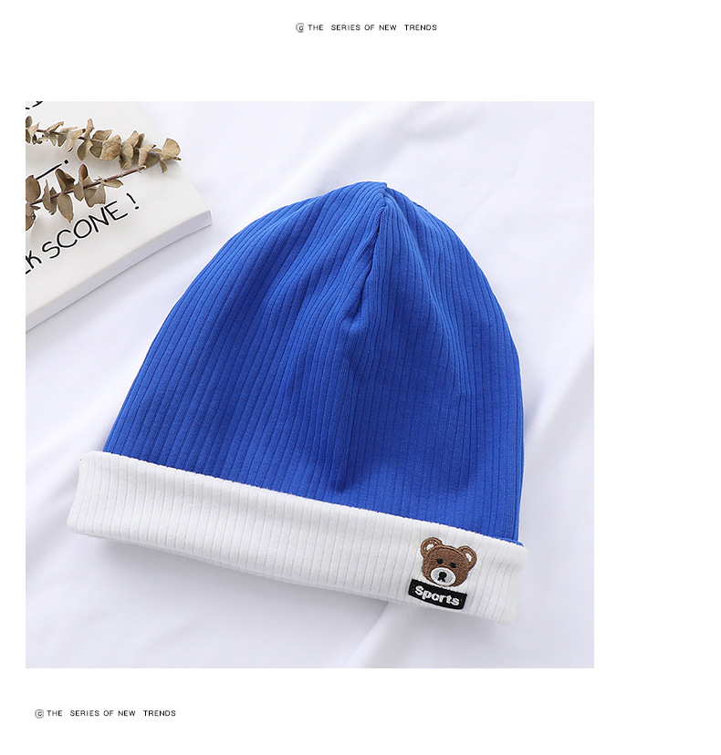 가을과 겨울 대비 색상 플랜지 핏 스트립 자수 곰 한국식 캔디 컬러 니트 모자 따뜻한 풀오버 모자 어린이 모자스토어 가기