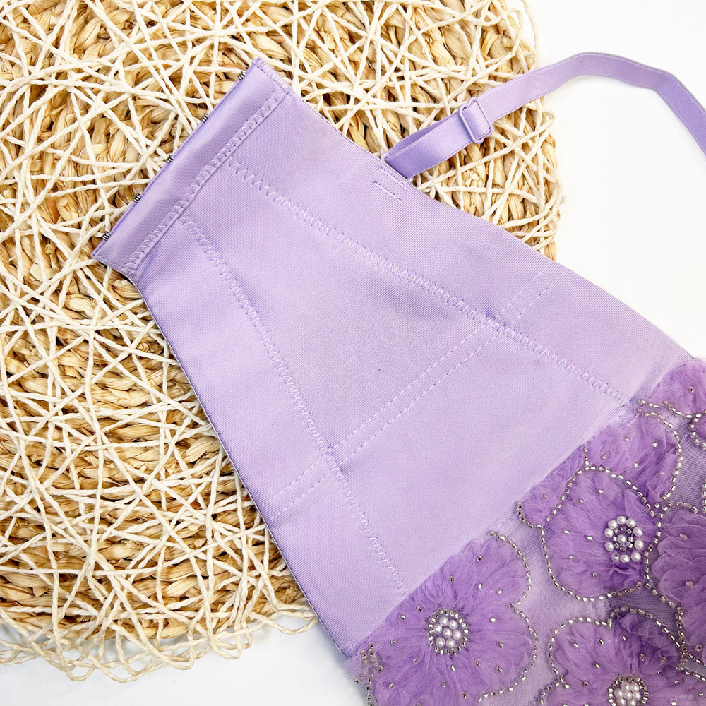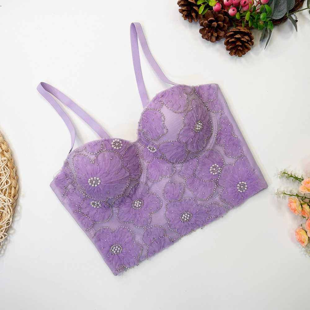 Fishbone 브래지어 여성용 겉옷 타이트 레이스 자수 비즈 가슴 패드로 가슴을 감싸는 이동식 어깨 끈이있는 짧은 캐미솔 조끼