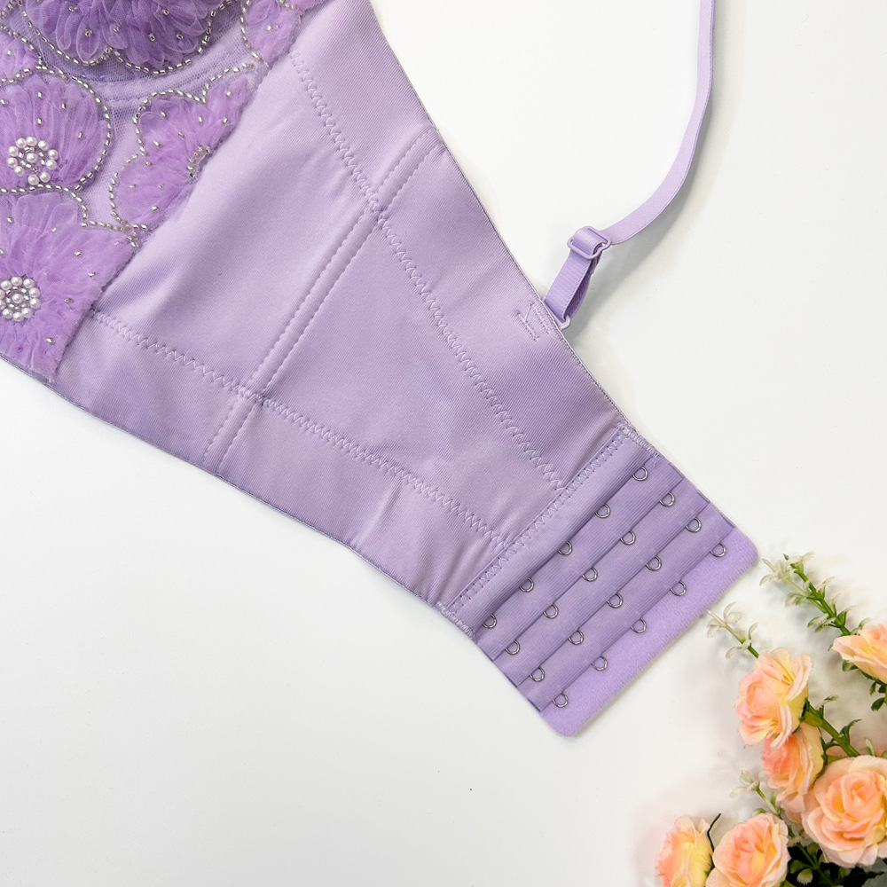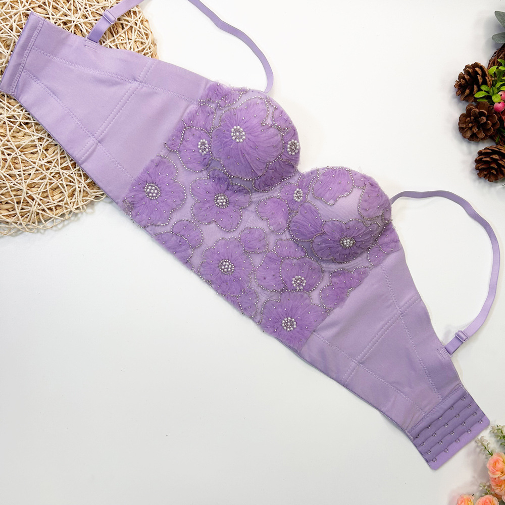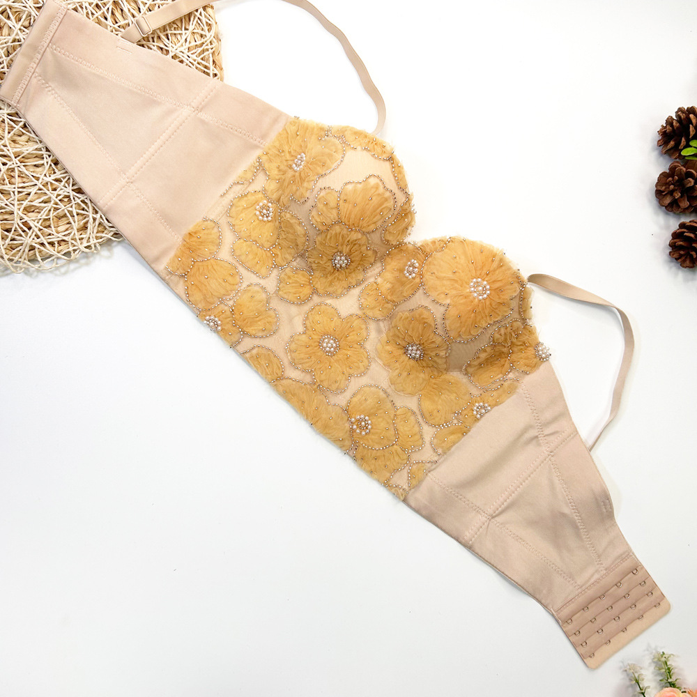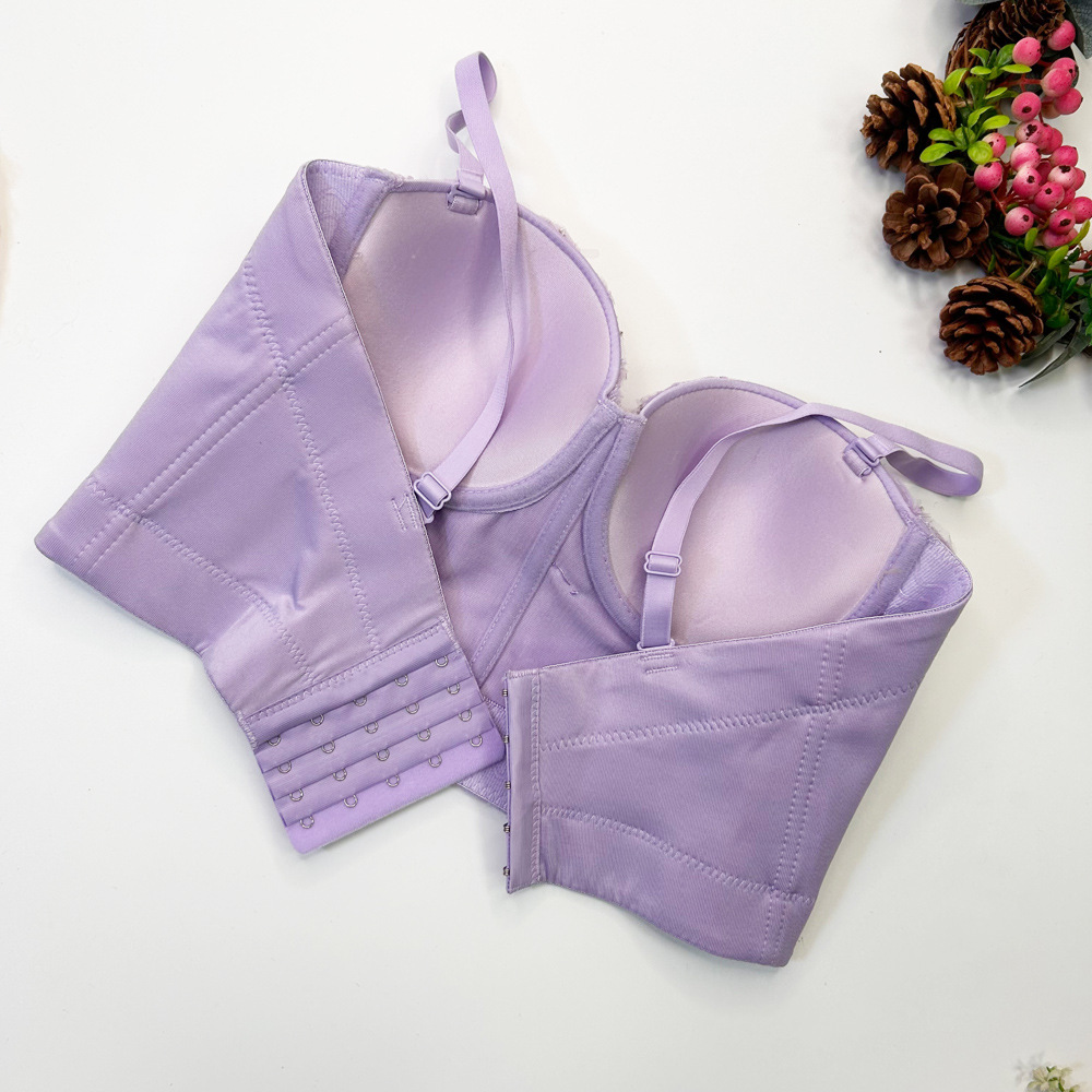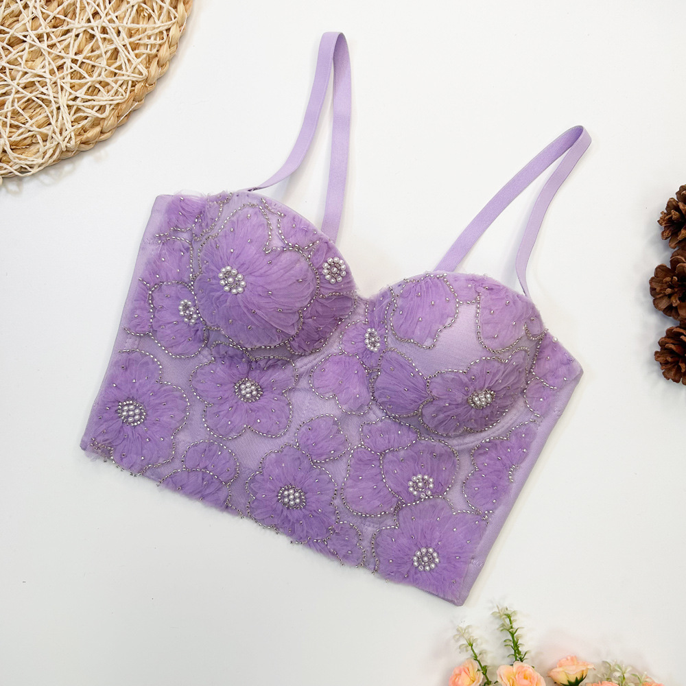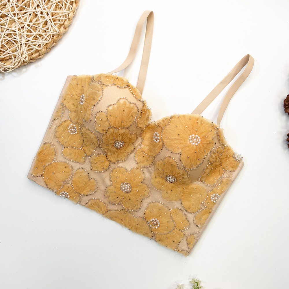 Fishbone 브래지어 여성용 겉옷 타이트 레이스 자수 비즈 가슴 패드로 가슴을 감싸는 이동식 어깨 끈이있는 짧은 캐미솔 조끼스토어 가기