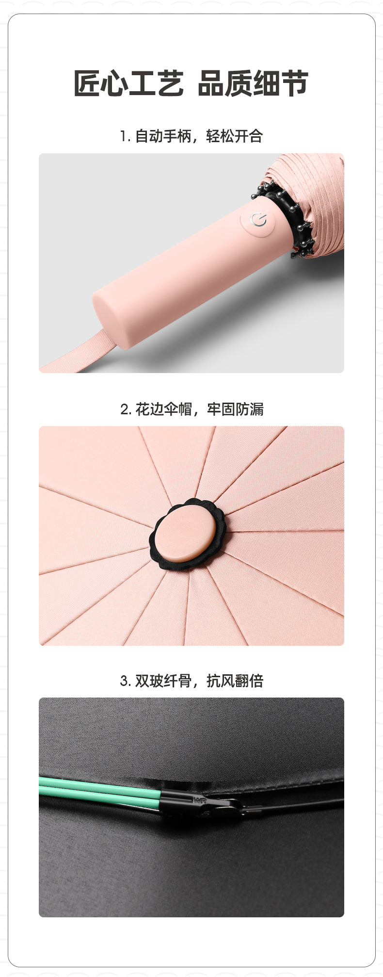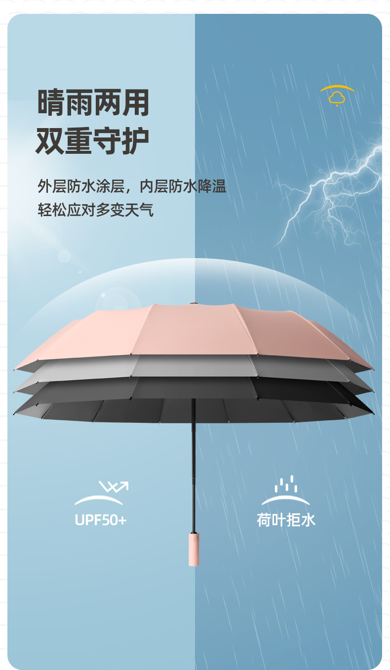 완전 자동 우산 담보 및 반 리바운드 햇빛 및 비 이중 사용 원 버튼 열기 및 담합 증가 두 배 강화 바람 방지 차양