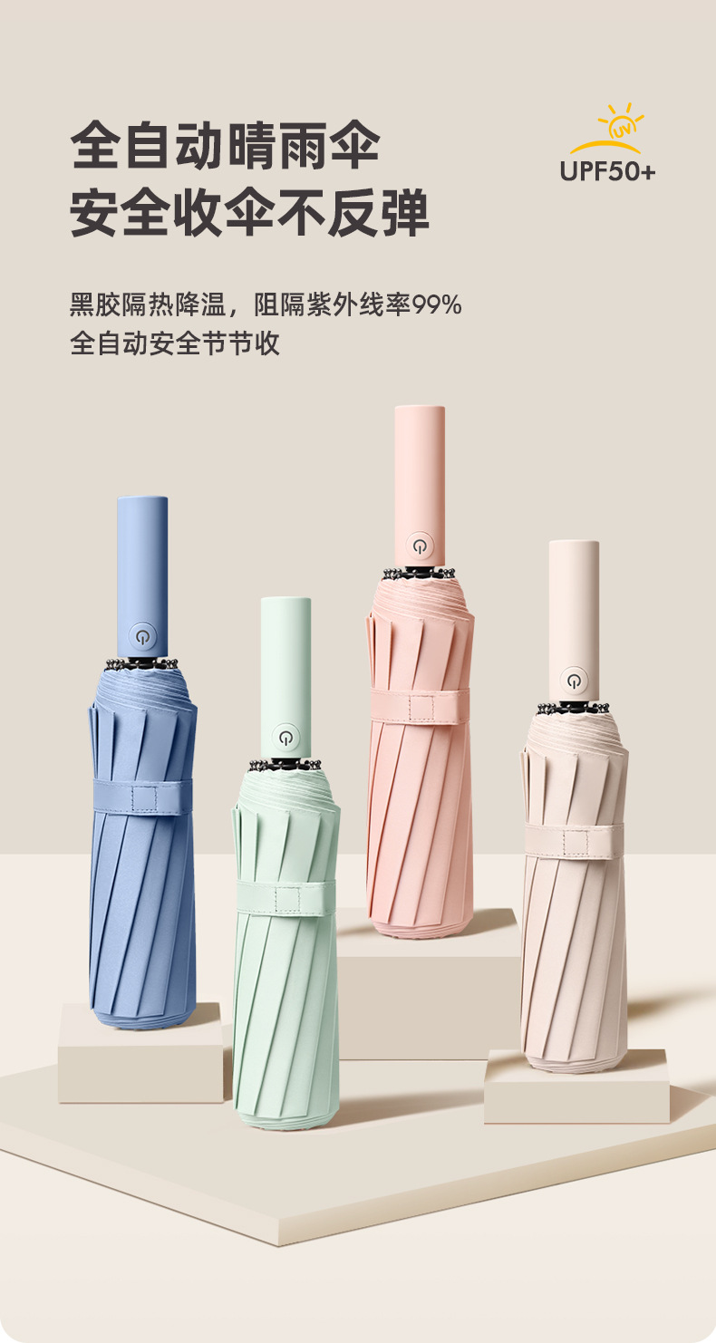 완전 자동 우산 담보 및 반 리바운드 햇빛 및 비 이중 사용 원 버튼 열기 및 담합 증가 두 배 강화 바람 방지 차양스토어 가기