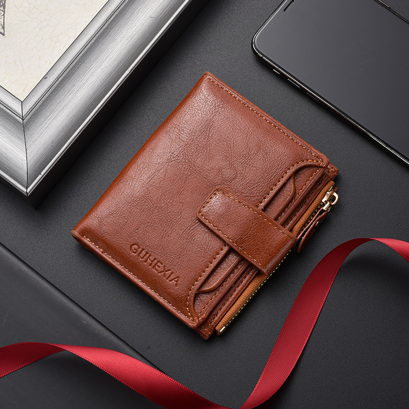 남성용 짧은 복고풍 지갑 청소년 지갑 RFID 도난 방지 브러시 패션 캐주얼 지갑 운전 면허증 대외 무역 카드 홀더스토어 가기