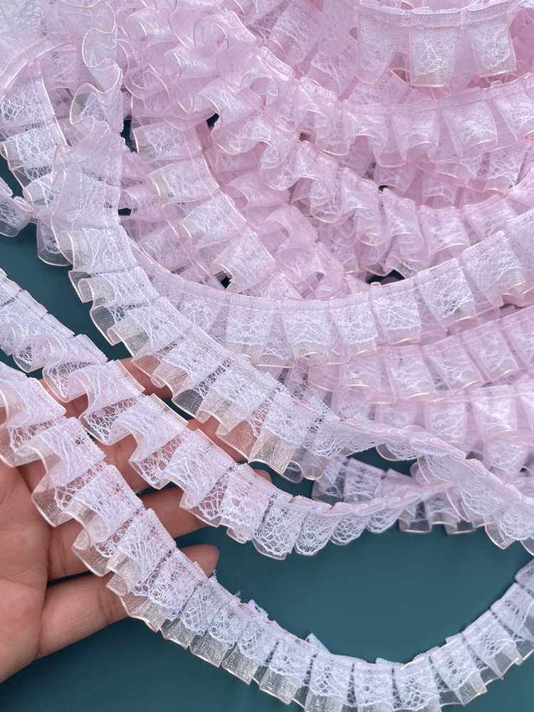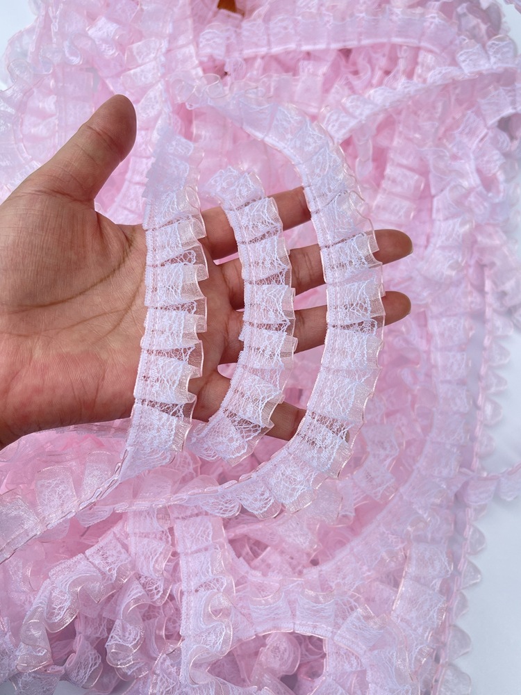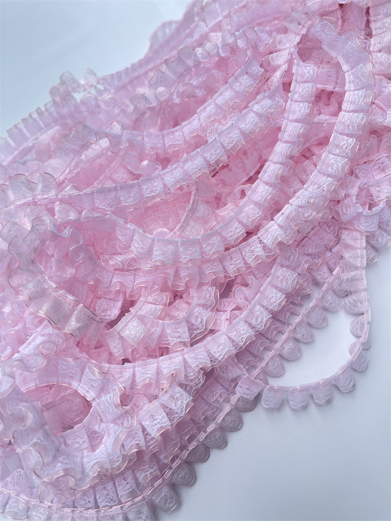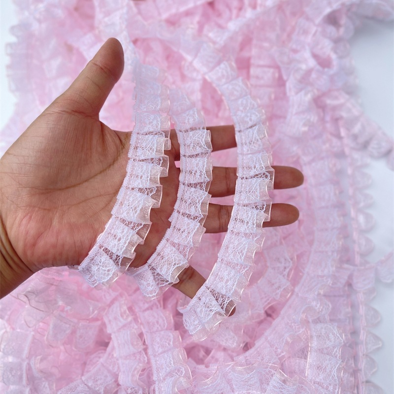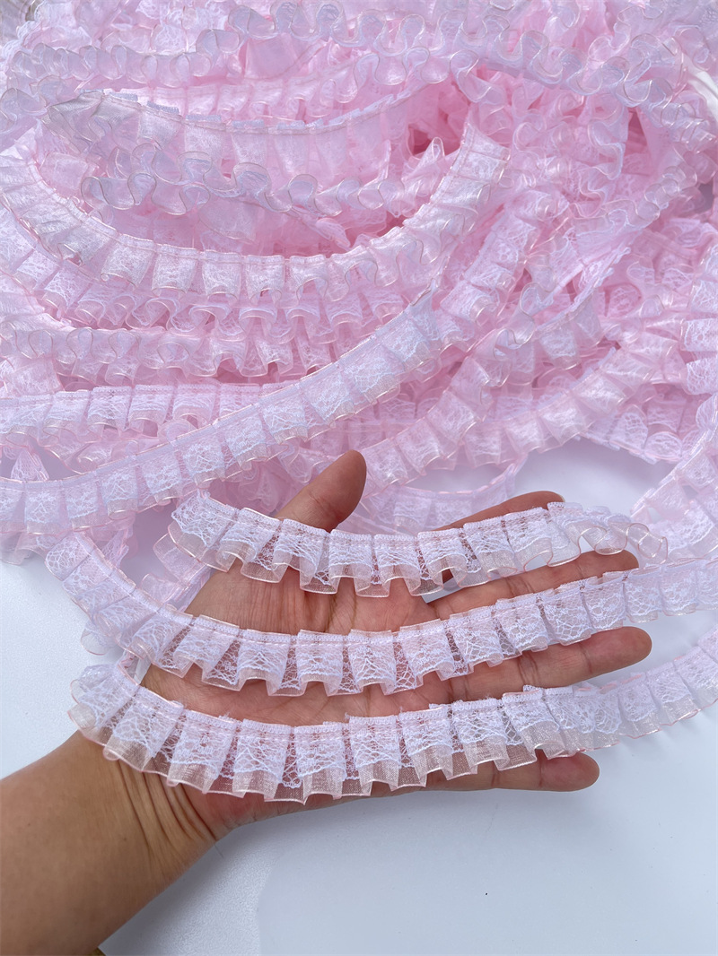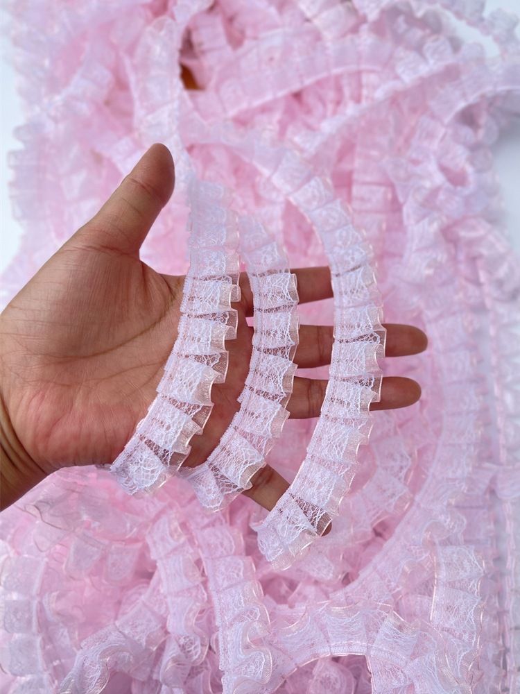 2.5cm 와이드 핑크 레이스 리본 플리츠 로리타 펫 스타일 스커트 레이스 트림