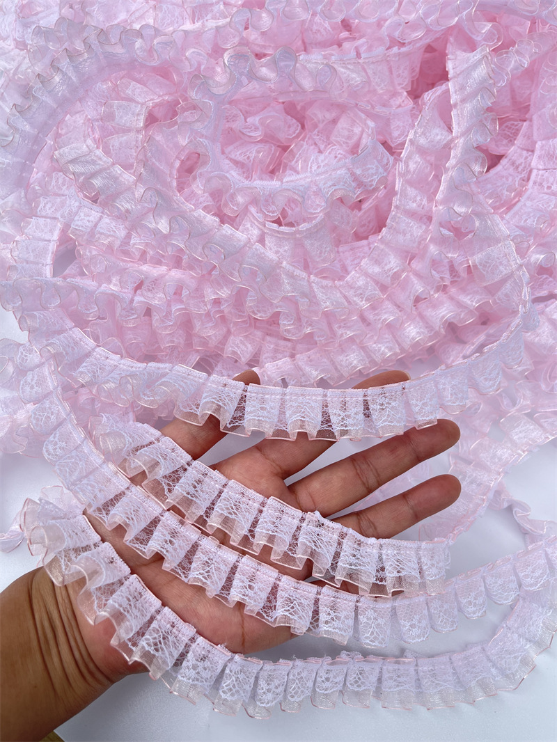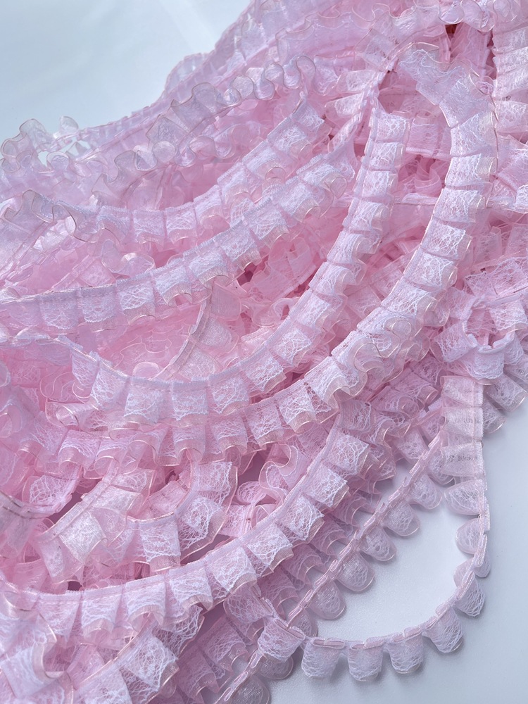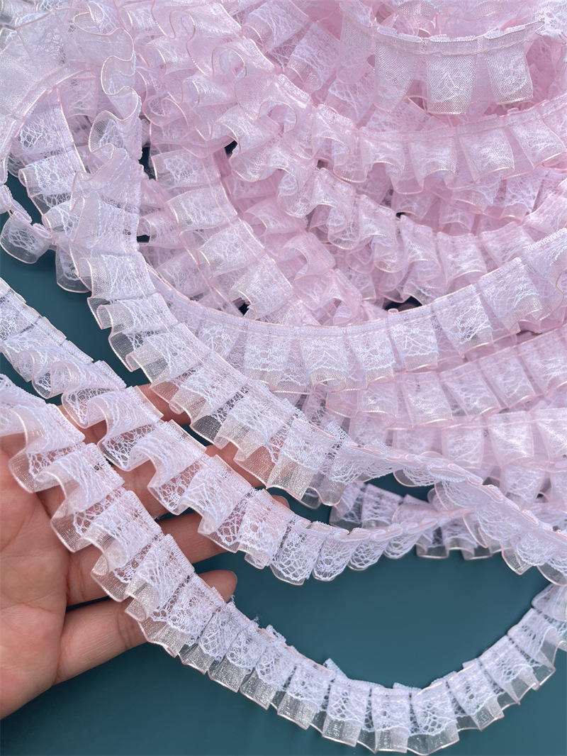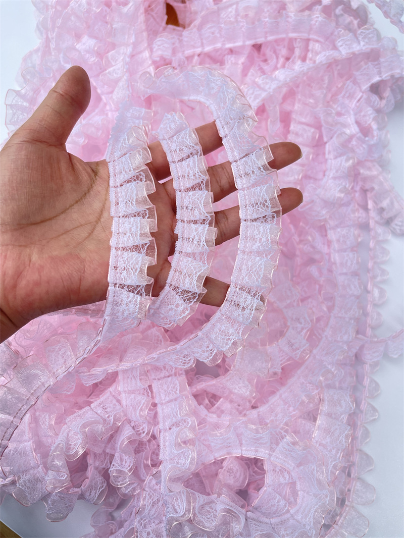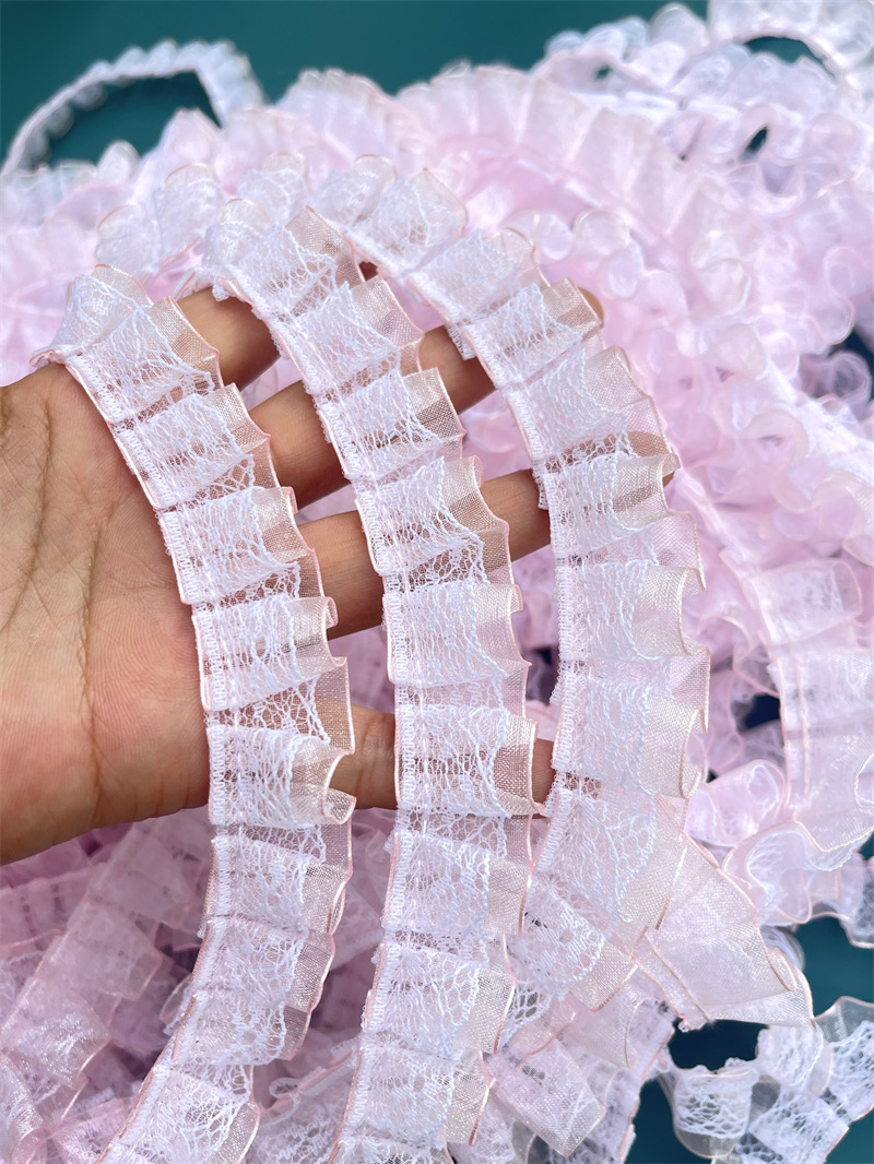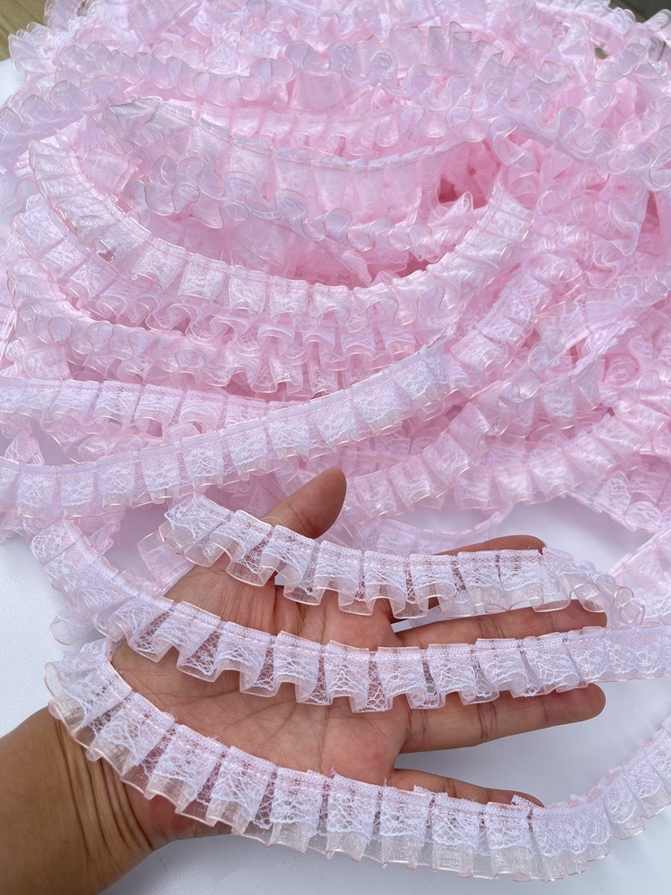 2.5cm 와이드 핑크 레이스 리본 플리츠 로리타 펫 스타일 스커트 레이스 트림