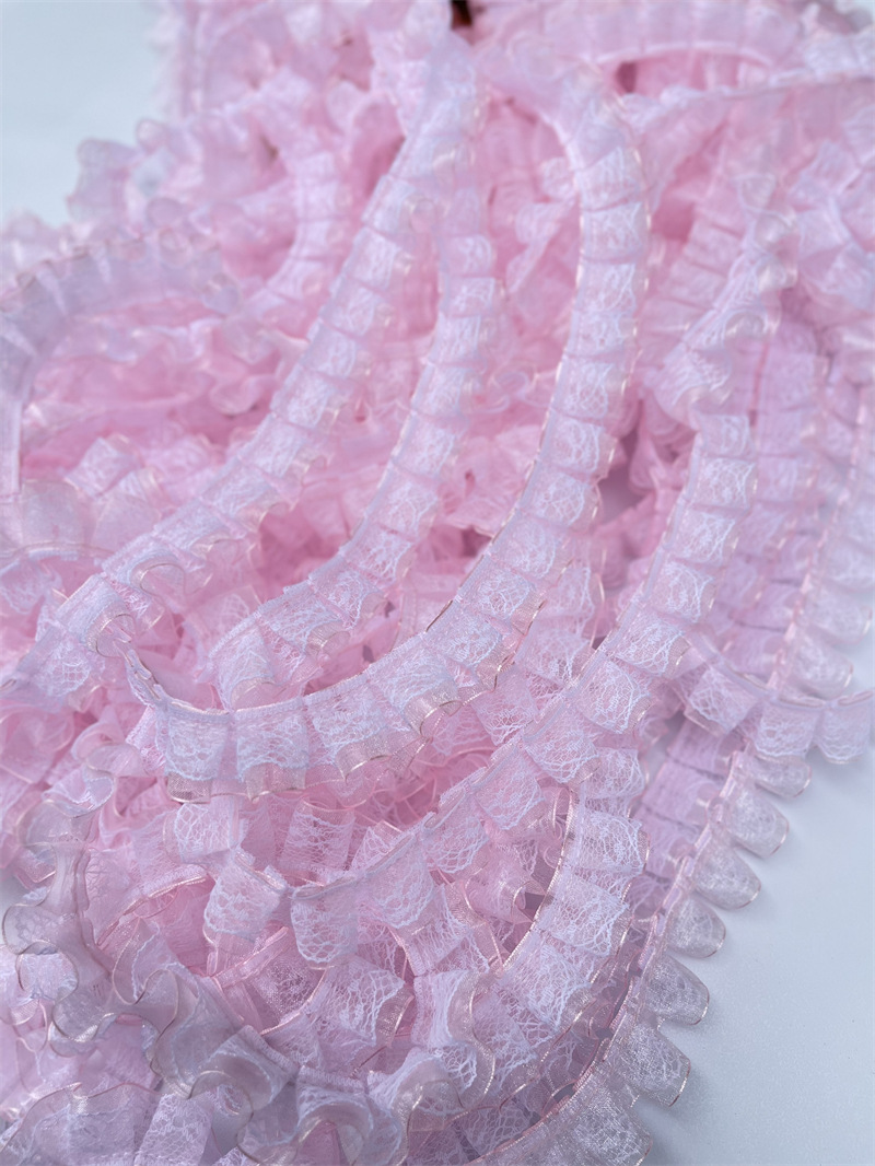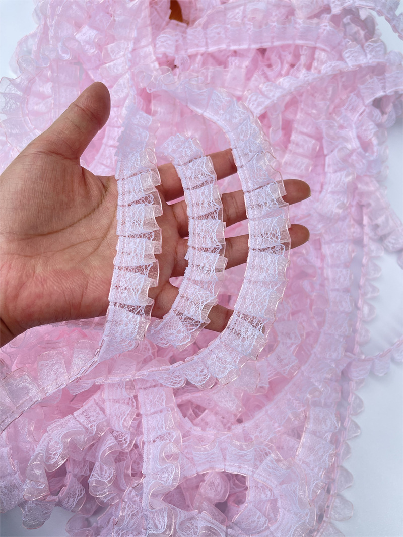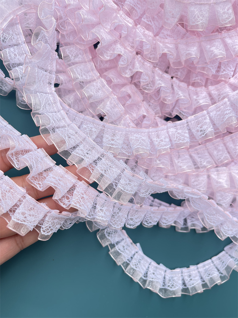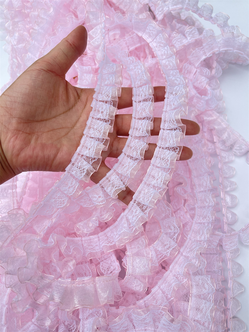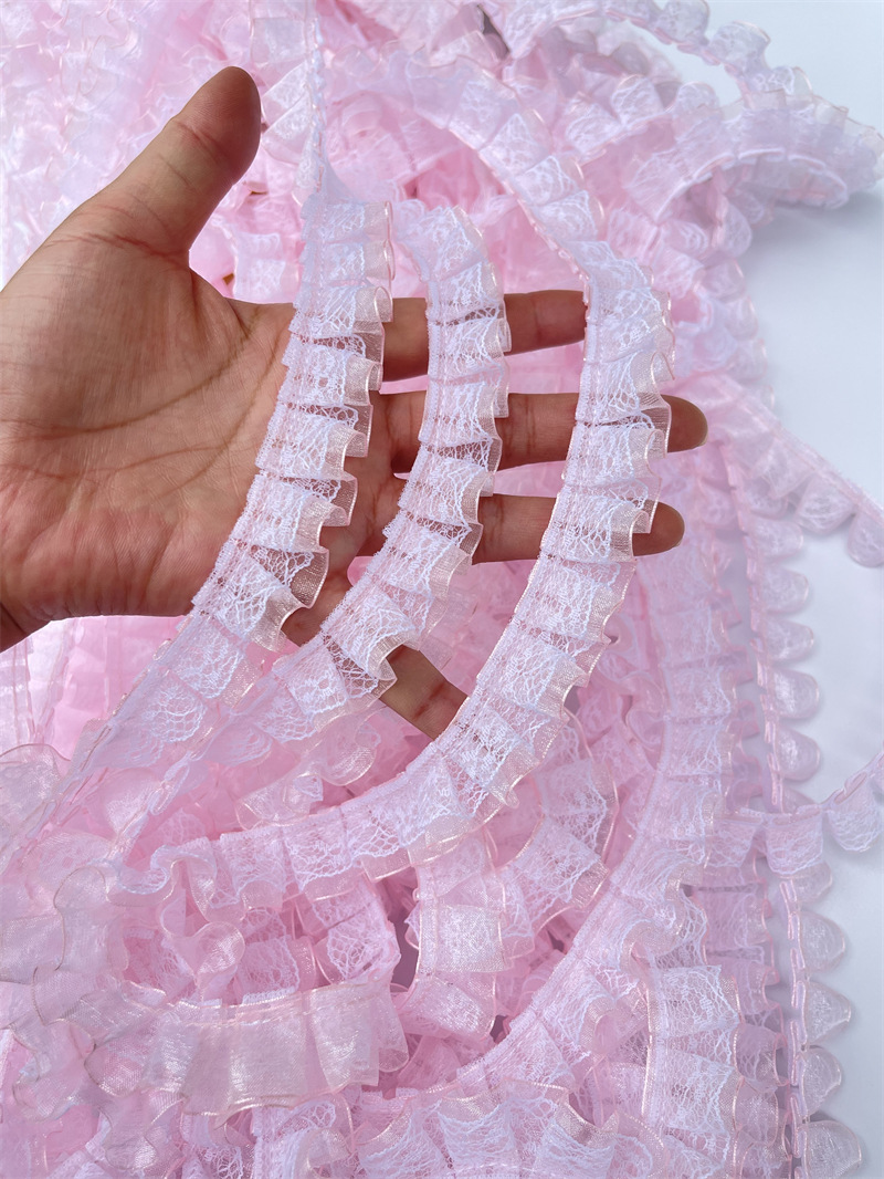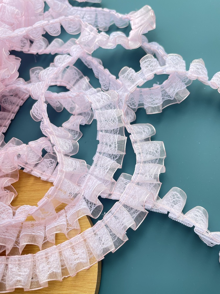 2.5cm 와이드 핑크 레이스 리본 플리츠 로리타 펫 스타일 스커트 레이스 트림