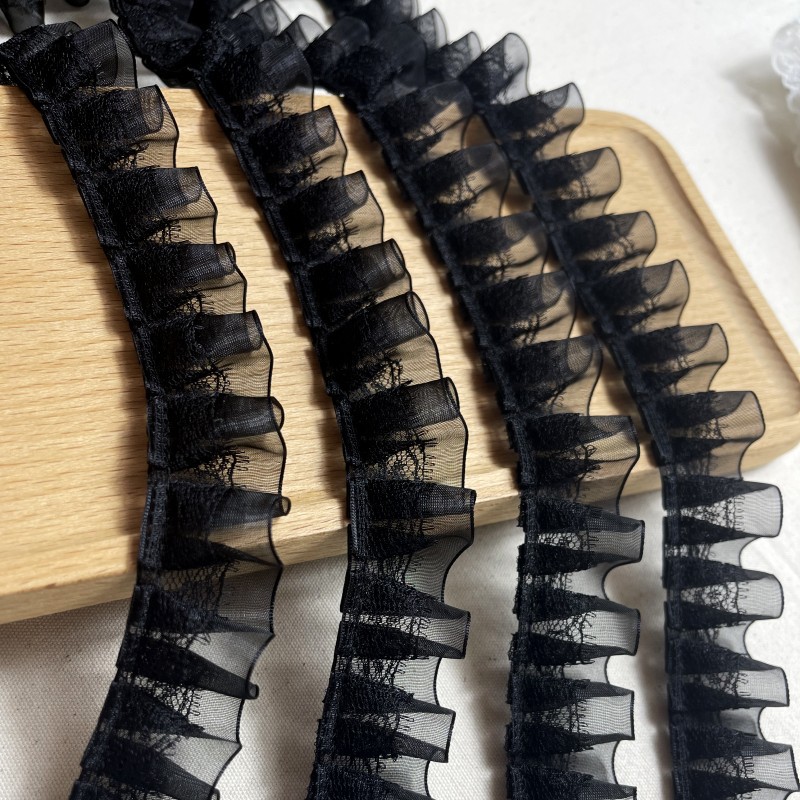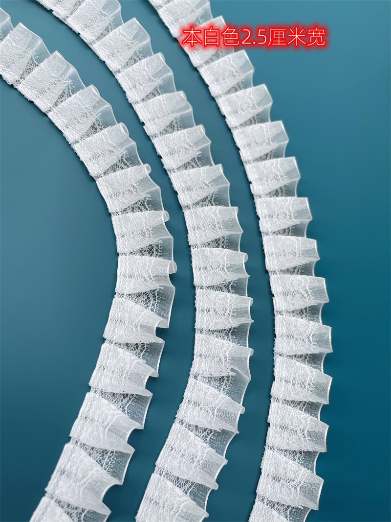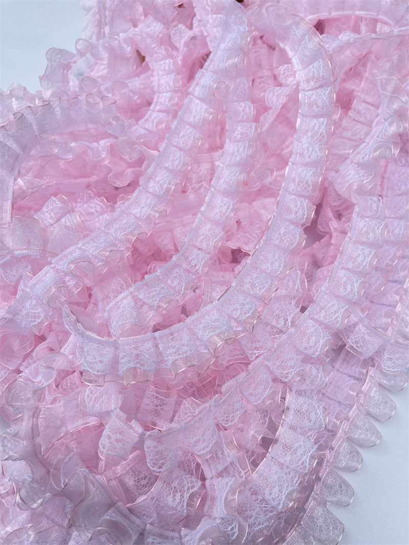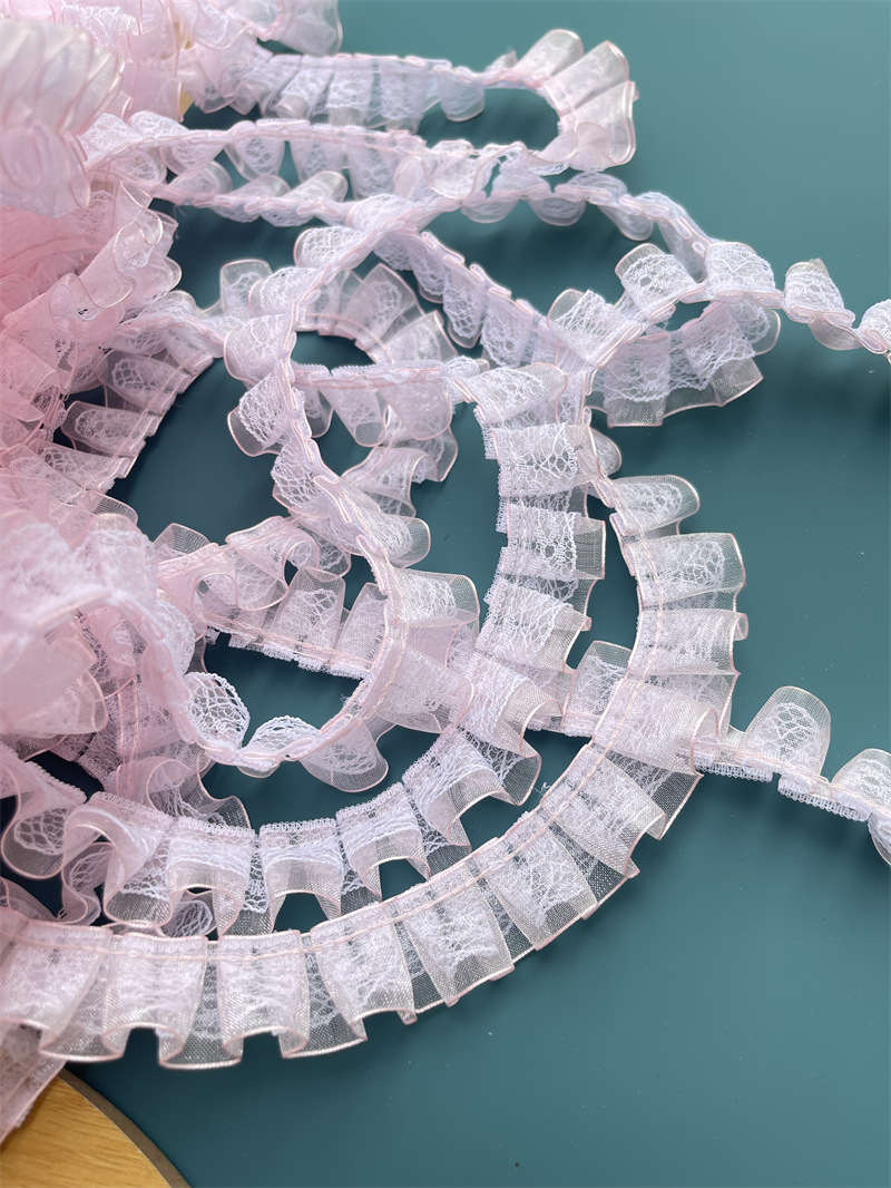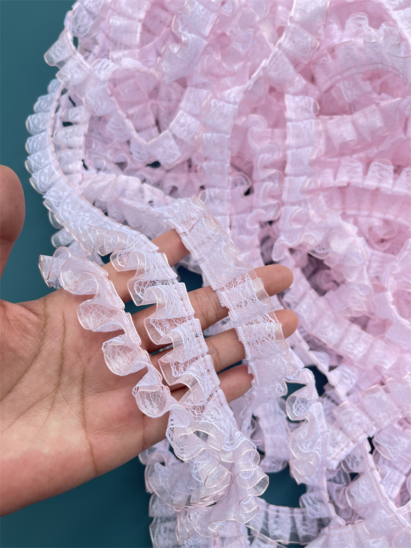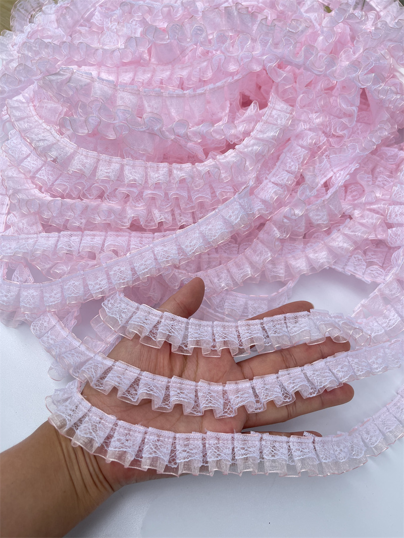 2.5cm 와이드 핑크 레이스 리본 플리츠 로리타 펫 스타일 스커트 레이스 트림
