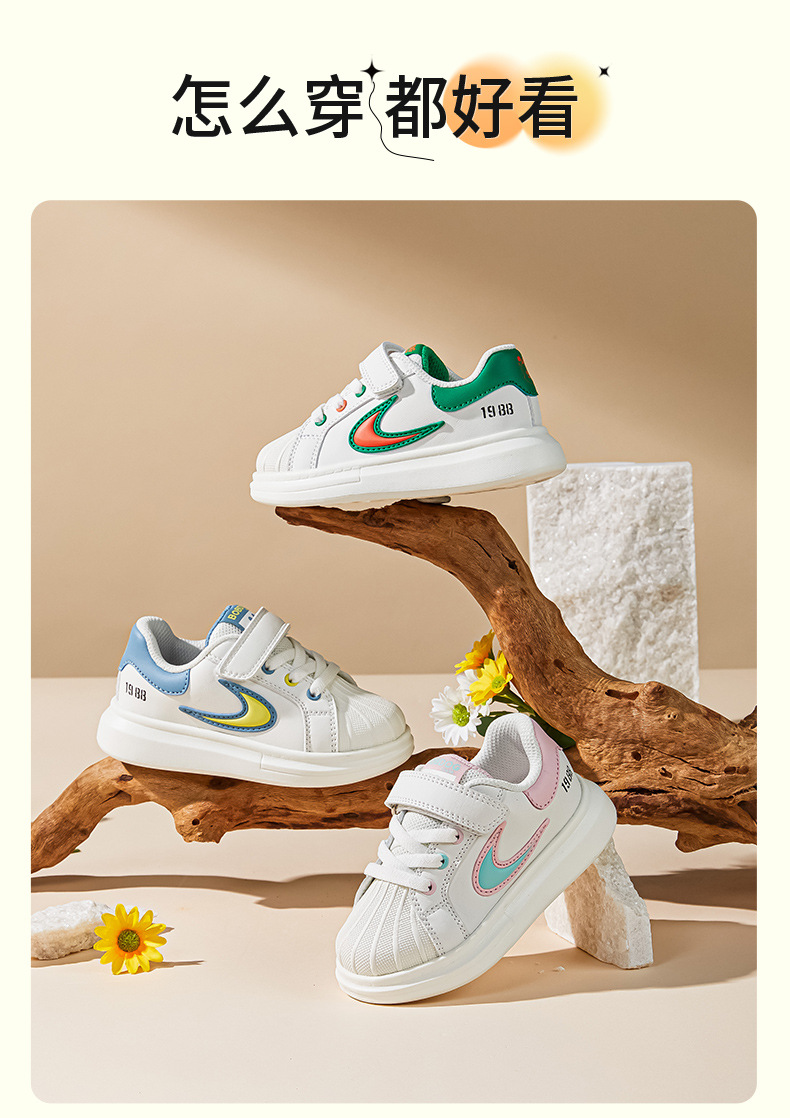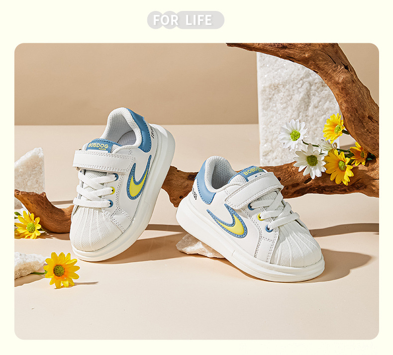 Babu 콩 어린이 신발 2023 가을 새 소년 소녀 유아 신발 어린이 편안한 캐주얼 쉘 헤드 작은 흰색 신발스토어 가기